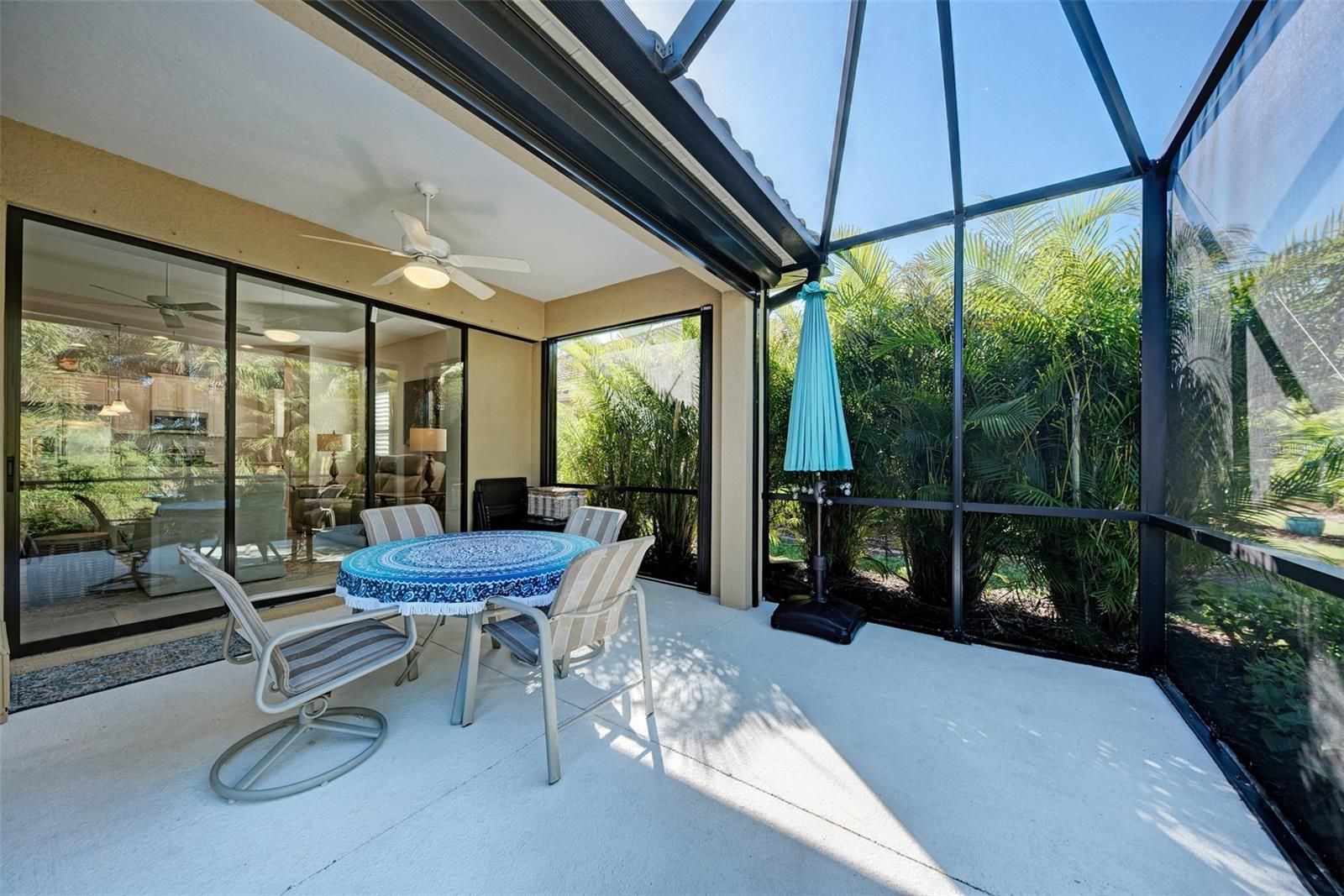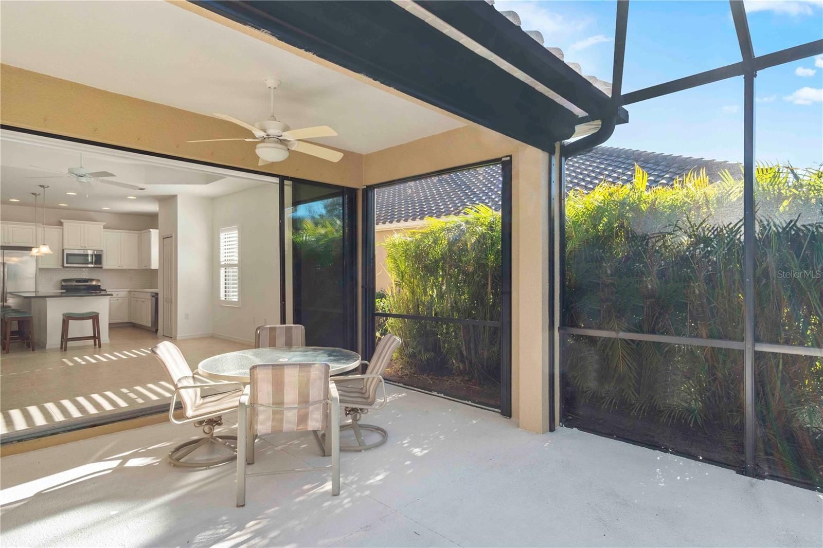 Just listed in the highly desirable Grand Palm community. This 2016 Crystal Sand model villa is maintenance-assisted and truly move-in ready. The light and airy open-concept floor plan features ceramic tile throughout and is thoughtfully designed for both comfort and effortless entertaining. The home offers two bedrooms, two baths, a den, a split-floor plan layout, and a two-car garage. The spacious living room and kitchen combination creates an inviting gathering space, enhanced by plantation shutters, a tray ceiling, ceiling fans throughout, and abundant of natural light. Sliding pocket doors open to an extended lanai overlooking tranquil gardens and a natural preserve, providing a peaceful indoor-outdoor living experience. An added courtyard area offers additional outdoor space, ideal for relaxing or entertaining guests. Hurricane shutters provide added peace of mind, along with a privacy screen for evening comfort. Additional upgrades include reverse osmosis, pull out drawers, a whole-house water purification system, a radiant barrier shield in the attic to help keep the attic and garage cooler, and foam insulation added to the exterior concrete block walls for improved energy efficiency. Residents of the Okaloosa neighborhood enjoy a private pool and spa, as well as a BBQ area and seating for social gatherings. Grand Palm’s resort-style amenities include three community pools, a social club, the Palm House state-of-the-art fitness center, scenic walking trails, parks, and pickleball courts. This exceptional villa offers the perfect blend of low-maintenance living and the relaxed Florida lifestyle you've been looking for.