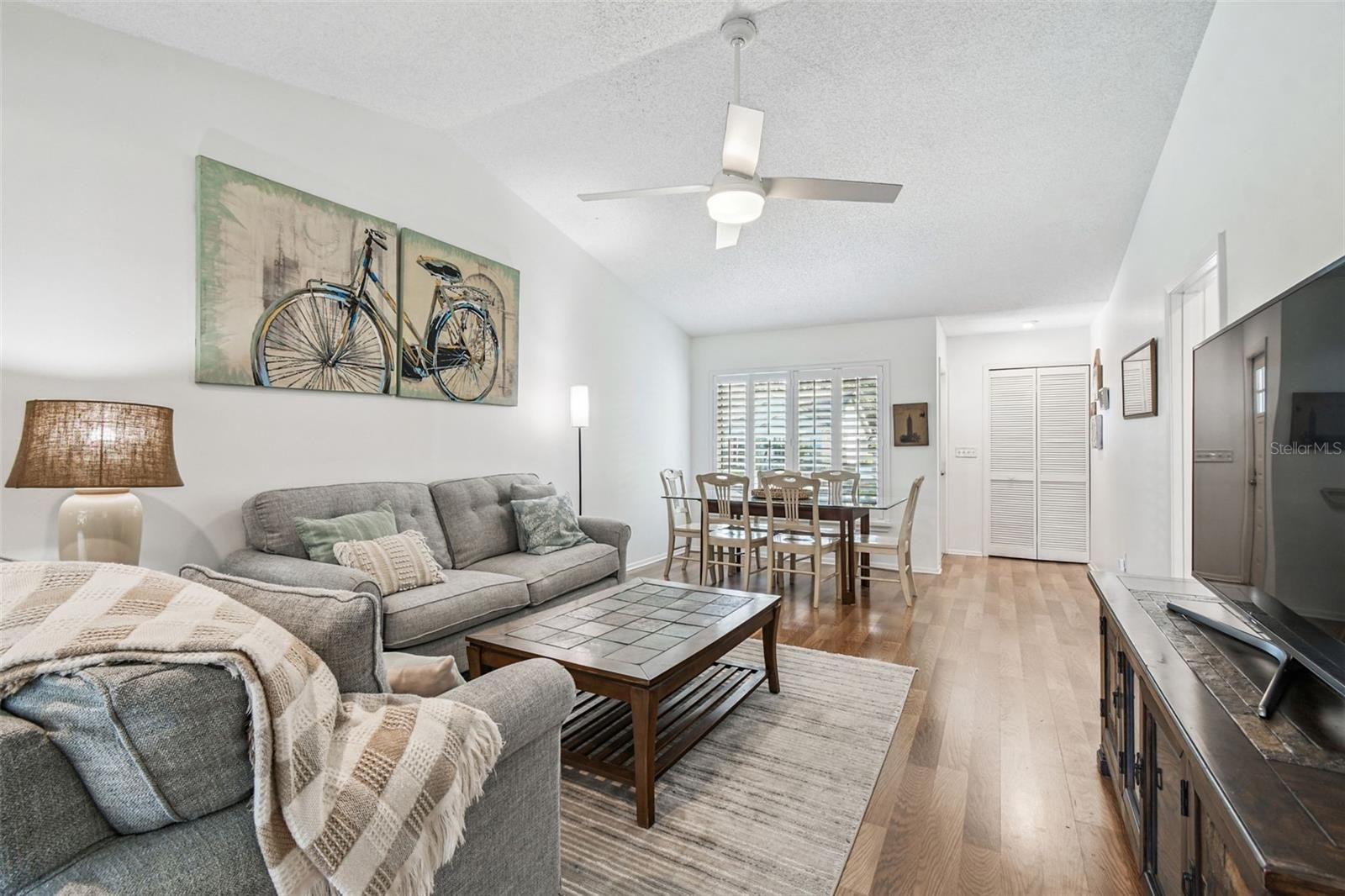 - Ceiling Fan(s), High Ceilings, Kitchen/Family Room Combo, Open Floorplan, Main Level Primary, Thermostat, Vaulted Ceiling(s), Window Treatments