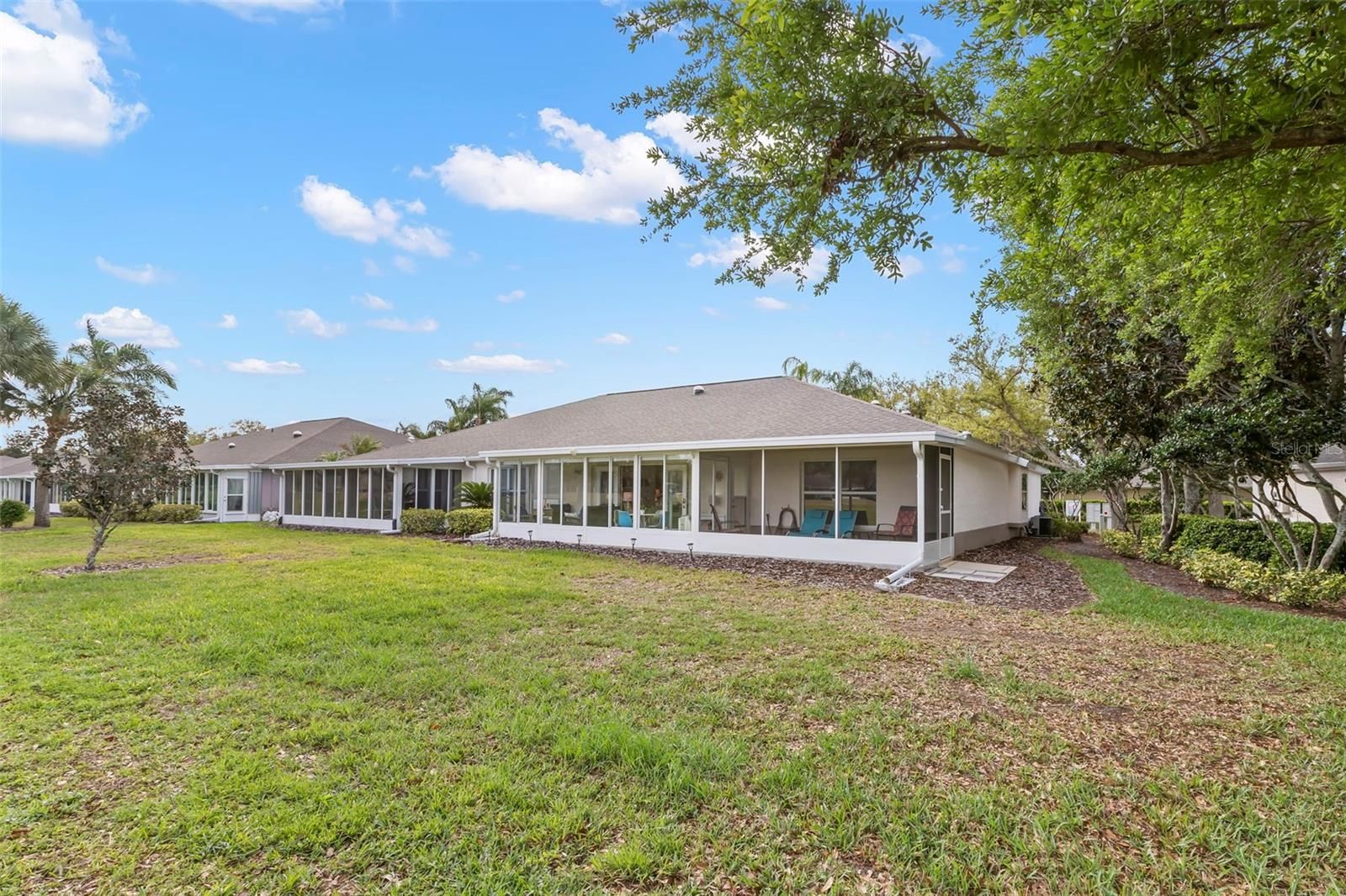 Welcome to this beautifully updated home with stunning 180-degree pond and golf course views overlooking the 8th fairway of the Scepter Golf Course. Located in the desirable, golf cart-friendly 55+ community of Kings Point, this Amherst floor plan offers 2 bedrooms, 2 full bathrooms, a Florida room with heating and cooling, and a screened, covered lanai. Upon entering the home, you’ll be greeted by consistent ceramic wood-look tile flooring throughout, high ceilings, and immediate views. The great room layout accommodates oversized furniture while maintaining a cozy feel, making it ideal for both everyday living and entertaining, with flexible options for furniture placement. The large bonus room can be used as a TV room, office, den or additional sleeping space for guests. The kitchen features a new Ruvati stainless steel sink, new garbage disposal and faucet, and stainless steel appliances, including a 5-burner gas range and GE Profile™ French door refrigerator with WiFi. The breakfast nook includes a built-in window bench, and is perfect for casual meals, or can be used as an office or craft room. The Florida room offers expansive, far-reaching views—perfect for enjoying golfers and local wildlife, including a variety of birds. This space is enhanced with Shaw commercial-grade Berber carpeting, custom Bali solar roller shades, and a Friedrich 12,000 BTU system providing air conditioning, heat, dehumidification, and fan functions with remote control. The screened lanai offers additional space to enjoy Florida’s beautiful weather, creating a seamless blend of indoor comfort and outdoor living. Back inside, the split floor plan features a spacious primary bedroom with an updated en-suite, including recessed lighting, upgraded vanity lighting, and a Mahogany ‘Silk Road Exclusive’ double bowl vanity with new mirrors and lighting fixture. The walk-in shower is finished with floor-to-ceiling tile and decorative listello banding, includes a Delta shower valve, and is set in a separate space from the vanity area for convenient dual use. A walk-in closet with boutique-style organizer completes the suite. The second bedroom is generously sized with a Levolor window blind and convenient access to the guest bathroom, which features the following new updates: Quartz-topped vanity, Moen brushed nickel faucet, updated lighting, mirror, fresh paint, and new valves. The indoor laundry room includes a washing machine with surge protection and new LED lighting. Additional features include natural gas service for the furnace, water heater, range, and dryer; five solar tubes for enhanced natural light; whole-house surge protection; water softener with filtration system; updated GFCI outlets; hardwired 10-year smoke and carbon monoxide detectors; Schlage electronic door locks and updated hardware; and Llumar Vista V38 hurricane/security window film and all new lighted timed remote control ceiling fans. Pet-friendly (2 pets allowed) with possible Age Waiver if under 55! Kings Point offers two guard-gated entrances, with fees covering cable, internet, exterior insurance, exterior structural maintenance, roof maintenance/replacement, grounds maintenance, water, sewer, trash, and more. Enjoy an active lifestyle with over 200 clubs, indoor and outdoor heated pools, fitness center, pickleball, and more. Conveniently located near shopping, dining, beaches, Tampa International Airport (30 minutes), Sarasota (under an hour), and Ellenton Outlets (20 minutes).