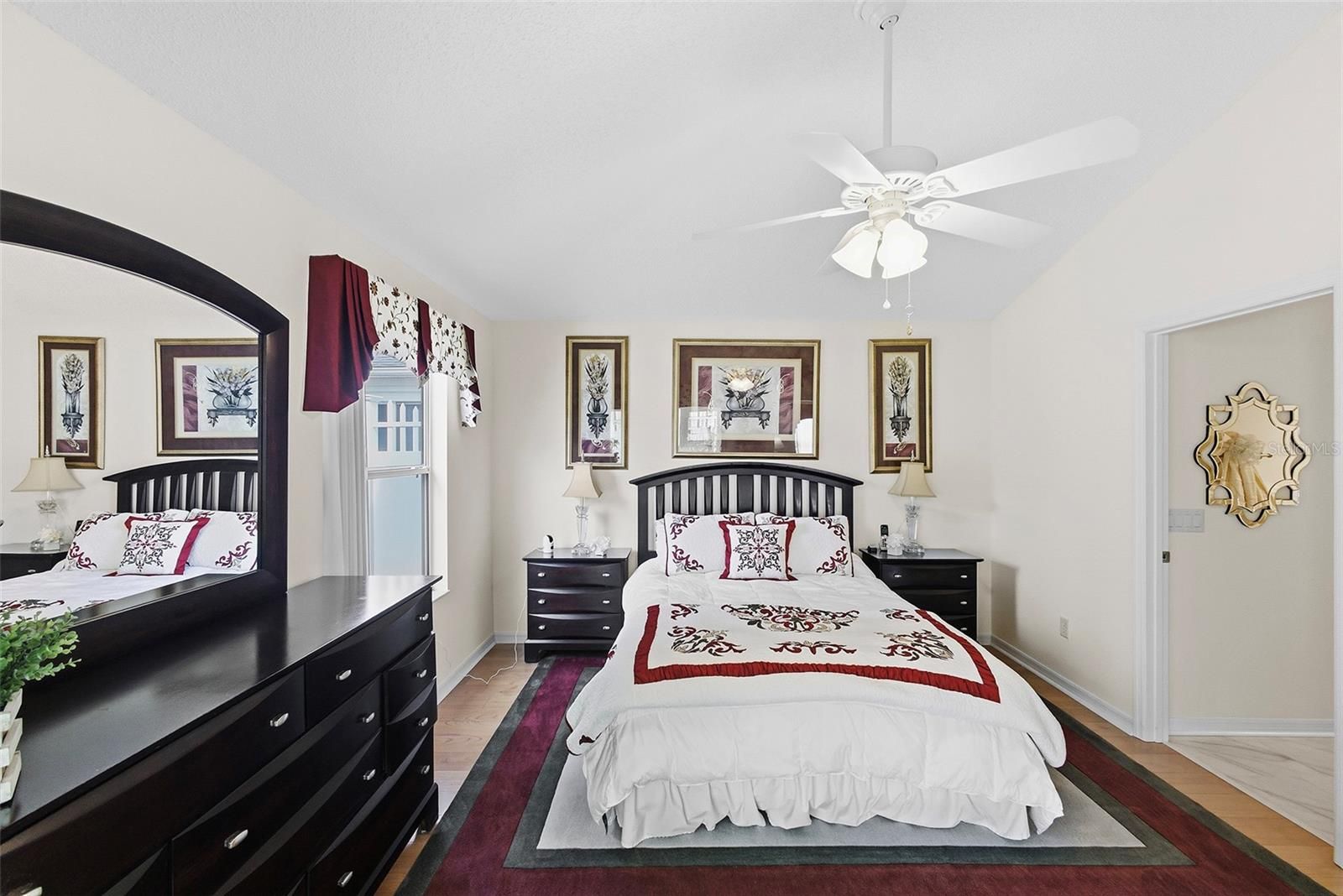 - Built-in Features, Ceiling Fan(s), Crown Molding, Living/Dining Room, Open Floorplan, Main Level Primary, Stone Counters, Vaulted Ceiling(s), Walk-In Closet(s), Window Treatments
