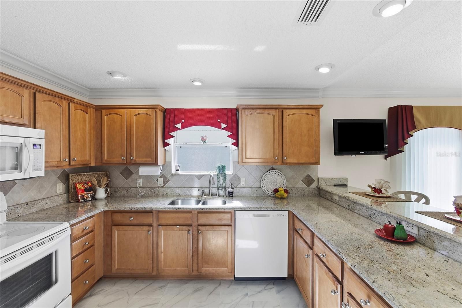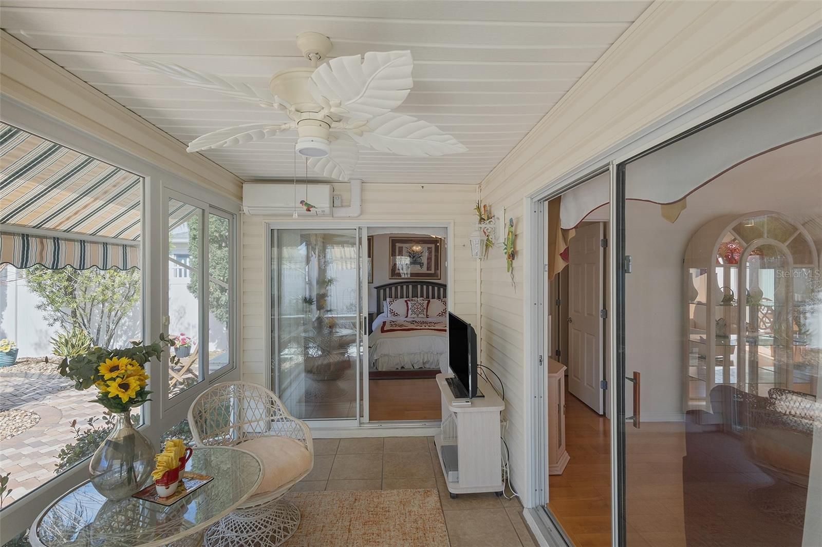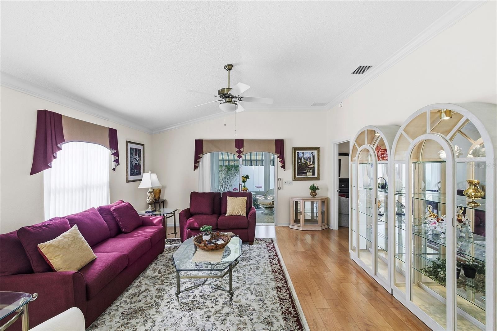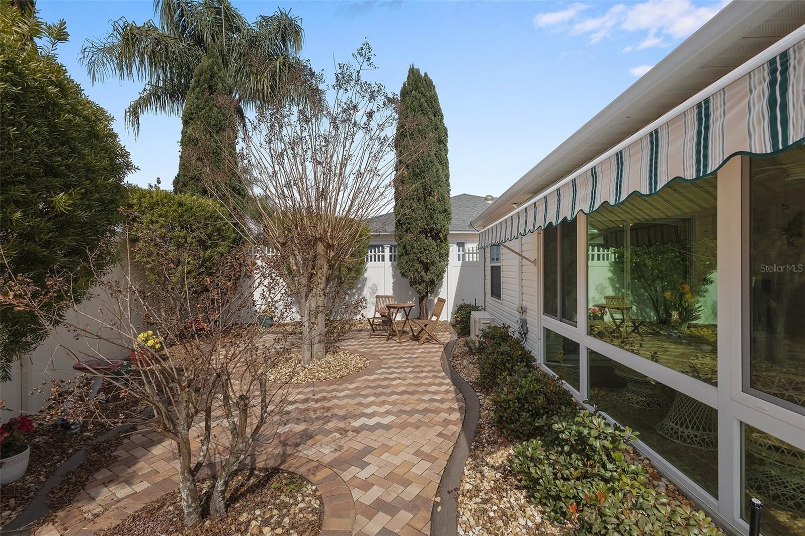 Welcome Home to this Tastefully TURNKEY ! Colony Model Patio Villa located in the highly desirable Village of Caroline, less than a mile from Lake-Sumter Landing. This well-maintained home offers an open floor plan with vaulted ceilings, no carpet throughout, granite countertops, and an enclosed rear lanai for additional year-round living space. Major updates include a 2020 roof, 2019 HVAC, 2024 water heater, and NO BOND. From the moment you arrive, this inviting patio villa sets the tone for easy Florida living. Step inside to find bright, open living and dining areas enhanced by vaulted ceilings and solid-surface flooring throughout, creating a clean and cohesive flow. The kitchen is both functional and stylish, featuring granite countertops and ample cabinetry, perfect for everyday living or entertaining guests. Breakfast bar seating add to the entertainment/gathering factor. The primary suite is generously sized and offers a large walk-in closet and a comfortable retreat at the end of the day. The second bedroom has been thoughtfully designed for flexibility, featuring a Murphy bed and built-in desk, making it ideal as a guest room, home office, or hobby space. An enclosed rear lanai extends your living area and provides a private spot to relax, unwind, or enjoy your morning coffee and is finished with a pavered patio surface, example of the details this home has. Located in the heart of The Villages and just minutes from Lake-Sumter Landing’s dining, shopping, and entertainment, this turnkey patio villa is a perfect opportunity for full-time living, seasonal enjoyment, or an investment property—move-in ready and designed for a low-maintenance lifestyle.