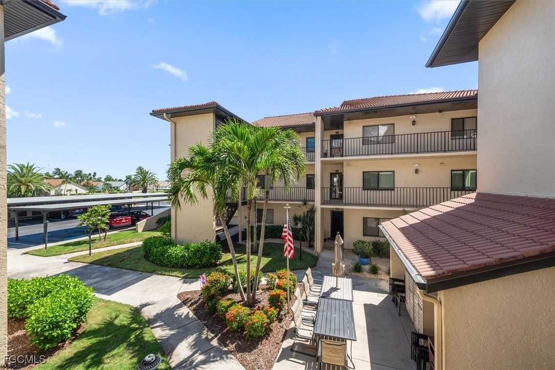 Experience relaxed South Fort Myers condo living in this beautifully updated 2-bedroom, 2-bath residence at the popular Terrace at Cinnamon Cove, featuring pool views with a tranquil side lake perspective. Located on the second floor in an elevator building, this home is offered furnished and turnkey, making it ideal for seasonal use, investment, or full-time living. The bright, open layout showcases an updated kitchen with maple cabinetry, granite countertops, and stainless steel appliances, complemented by laminate flooring in the living areas and cozy carpeted bedrooms. The spacious primary bathroom includes dual sinks, granite counters, and a large walk-in shower. Relax on the screened lanai overlooking the resort-style pool with calming lake views, perfect for enjoying warm Florida evenings. The condo also includes a covered carport, extra storage closet, and hurricane shutters for added convenience and security. Enjoy sunrises and sunsets from lanai thinking just another day in paradise. Low HOA fees of $600 per month cover water, building insurance, exterior maintenance, landscaping, gated access, and all amenities. Cinnamon Cove is not a 55+ community and offers pickleball, tennis, bocce, shuffleboard, multiple pools and spas, three fishing lakes, and vibrant community activities. Ideally located within walking distance to Publix and just minutes from restaurants, entertainment, medical facilities, colleges, shopping, and the beaches of Sanibel Island, this condo is the perfect blend of comfort, location, and carefree Florida living. Seller Is Motivated.