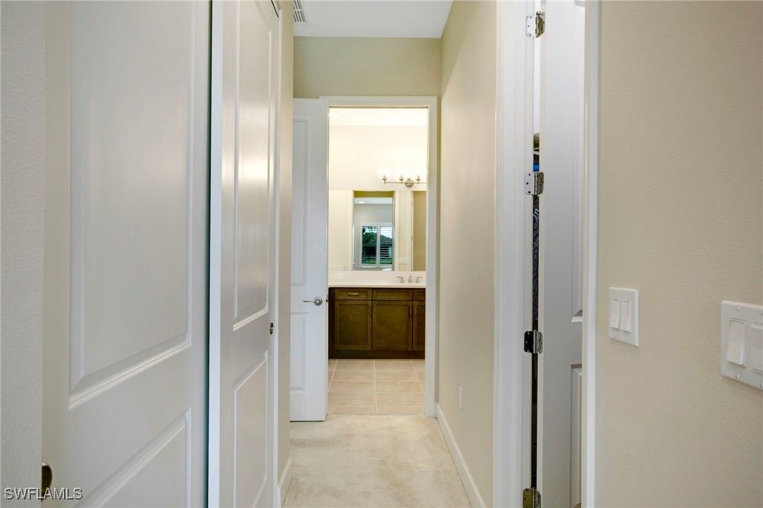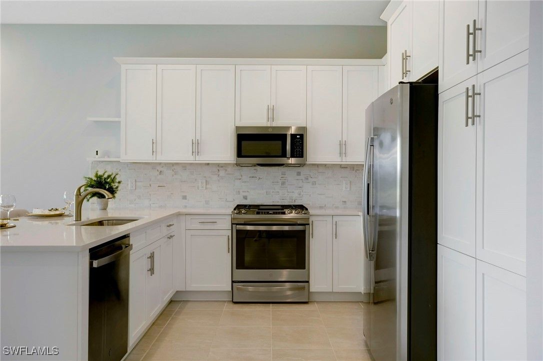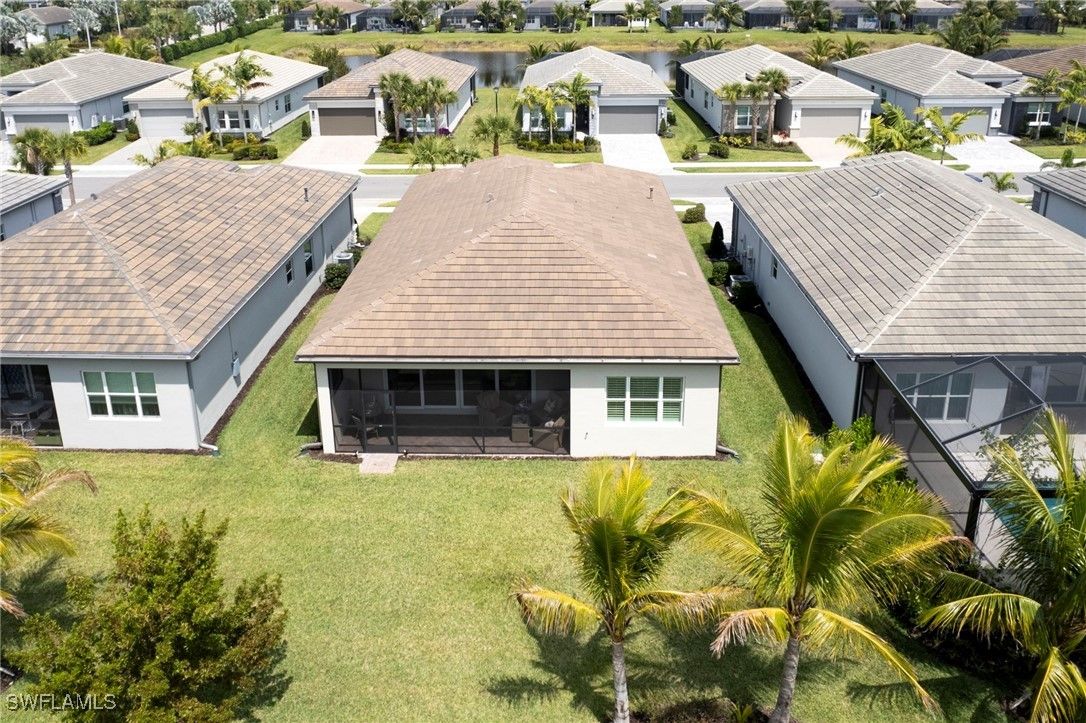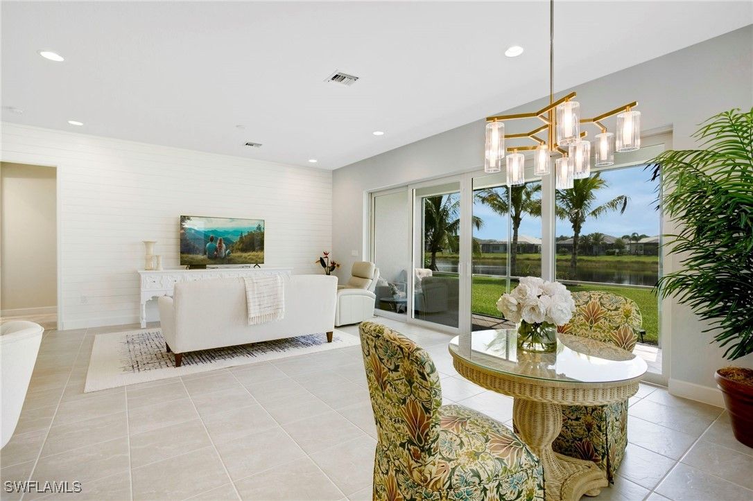 This stunning Pelican model home offers an unparalleled blend of luxury and comfort in the highly sought-after Valencia Trails, Naples’ premier 55+ community. From the moment you step inside, the soaring 14-foot ceilings and custom shiplap detailing create an immediate sense of sophistication. The open-concept design seamlessly connects the kitchen and living areas, making it ideal for both everyday living and elegant entertaining. The chef’s kitchen is a true showpiece, featuring quartz countertops, a gorgeous marble backsplash, a natural gas stove, premium stainless steel appliances, and an upgraded pantry with pullout trash bins. Level 3 wood cabinetry with soft-close functionality and elegant molding adds a touch of refinement, while ample recessed lighting enhances the space. The living area is further elevated by a striking shiplap accent wall, providing warmth and charm. Step outside to your private screened lanai and take in the breathtaking lake views that set this home apart. Whether you’re enjoying a quiet morning coffee or hosting guests for an evening gathering, this tranquil retreat offers a seamless blend of indoor-outdoor living. With ample yard space to accommodate a custom pool, which is pre-plumb for and a lanai pre-plumbed for an outdoor kitchen, this home is designed for relaxation and entertaining at its finest. The combination of tile flooring throughout and cozy carpeting in the bedrooms ensures both style and comfort. Beyond your doorstep, Valencia Trails offers world-class amenities designed to enhance an active and social lifestyle. The impressive 43,000-square-foot clubhouse features a full-service restaurant and bar, a state-of-the-art fitness center, a full-service salon and spa, and multiple recreational spaces, including card rooms, an art studio, and a learning kitchen. For those who love outdoor activities, the community boasts a resort-style pool, a lap pool, a resistance pool, six tennis courts, eight pickleball courts, and scenic walking and biking trails. Even your four-legged companions will feel at home with two dedicated dog parks. This is more than just a home—it’s an opportunity to embrace a luxurious, resort-style lifestyle in one of Naples’ most exclusive communities. Homes like this are rare, and demand for Valencia Trails continues to grow. Don’t miss your chance to own a piece of paradise. Call today to schedule your private tour and experience the elegance, comfort, and breathtaking lake views for yourself."