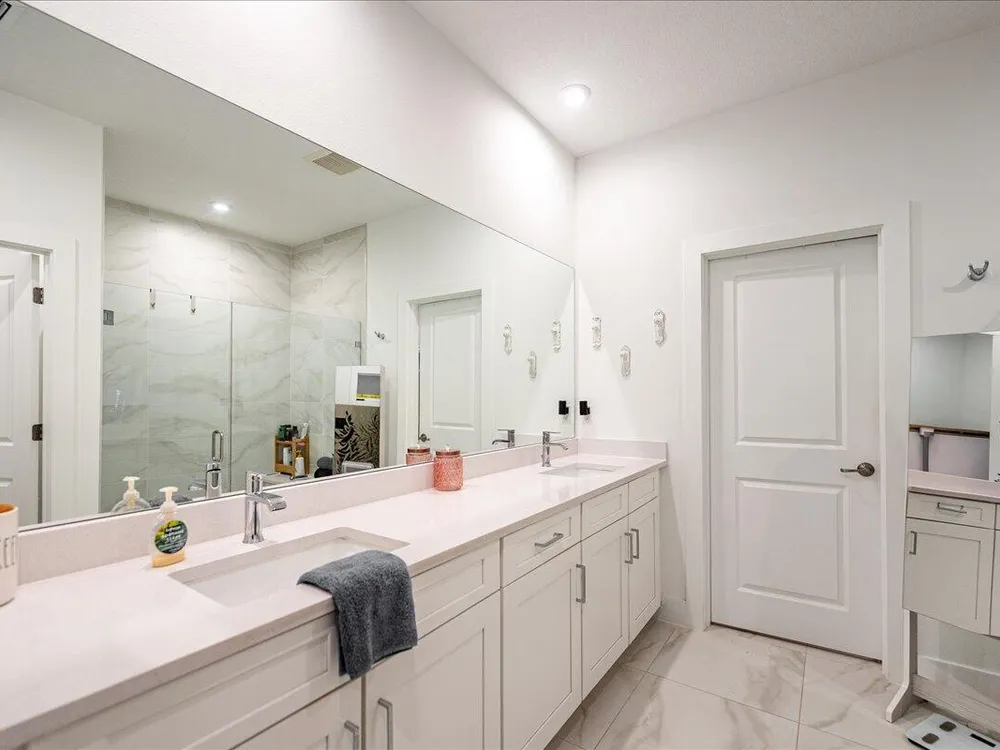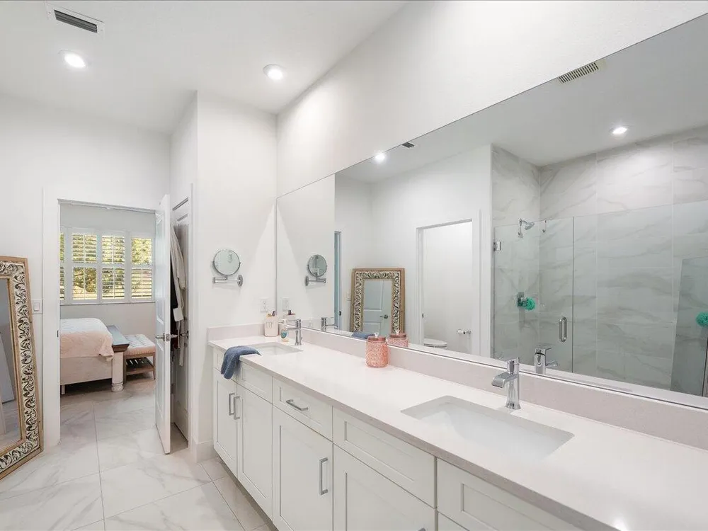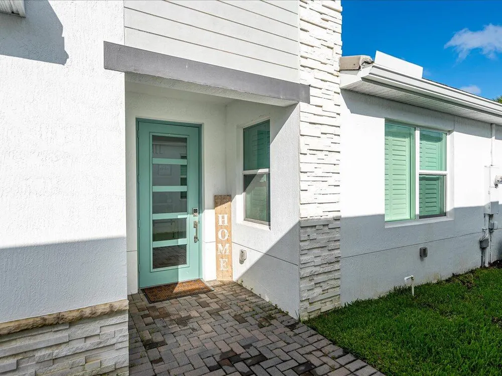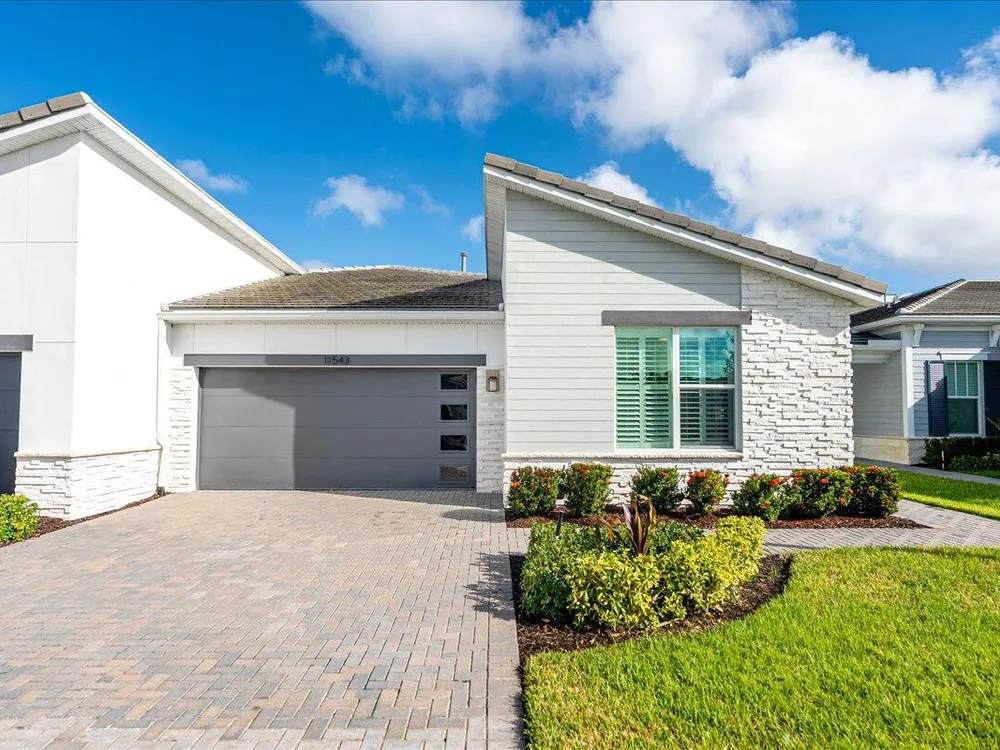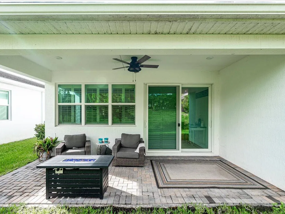 LOCATION! LOCATION! LOCATION! Walking distance to the Heart at Tradition and many restaurants and shops. Step into this modern villa, where you will find a spacious and flexible layout This 2-bedroom, 2.5-bathroom residence features a versatile flex room that can serve as a home office, den, or guest space. The entire home is adorned with beautiful tile flooring, offering both a clean and contemporary feel.Rest easy with the complete peace of mind offered by impact-resistant glass on all windows and doors and a home security system. The primary bedroom boasts a generous walk-in closet for ample storage and a large master bathroom. Outside you can enjoy private peaceful evenings on your covered porch that backs a beautiful grass berm and hedge for additional privacy.