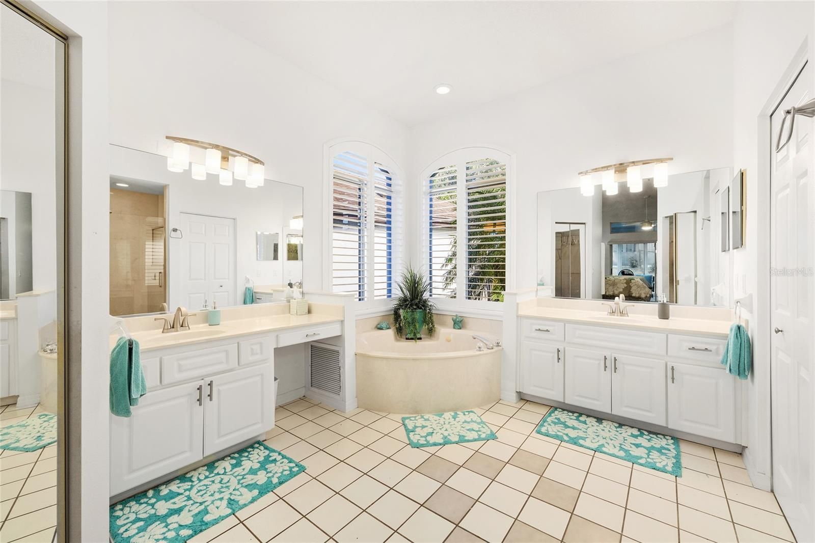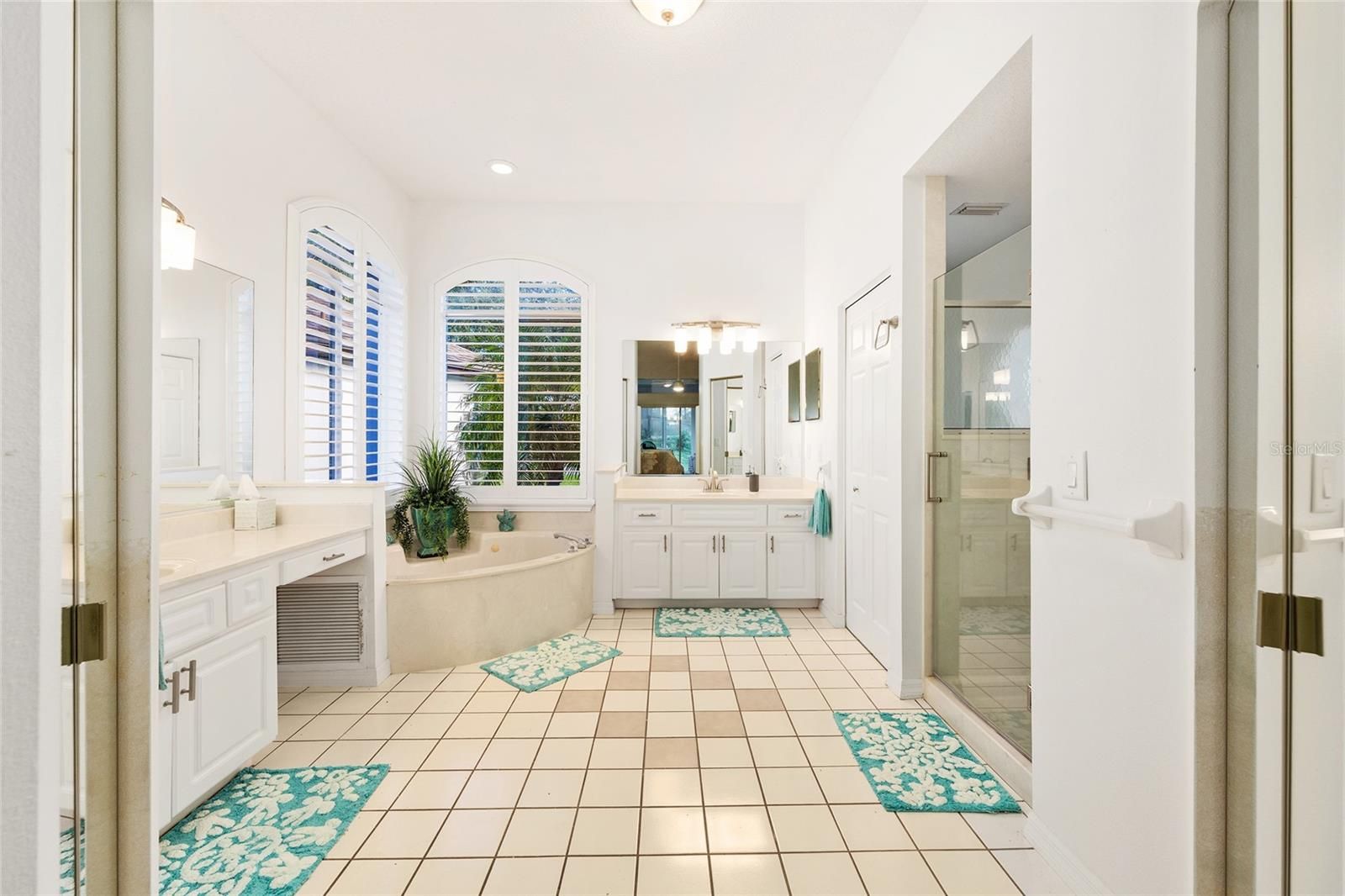 - Cathedral Ceiling(s), Ceiling Fan(s), High Ceilings, Solid Surface Counters, Split Bedrooms, Stone Counters, Walk-In Closet(s), Window Treatments