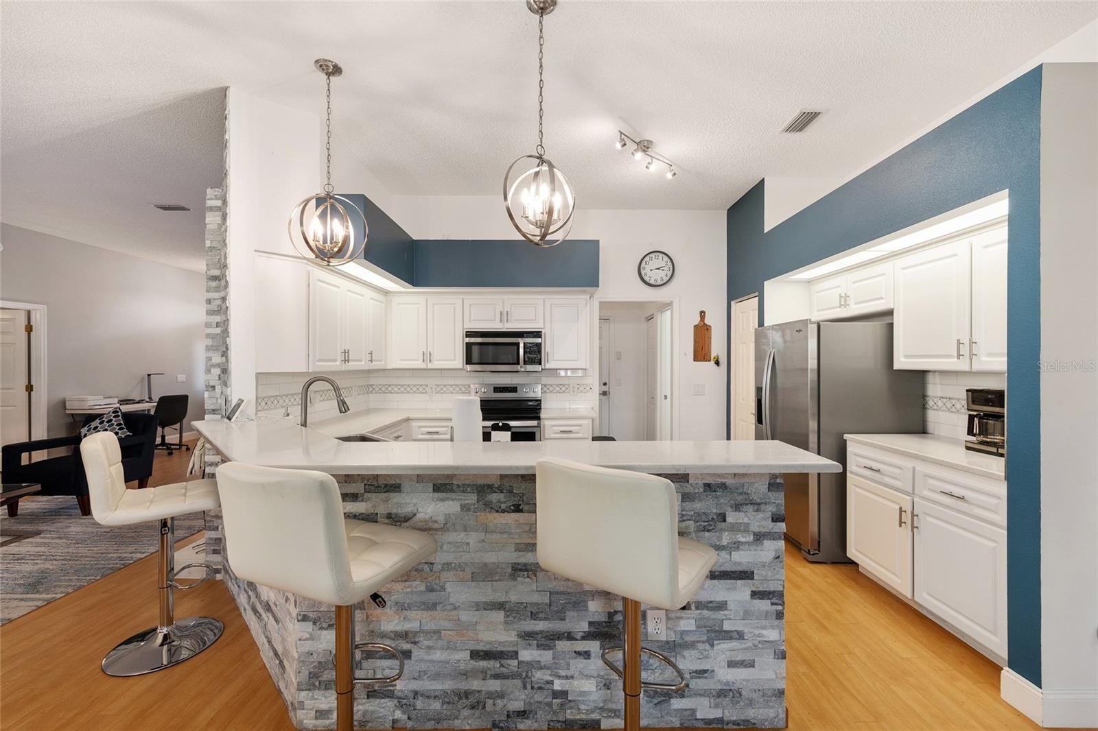 Welcome to 55+ living in the Beautiful Stonecrest subdivision. This 3 bedroom 2 bath newly redone home sits on a quite cul-de-sac in the Fairways area. With the glass entry front door leading you into this fully furnished formal living room, formal dining room, newly replaced appliances, bar seating kitchen, and a great family room, you will want to make this house your own very soon. The primary bedroom has a sliding glass door that leads out to the lanai, in suit bathroom with 2 closets, and a jetted tub. Formal living room and family rooms also have sliders leading out to the lanai. There was a new roof put on in 2017, main core of the A/C unit was replaced in 2022, water heater replaced in 2012, also included this this fabulous home central vacuum system, alarm system, along with new towels , dishes, pots, pans, sheets, bedding, you name it. This is the buy of the day, hurry, don't wait, this one will not last at this price. Bring your toothbrush. Make your appointment today!!