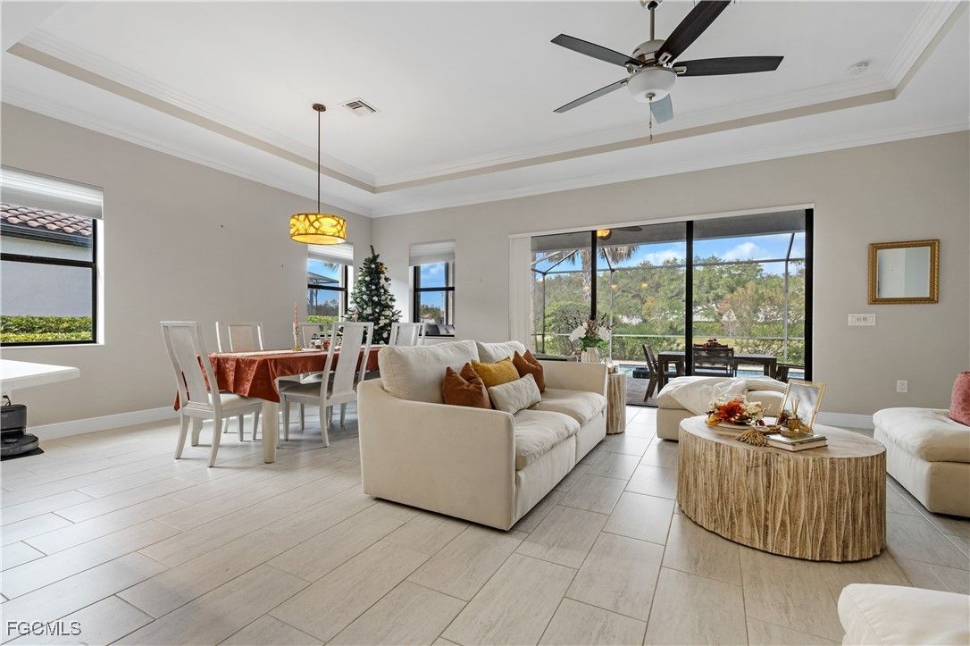 Discover the Islamorada floor plan by WCI in Arborwood Preserve, offering 3 bedrooms, a den, and 3 full bathrooms across 2,201 sq ft of single-level living. Set on a lake front homesite with an extended screened lanai and heated pool, this home features a fully paid solar system powering both the residence and the pool, reducing monthly electric costs to a small service fee. Hurricane protection includes accordion shutters securing the entire exterior. Interior highlights include a spacious great room with tray ceiling detail, a kitchen with Corian countertops, abundant cabinetry, pantry storage, and stainless-steel appliances. Main living areas feature plank tile flooring, while all bedrooms have luxury vinyl flooring. One secondary bedroom includes an ensuite bath, creating a private guest suite. Arborwood Preserve is a resort-style gated community located off Daniels Parkway in the Gateway/RSW corridor. The 23,000+ sq ft Town Center includes a resort pool with outdoor bar and dining pavilion, restaurant/bar, fitness studio with cardio/strength equipment, movement/yoga room, coffee lounge, indoor theater room, art/craft studio, card rooms, and staffed activity spaces. Outdoor amenities include lighted tennis, pickleball, and bocce courts. The home offers convenient access to I-75, Gulf Coast Town Center, RSW International Airport, FGCU, and a wide range of shopping and dining. Nearby anchors include the Sky Walk center on Daniels Pkwy (approx. 3 mi) with Publix, Dunkin’, and Tropical Smoothie Café; JetBlue Park (approx. 2 mi), the Boston Red Sox spring training complex; and the broader Gateway corridor with additional restaurants and recreation. Regional nature sites, including Six Mile Cypress Slough Preserve, are accessible within a short drive. This home combines energy-efficient features, structured resort-style amenities, and a central Daniels Parkway location for access to daily conveniences, recreation facilities, and regional transportation. 0.3 mi to Arborwood Town Center amenities • Approx. 3 mi to Publix Sky Walk & coffee options • Approx. 2 mi to JetBlue Park
