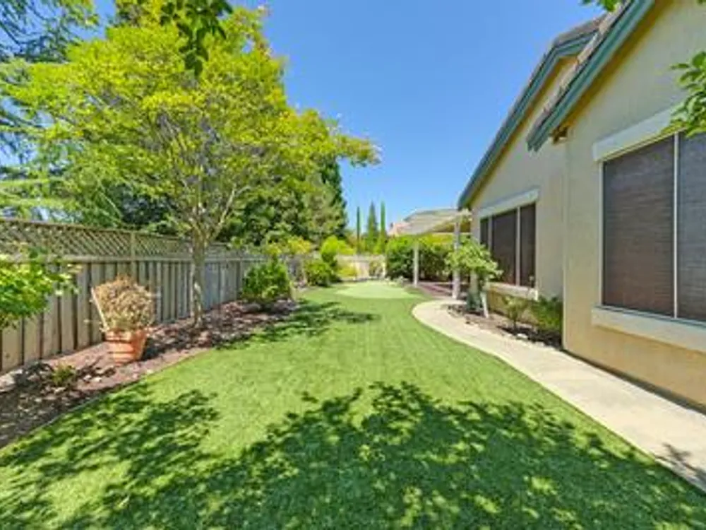 Welcome to this beautifully updated 3-bedroom, 2-bathroom home located in the highly sought-after Sun City Lincoln Hills a premier 55+ active adult community. This move-in ready home offers a perfect blend of comfort, style, and functionality! Enjoy brand-new carpet, fresh interior and exterior paint, new toilets, and a newer HVAC system for year-round comfort. The home features OWNED solar to help keep energy costs low. The elegant marble flooring, plantation shutters, and a beautifully appointed kitchen with an additional pantry add timeless charm and convenience. Step outside to a backyard built for relaxation and entertaining featuring a stunning pergola with decorative columns, ceiling fans, gorgeous tile patio, and your very own putting green! All this just minutes from Orchard Creek Lodge, golf courses, walking trails, and the countless amenities Sun City has to offer. Don't miss this opportunity to enjoy resort-style living in a vibrant community!
