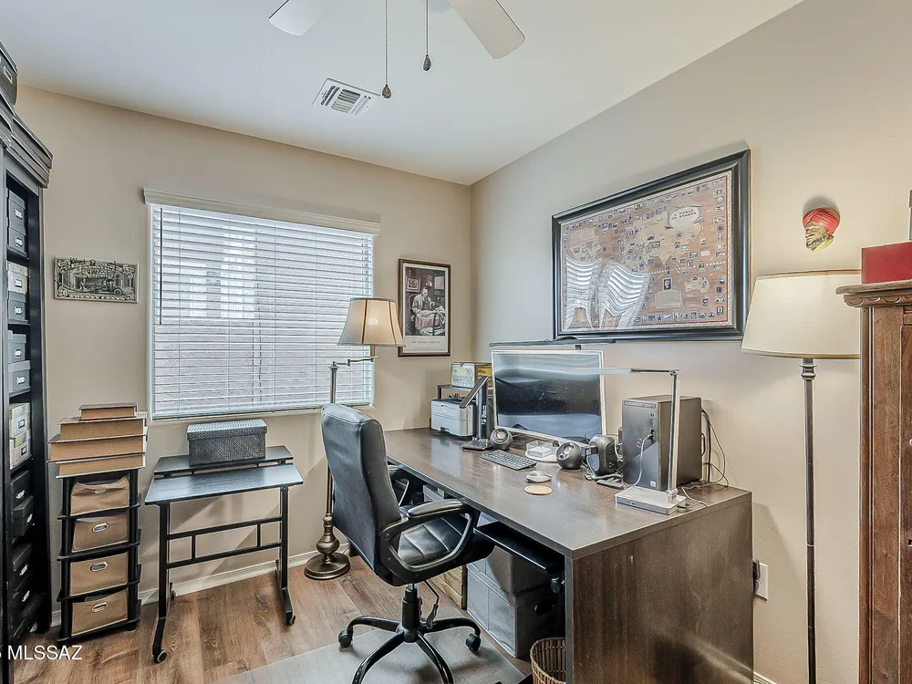 FURNISHED OR UNFURNISHED! Experience comfort and convenience in this charming 2-bd, 2-ba home, perfect for those looking to settle near amenities and outdoor spaces. This property offers an open great room ideal for entertaining, coupled with a sleek kitchen featuring stainless appliances. It includes an office space, perfect for remote work or creative endeavors. This community comes with a beautiful clubhouse with a ballroom, library and gym for all the residents to enjoy For those that enjoy the oudoors there is a DOG PARK 1/2 BLK AWAY W/ SM & LG DOG AREAS, pool, volleyball court, putting green and much more. Just a stone's throw away, enjoy Sahuarita Park and Fry's Marketplace for your grocery and relaxation needs. Don't miss out on making this delightful house your new home.
