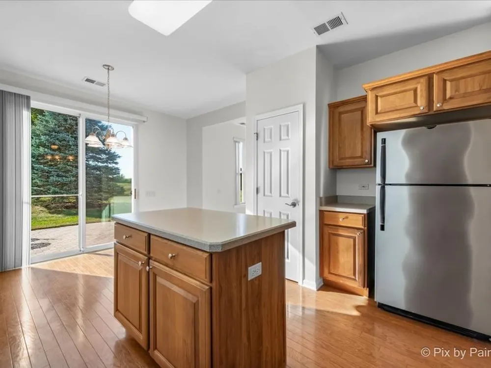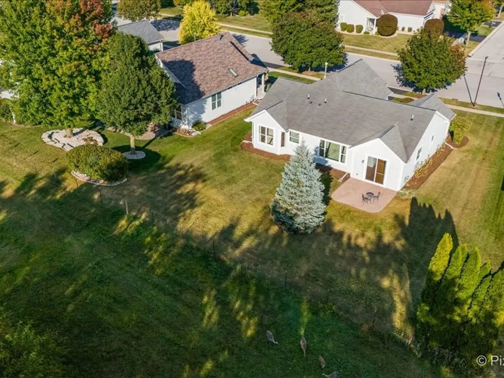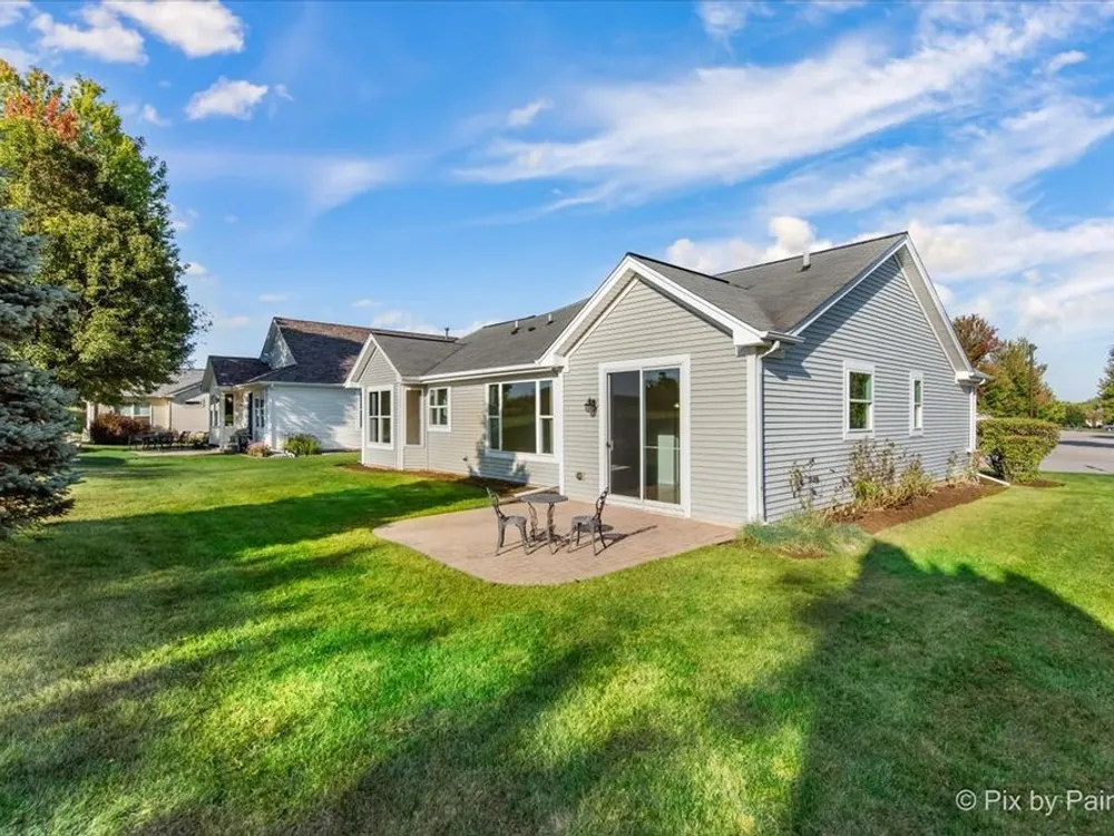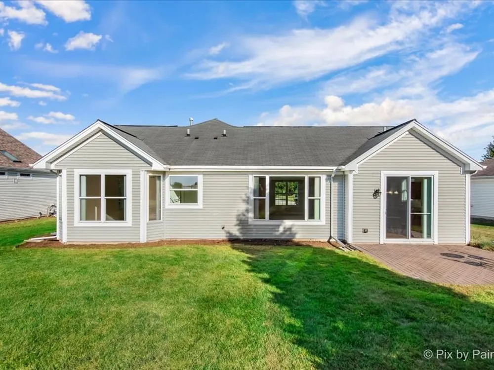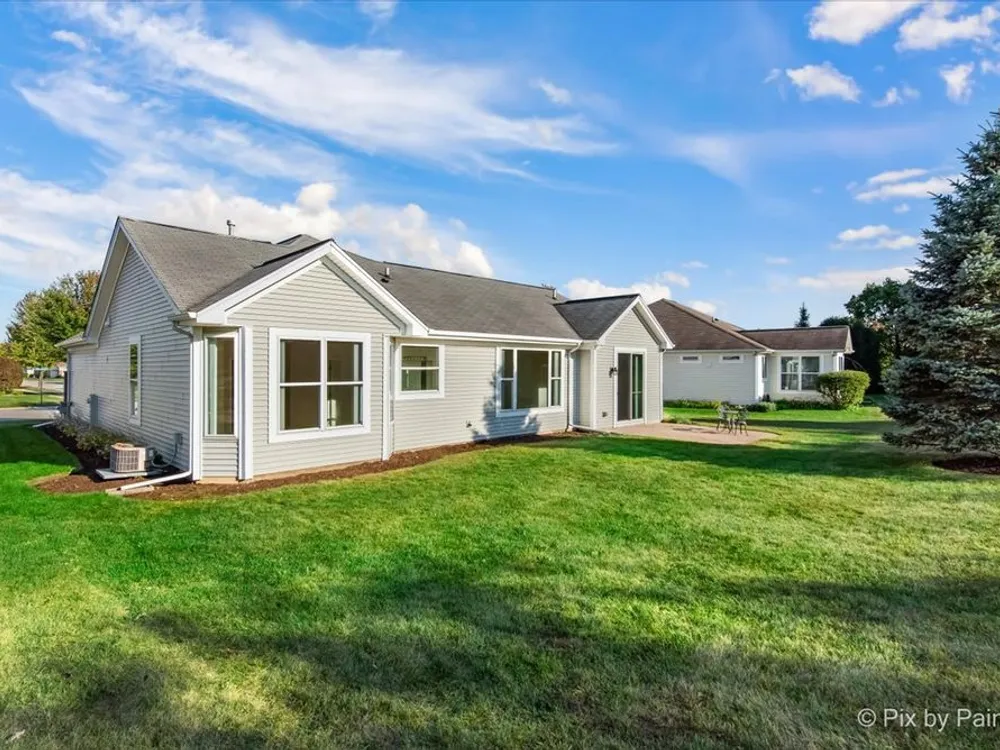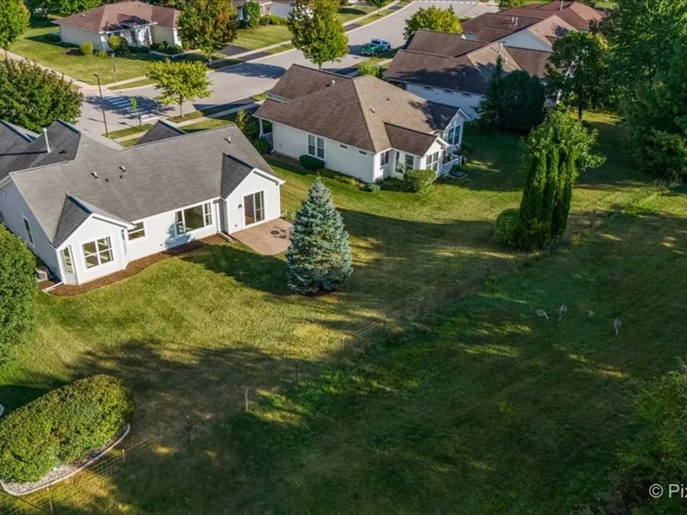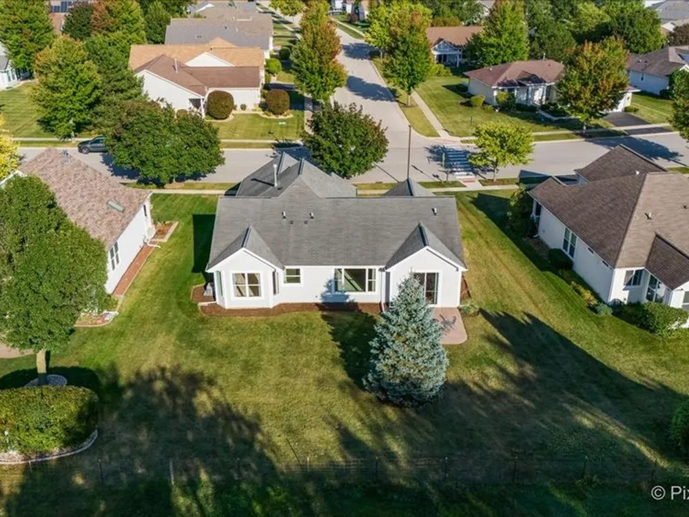 Step into this well-cared-for Mackinac model, freshly painted throughout for a bright, welcoming feel the moment you arrive. With 2 bedrooms and 2 full baths, a bright living room, a separate dining room, and an eat-in kitchen with island & pantry, the floor plan flows beautifully. The primary suite features a large walk-in closet and a private bath with separate shower and soaking tub. A practical laundry/mechanical room with utility sink keeps daily tasks simple, while the extended garage provides valuable space for storage, hobbies, or even a golf cart. Recent updates include a new front door (2025), microwave (2019), washer (2025), and a freshly seal-coated driveway (Sept 2025). Whole-house humidifier and fresh-air ventilation system enhance year-round comfort and indoor air quality. For added peace of mind, a 1-year Choice Home Warranty is included. Set on a spacious 1/4-acre lot with a brick paver patio and tranquil open views of mature trees and green space that span the entire back of the home. A rec walk park is less than five minutes away. Life at Sun City Huntley by Del Webb is vibrant and connected. This golf cart community features Prairie and Meadow View Lodges, a fitness center, indoor and outdoor pools, tennis and pickleball courts, scenic walking and biking trails, plus a variety of clubs, concerts, and activities. On-site dining and wellness programs add everyday convenience right at your doorstep. Beyond the neighborhood, Huntley offers dining, shopping, park district programs, and popular events like concerts in the park. The American Legion is an active hub for veterans and neighbors alike. Conveniently located near I-90, Sun City Huntley provides access to O'Hare and Rockford airports and nearby medical care at Northwestern Medicine Huntley Hospital. Save this home so you don't miss your chance to experience one of the most sought-after active adult communities in Chicagoland!