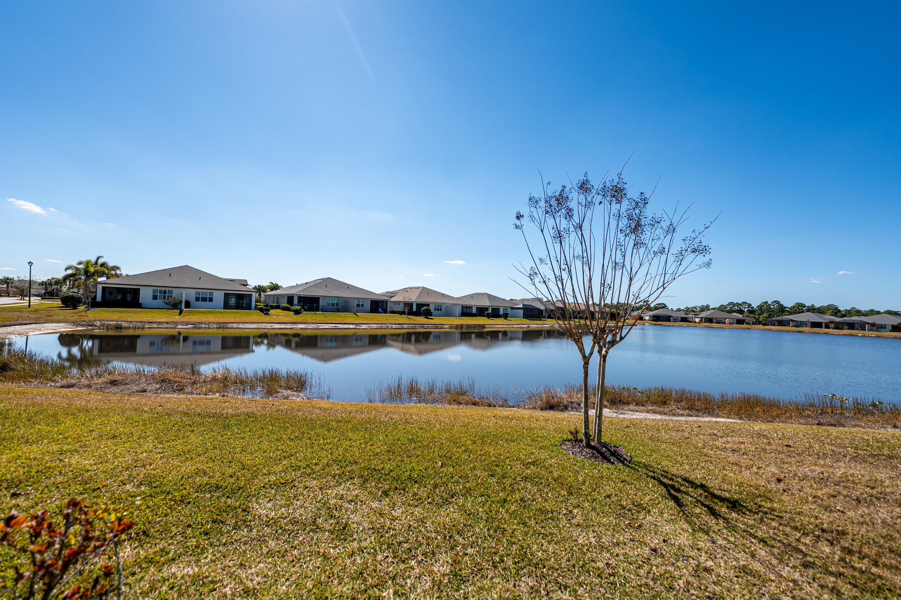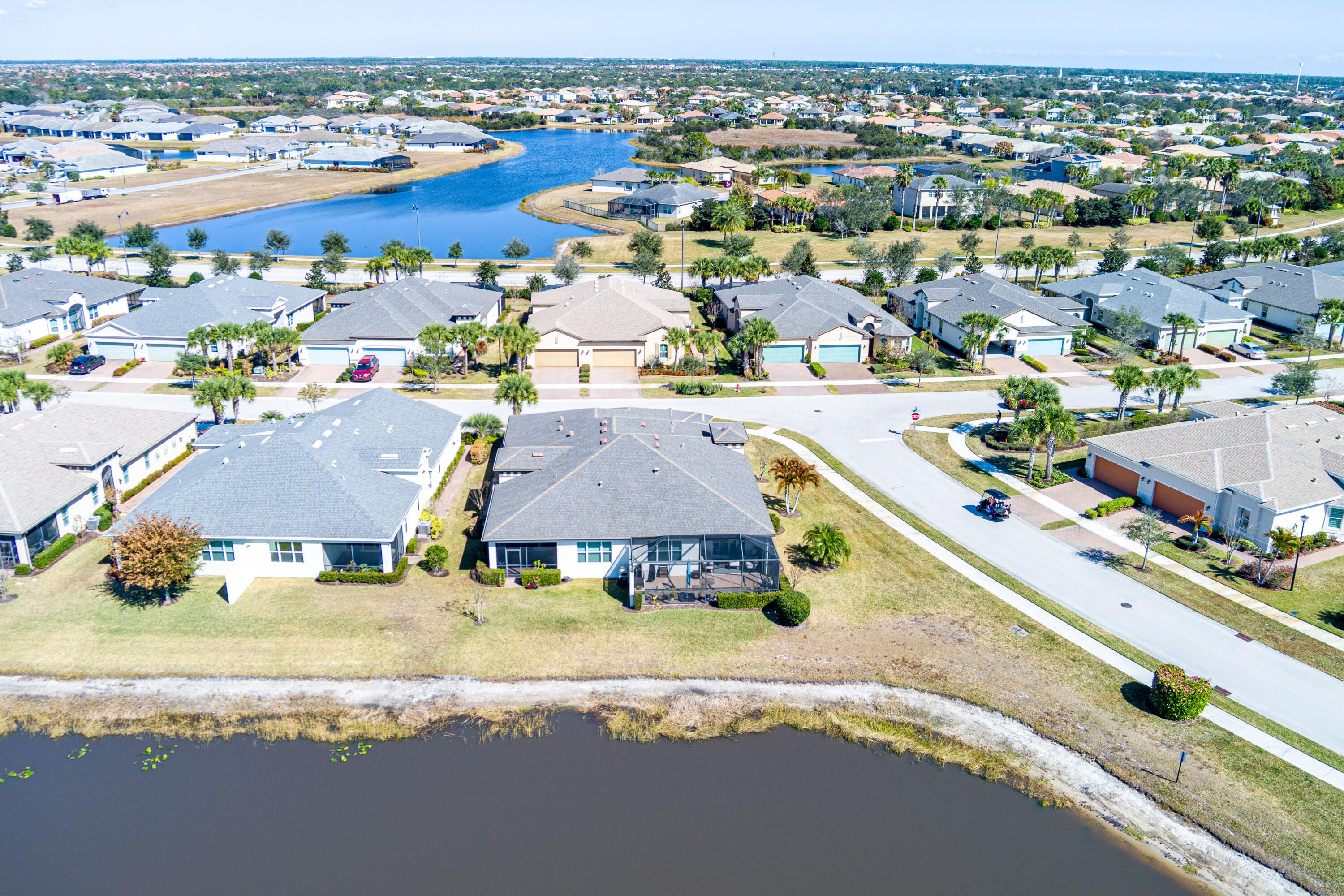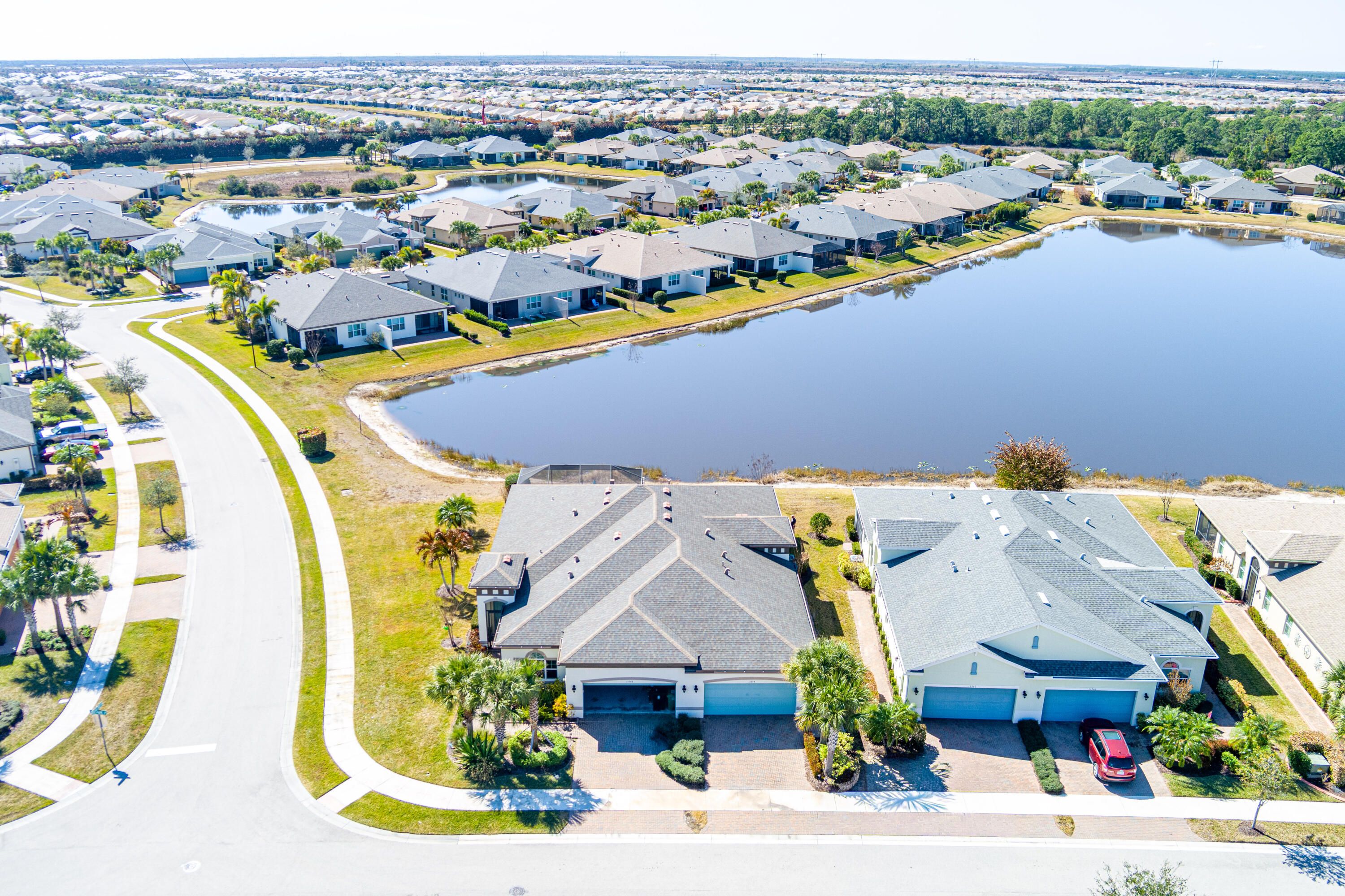Experience captivating panoramic lake views and breathtaking sunsets from this stunning 2 bedroom plus den villa, where tranquil waterfront living meets modern luxury. The 1,565 square foot interior offers a bright and inviting space, featuring an open concept great room with volume ceilings and a chef-inspired kitchen complete with a large island, sleek cabinetry, and premium appliances. The spacious primary suite offers a private retreat with stunning water views, dual vanities, and a large walk-in shower. Impact glass windows throughout provide security and energy efficiency, leading out to a screened lanai that serves as the perfect front-row seat for the nightly light show over the water...More> Nestled in the premier LakePark at Tradition 55+ community, you'll enjoy a resort lifestyle with access to two clubhouses, fitness centers, and swimming poolsall while the HOA handles cable, internet, and landscaping for total maintenance-free living.