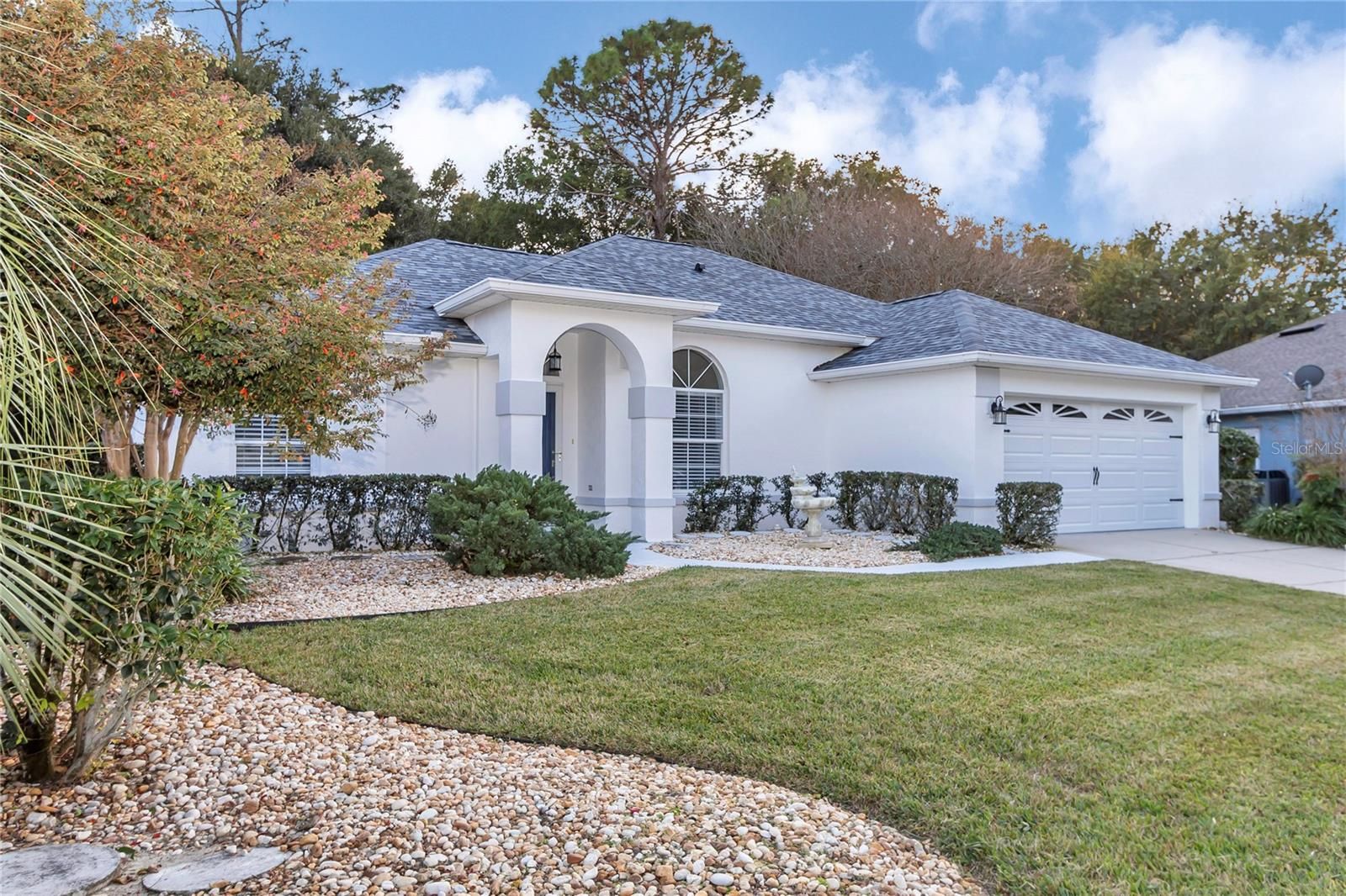 Were you looking for a new home in Oak Run? Look no further. Everything in this 3/2/2 Saratogo Model home in the Hillside neighborhood, has been Updated, right down to the hardware! When you enter the newly replaced front door you quickly notice a freshly painted spacious living area with new 5" baseboard floor trim and new Luxury vinyl plank flooring throughout, new lighting fixtures and new ceiling fans. Off to the right is the dining room area. The split floor plan home has the Primary bedroom located off the kitchen and 2 guest bedrooms across the living room with a bathroom between. Both bathrooms have been completely updated with new custom walk-in showers,new vanities, new lighting and Porcelain tile. The eat-in kitchen has new custom cabinets that are soft close, below cabinet lighting, quartz countertops and all new stainless appliances. Off the kitchen is a sun room area that has a New Door Wall, that leads to a private Tavertine Tiled Patio with a large brand new,in-ground,Custom Gunite/concrete Spa,enclosed in a birdcage. It looks out on a private wooded backyard with sidewalk with a landscaped archway, that connects up to the front of the home. The Laundry room is just off the kitchen. The large 2 car garage has a New Garage Door. There is also a pull-down stairway to the attic. Roof 2024, AC 2018. Oak Run is a 55+ gated community, with 6 pools, 5 spas, 2 fitness centers, Billiard and Card Room, Dog Park, Restaurant, Golf Course and Driving Range. Close to Medical Facilities, Restaurants and shopping. This is a must see to appreciate what has been done on this HOME!