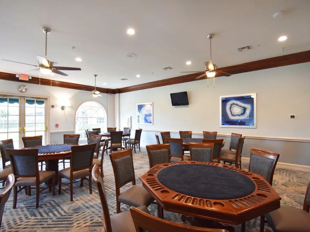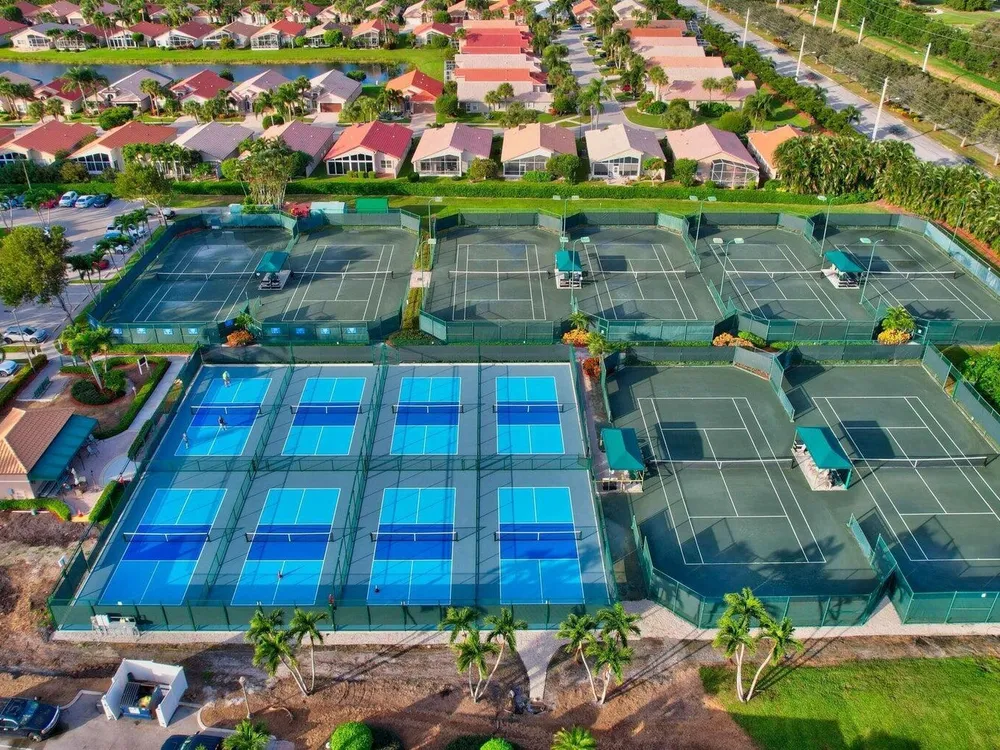 - Billiard Room, Bocce, Business Center, Restaurant, Clubhouse, Fitness Center, Internet Included, Library, Lobby, Property Manager On Site, Pickleball, Pool, Sidewalks, Spa/Hot Tub, Street Lights, Tennis Court(s)