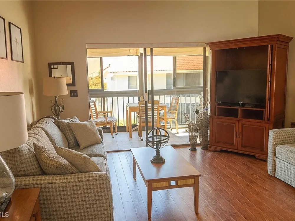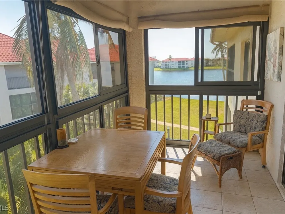 Don't miss a chance to own this perfectly located third floor unit with cathedral ceilings, "partial lake view" with direct exposure from the lanai and primary bedroom, and stunning updated kitchen. As a top floor unit, this unit gives you north and south exposures, keeping you from direct sunlight, but still allowing you to see a piece of the lake. Being sold furnished, with the exception of a few handcraft pieces by the family. Pack your bag and move right in. Flood insurance is included in the HOA fee. Taxes are approximately $2900 a year. You are close to Target, Aldi, Publix and Walmart. Even better, you are 3 miles to Fort Myers Beach and 4 miles to Sanibel/Captiva causeway where there is an abundance of shops, restaurants, ice cream shops and many more activities.
