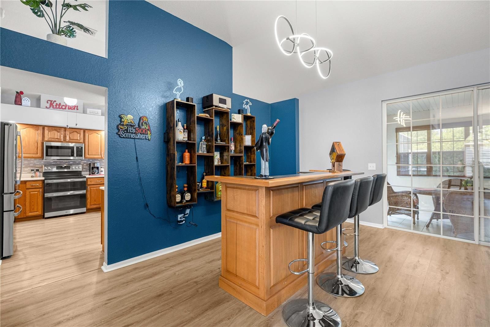 - Cathedral Ceiling(s), Ceiling Fan(s), Dry Bar, Living/Dining Room