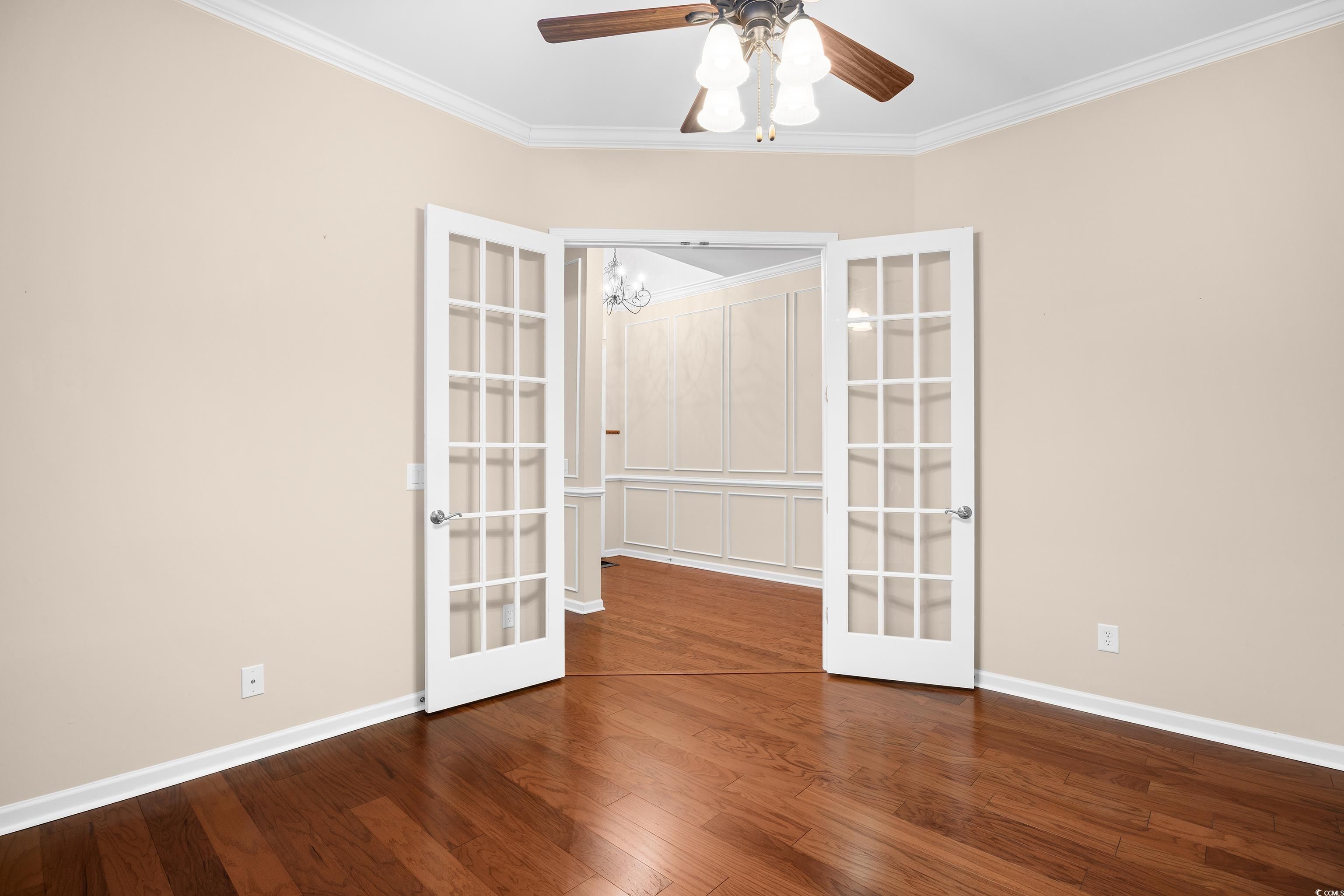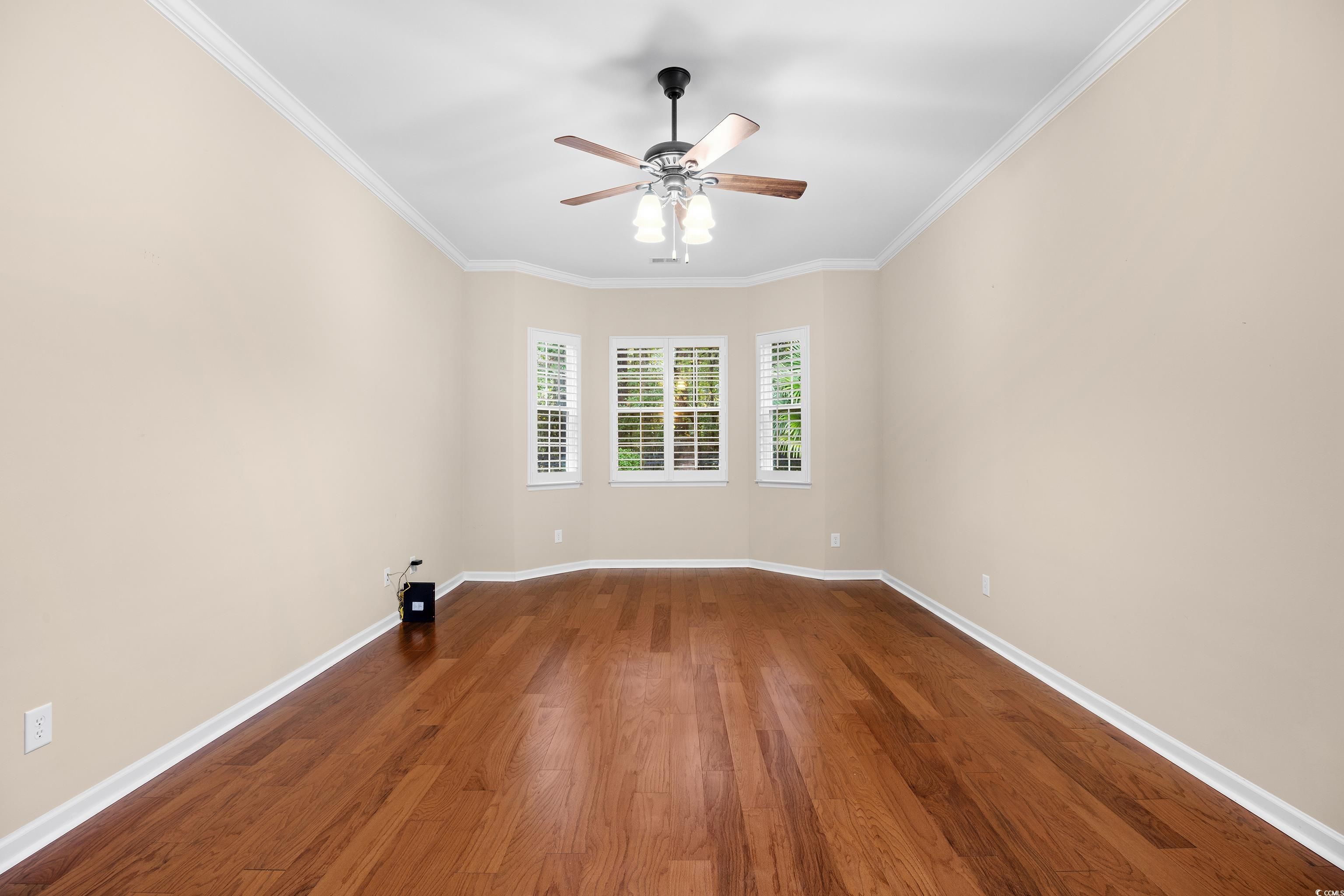 New price, and the HOA's monthly fee is paid through the end of the year. That means no payments for YOU until January 2026!! The Homestead floor plan is built with a Carolina Room, which is heated and cooled with the same system as the main home. The home was built in 2011 and sits on a parklike property with a partial view of the 3rd hole at Blackmoor Golf Course. For those who are avid golfers, what a treat this would be! This single-family residence is in Seasons at Prince Creek West (Active Adult 55+), has three bedrooms, two bathrooms, and a finished two-car garage with a mini split to cool the garage. The covered front porch and walkway to the front door have been professionally painted and are a nice place to enjoy your morning coffee or afternoon libations. When you enter the home, you will immediately see the beautiful trim work and box moldings that define the hallway and foyer. The mirror and two sconces are additional beautiful features in the hallway, along with the wrought iron chandelier and crown molding in the tray ceiling. This is a great area to showcase your artwork or pictures. The Kitchen was designed with Granite countertops, white cabinets, roll-out lower shelving in the cabinets, tile backsplash, and an additional wall of upper glass-front cabinets with lower cabinets and drawers. The stainless-steel French Door refrigerator and dishwasher, along with the white stove and microwave, complement the kitchen. The Family Room has two sliding glass doors that open into the Carolina Room, and a gas fireplace and wood mantle surround. The flat screen TV will come with the home. Adjacent to the Family Room is the Dining Room, which is accessible to the Kitchen. The open concept floor plan is perfect for entertaining. Access to the backyard is through the Carolina Room. Outside is a patio and a retractable remote-controlled awning, for the days you prefer shade. The picturesque view has lush greenery and a newly sodded rear yard. The primary suite, with a bay window, offers two large walk-in closets, an en-suite bathroom with a tiled shower, soaking tub, linen closet, vanity, and dual sinks. Two additional bedrooms, one currently being used as a Den with French Doors, are at the front of the home. They share the second bathroom with a tub/shower, a linen closet, and a single vanity. Some other special features to mention are crown molding in most areas, custom window treatments, Plantation Shutters, a gas-tankless water heater, a mini split air conditioner in the finished garage, a portable generator, hurricane window coverings, a whole house surge protector, a Sunsetter retractable awning, and the front load washer and gas dryer will convey. Engineered wood plank flooring is throughout the home, and tile is in the Kitchen, bathrooms, Carolina Room, and laundry room. The home is very well-maintained. The monthly HOA fee includes the following: internet, weekly trash pick-up, lawn service, irrigation, a fitness center, an indoor and outdoor pool, a Jacuzzi, a BBQ area, a shuffleboard and bocce ball area, a gated community, and a Grand Clubhouse with an onsite Lifestyle Director. The clubhouse can be a great place to relax or gather with friends at community events. With a short golf cart or drive, you can access The Park, which features two additional outdoor pools, pickleball courts, bocce ball courts, basketball courts, tennis courts, and walking trails. The community does not allow any fencing in the yard, but they will allow WIFI dog fences, as there is no underground wiring necessary. It is pet and golf cart friendly and features sidewalks throughout the community. All square footage is to be confirmed by the buyers and their agent. Some pictures have been VIRTUALLY STAGED.