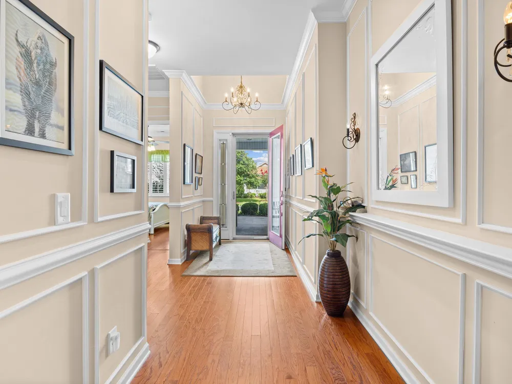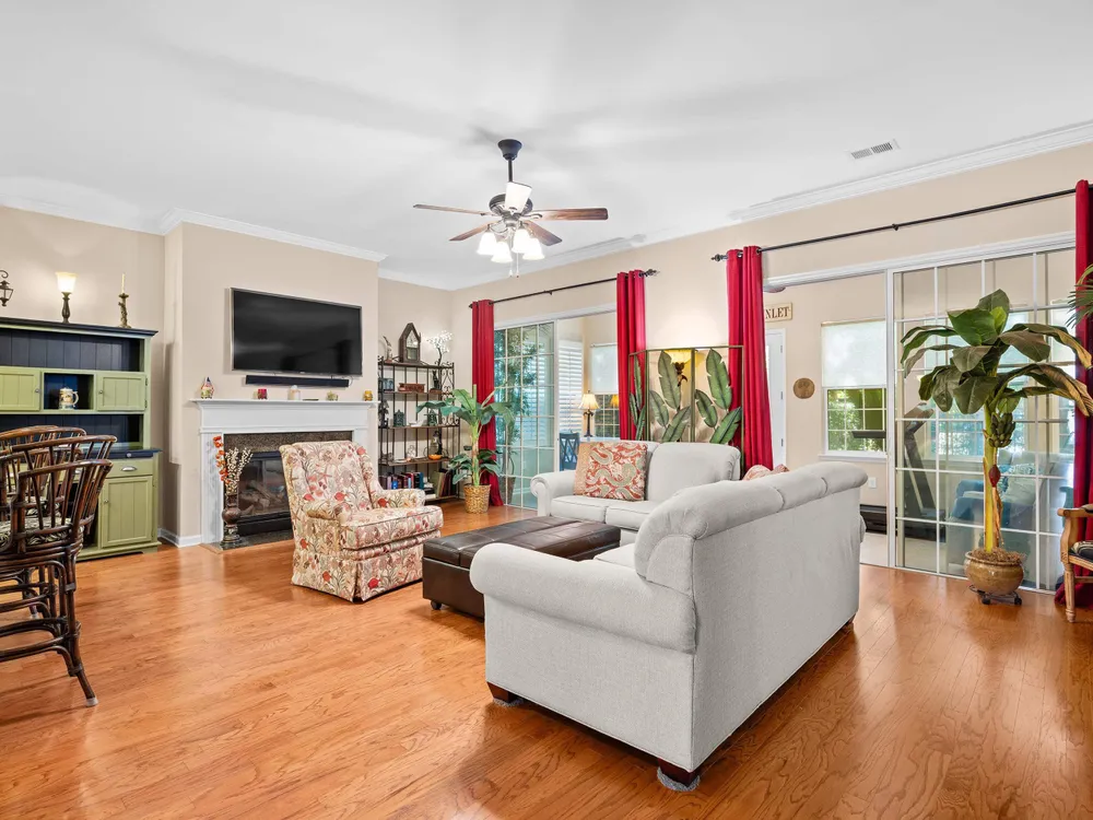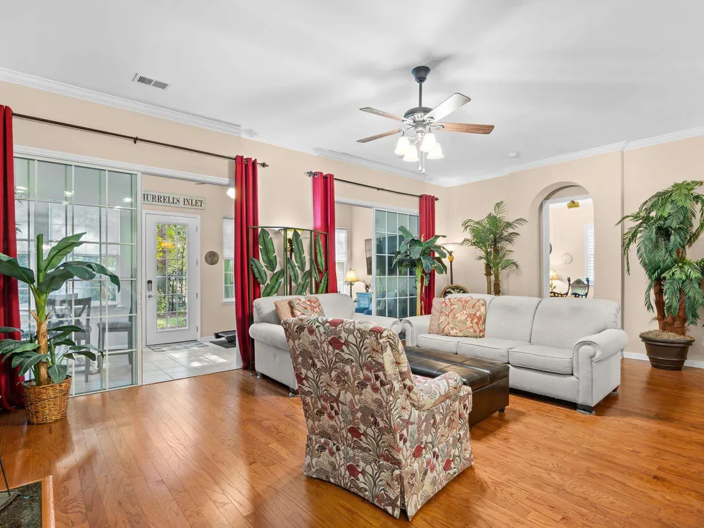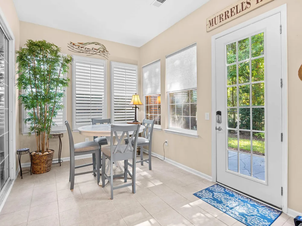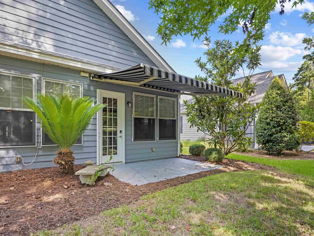 The seller has paid the HOA's monthly fee through the end of the year. That means no payments for YOU until January 2026!! The Homestead floor plan is built with a Carolina Room, which is heated and cooled with the same system as the main home. The home was built in 2011 and sits on a parklike property with a partial view of the 3rd hole at Blackmoor Golf Course. For those who are avid golfers, what a treat this would be! This single-family residence is in Seasons at Prince Creek West (Active Adult 55+), has three bedrooms, two bathrooms, and a finished two-car garage with a mini split to cool the garage. The covered front porch and walkway to the front door have been professionally painted and are a nice place to enjoy your morning coffee or afternoon libations. When you enter the home, you will immediately see the beautiful trim work and box moldings that define the hallway and foyer. The mirror and two sconces are additional beautiful features in the hallway, along with the wrought iron chandelier and crown molding in the tray ceiling. This is a great area to showcase your artwork or pictures. The Kitchen was designed with Granite countertops, white cabinets, roll-out lower shelving in the cabinets, tile backsplash, and an additional wall of upper glass-front cabinets with lower cabinets and drawers. The stainless-steel French Door refrigerator and dishwasher, along with the white stove and microwave, complement the kitchen. The Family Room has two sliding glass doors that open into the Carolina Room, and a gas fireplace and wood mantle surround. The flat screen TV will come with the home. Adjacent to the Family Room is the Dining Room, which is accessible to the Kitchen. The open concept floor plan is perfect for entertaining. Access to the backyard is through the Carolina Room. Outside is a patio and a retractable remote-controlled awning, for the days you prefer shade. The picturesque view has lush greenery and a newly sodded rear yard. The primary suite, with a bay window, offers two large walk-in closets, an en-suite bathroom with a tiled shower, soaking tub, linen closet, vanity, and dual sinks. Two additional bedrooms, one currently being used as a Den with French Doors, are at the front of the home. They share the second bathroom with a tub/shower, a linen closet, and a single vanity. Some other special features to mention are crown molding in most areas, custom window treatments, Plantation Shutters, a gas-tankless water heater, a mini split air conditioner in the finished garage, a portable generator, hurricane window coverings, a whole house surge protector, a Sunsetter retractable awning, and the front load washer and gas dryer will convey. Engineered wood plank flooring is throughout the home, and tile is in the Kitchen, bathrooms, Carolina Room, and laundry room. The home is very well-maintained. The monthly HOA fee includes the following: internet, weekly trash pick-up, lawn service, irrigation, a fitness center, an indoor and outdoor pool, a Jacuzzi, a BBQ area, a shuffleboard and bocce ball area, a gated community, and a Grand Clubhouse with an onsite Lifestyle Director. The clubhouse can be a great place to relax or gather with friends at community events. With a short golf cart or drive, you can access The Park, which features two additional outdoor pools, pickleball courts, bocce ball courts, basketball courts, tennis courts, and walking trails. The community does not allow any fencing in the yard, but they will allow WIFI dog fences, as there is no underground wiring necessary. It is pet and golf cart friendly and features sidewalks throughout the community. All square footage is to be confirmed by the buyers and their agent.