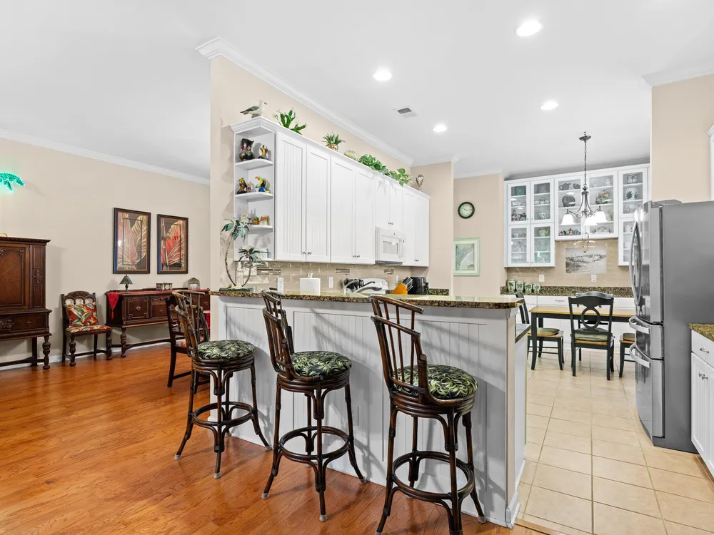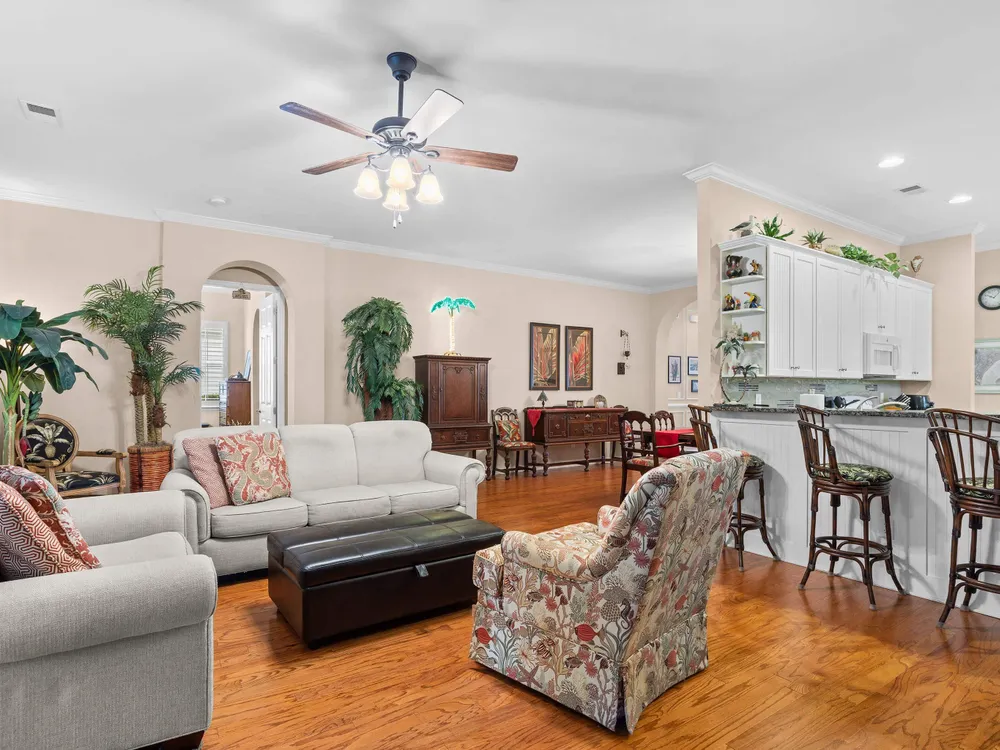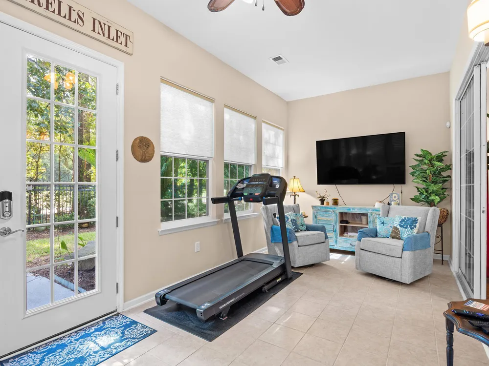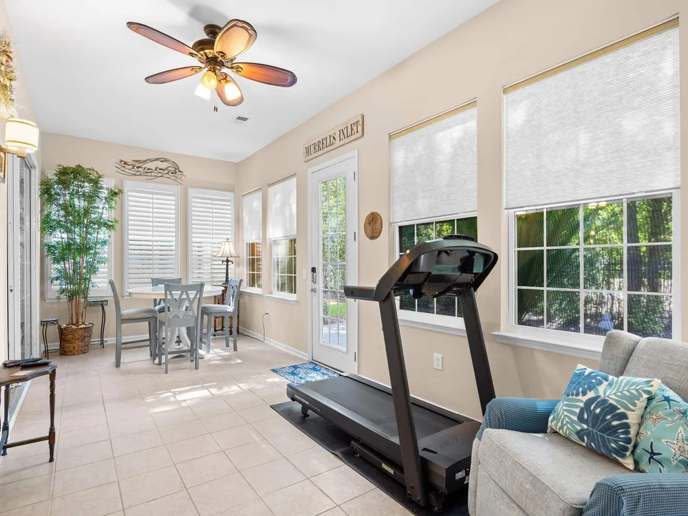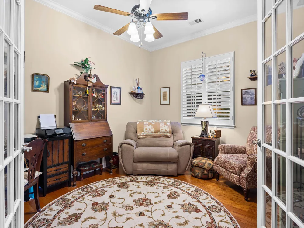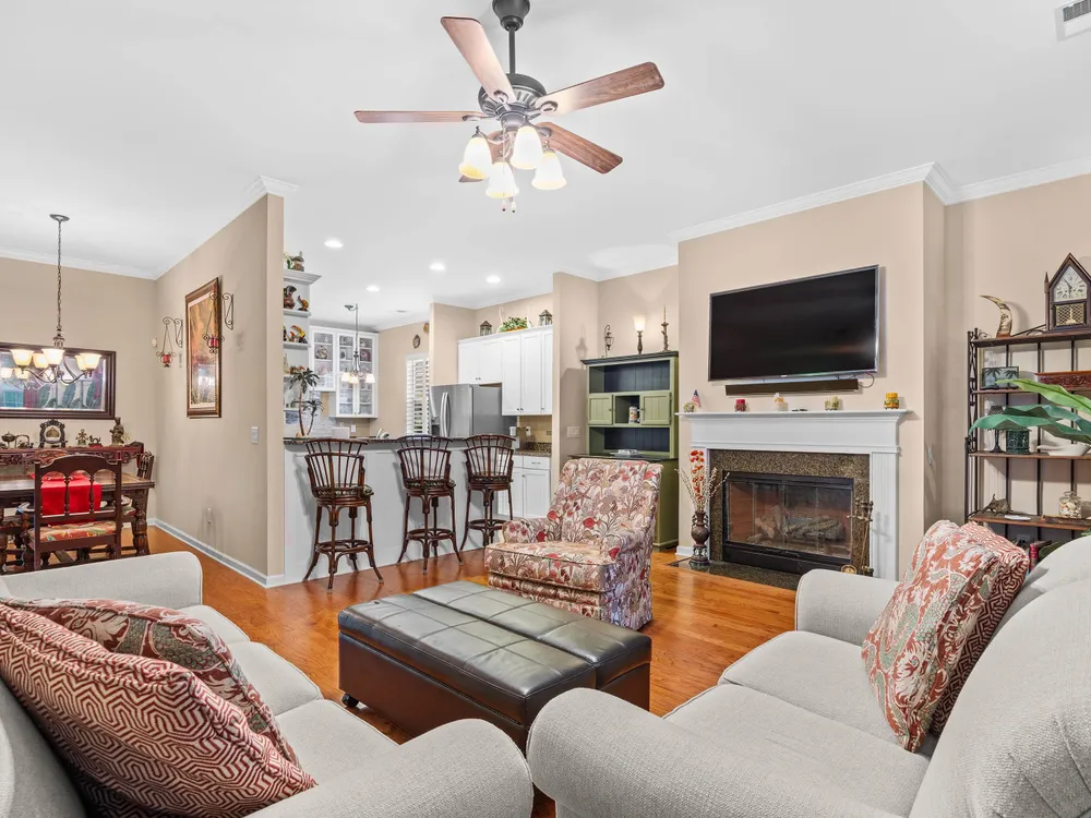 The seller has paid the HOA's monthly fee through the end of the year. That means no payments for YOU until January 2026!! The Homestead floor plan is built with a Carolina Room, which is heated and cooled with the same system as the main home. The home was built in 2011 and sits on a parklike property with a partial view of the 3rd hole at Blackmoor Golf Course. For those who are avid golfers, what a treat this would be! This single-family residence is in Seasons at Prince Creek West (Active Adult 55+), has three bedrooms, two bathrooms, and a finished two-car garage with a mini split to cool the garage. The covered front porch and walkway to the front door have been professionally painted and are a nice place to enjoy your morning coffee or afternoon libations. When you enter the home, you will immediately see the beautiful trim work and box moldings that define the hallway and foyer. The mirror and two sconces are additional beautiful features in the hallway, along with the wrought iron chandelier and crown molding in the tray ceiling. This is a great area to showcase your artwork or pictures. The Kitchen was designed with Granite countertops, white cabinets, roll-out lower shelving in the cabinets, tile backsplash, and an additional wall of upper glass-front cabinets with lower cabinets and drawers. The stainless-steel French Door refrigerator and dishwasher, along with the white stove and microwave, complement the kitchen. The Family Room has two sliding glass doors that open into the Carolina Room, and a gas fireplace and wood mantle surround. The flat screen TV will come with the home. Adjacent to the Family Room is the Dining Room, which is accessible to the Kitchen. The open concept floor plan is perfect for entertaining. Access to the backyard is through the Carolina Room. Outside is a patio and a retractable remote-controlled awning, for the days you prefer shade. The picturesque view has lush greenery and a newly sodded rear yard. The primary suite, with a bay window, offers two large walk-in closets, an en-suite bathroom with a tiled shower, soaking tub, linen closet, vanity, and dual sinks. Two additional bedrooms, one currently being used as a Den with French Doors, are at the front of the home. They share the second bathroom with a tub/shower, a linen closet, and a single vanity. Some other special features to mention are crown molding in most areas, custom window treatments, Plantation Shutters, a gas-tankless water heater, a mini split air conditioner in the finished garage, a portable generator, hurricane window coverings, a whole house surge protector, a Sunsetter retractable awning, and the front load washer and gas dryer will convey. Engineered wood plank flooring is throughout the home, and tile is in the Kitchen, bathrooms, Carolina Room, and laundry room. The home is very well-maintained. The monthly HOA fee includes the following: internet, weekly trash pick-up, lawn service, irrigation, a fitness center, an indoor and outdoor pool, a Jacuzzi, a BBQ area, a shuffleboard and bocce ball area, a gated community, and a Grand Clubhouse with an onsite Lifestyle Director. The clubhouse can be a great place to relax or gather with friends at community events. With a short golf cart or drive, you can access The Park, which features two additional outdoor pools, pickleball courts, bocce ball courts, basketball courts, tennis courts, and walking trails. The community does not allow any fencing in the yard, but they will allow WIFI dog fences, as there is no underground wiring necessary. It is pet and golf cart friendly and features sidewalks throughout the community. All square footage is to be confirmed by the buyers and their agent.