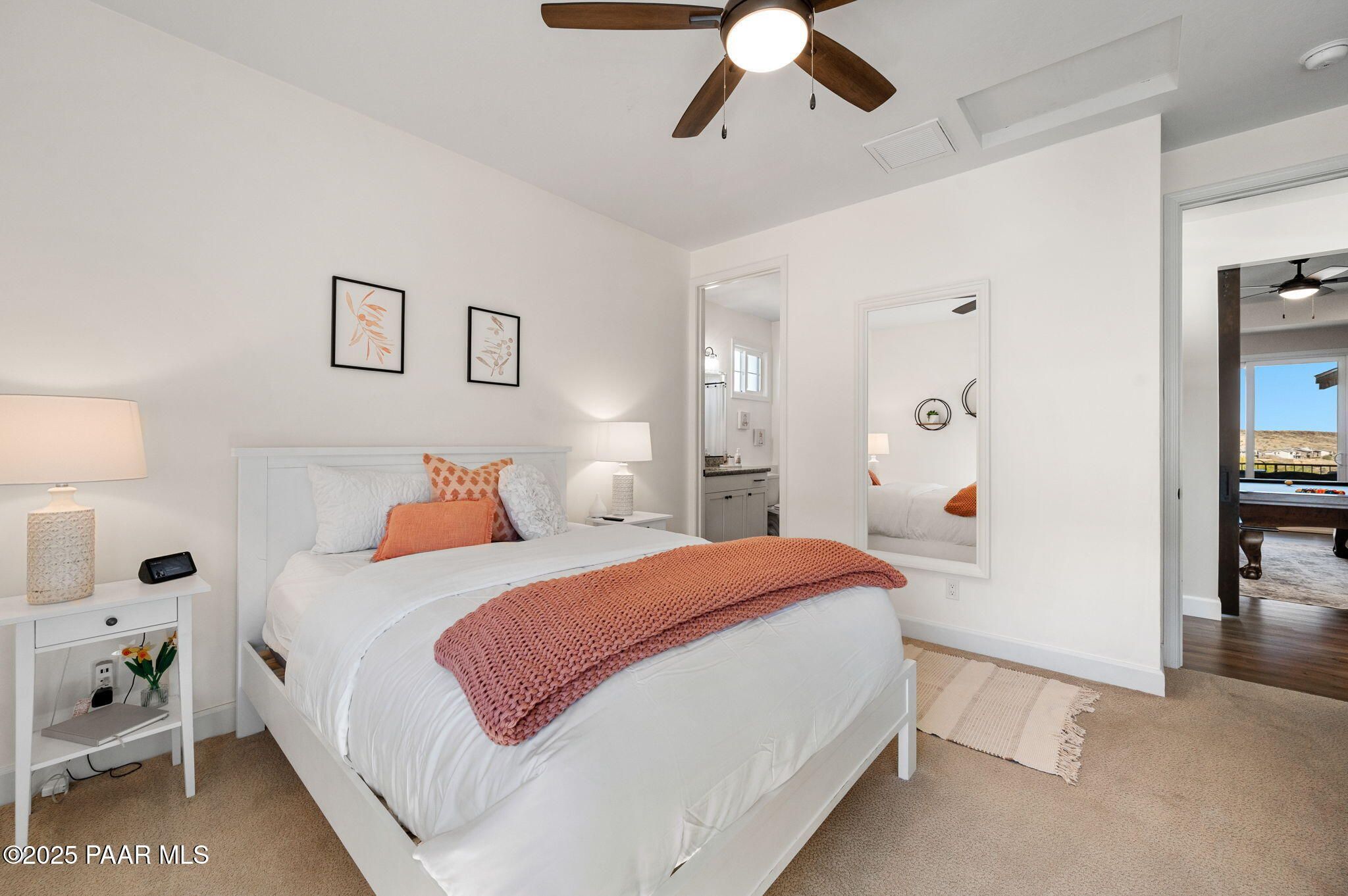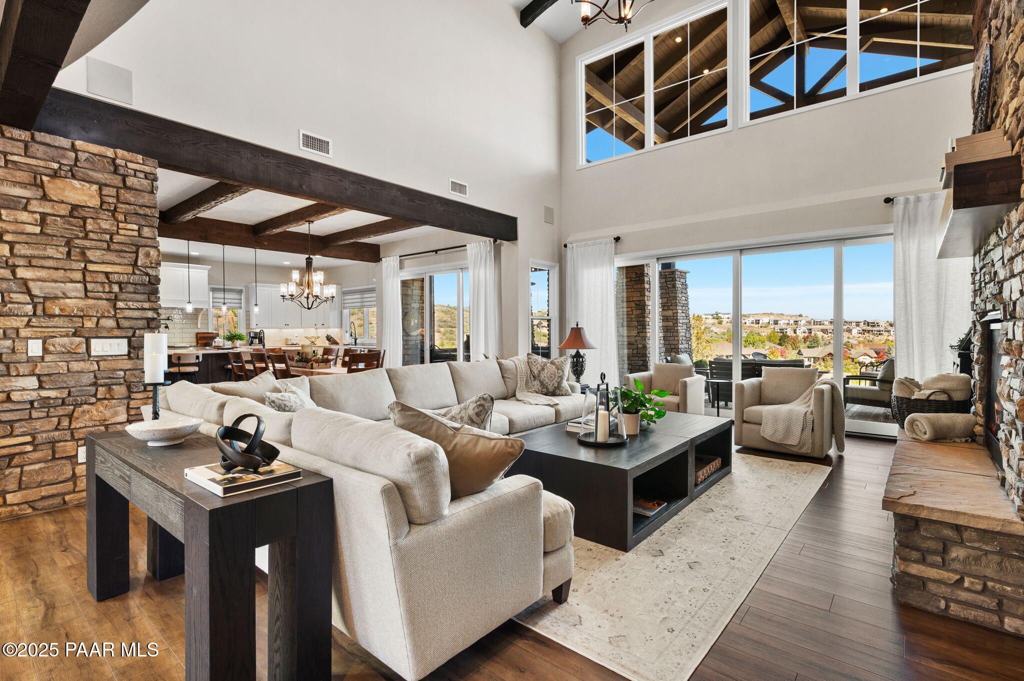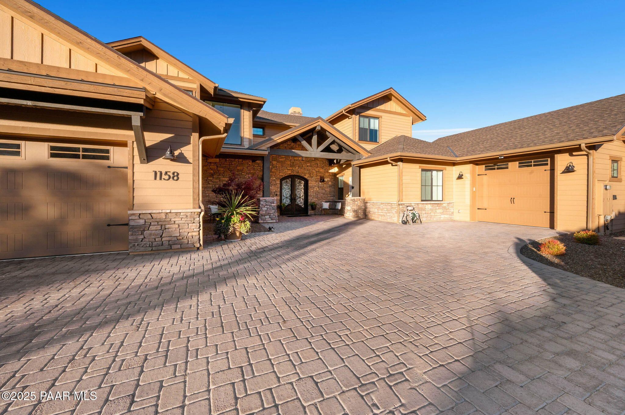 An extraordinary opportunity awaits to own one of the most captivating custom homes in the prestigious gated enclave of The Estates at Prescott Lakes - where luxury living meets the heart of one of Prescott's most vibrant communities. Set on 1.5 acres along the golf course, this 4455 SQFT estate blends timeless sophistication with modern comfort, offering not just a home, but a lifestyle defined by beauty, connection, and relaxation.Step inside and experience a home designed for both grand entertaining and quiet moments. With five spacious bedrooms, including two private ensuites, there's room for guests, family or multigenerational living. The chef's kitchen is the centerpiece, showcasing professional-grade Thermador appliances, a statement island with warming drawer, and a sleek bar/serving area with refrigerator drawers and wine cooler perfect for gatherings that stretch into golden Arizona evenings.A versatile recreation room opens to a deck with unbelievable panoramic views and offers endless possibilities - perfect for a billiards table, casual lounge, or home gym.Outside, the resort inspired backyard brings outdoor living to life. Enjoy a true Arizona retreat - listen to your favorite music, watch the big game, or gather around the firepit with friends and family. Fire up the built-in BBQ and dine al fresco in multiple seating areas overlooking lush golf course scenery - crafted for the ultimate blend of comfort, entertainment, and relaxation.The oversized three car garage provides ample space for vehicles and exceptional storage, plus dedicated golf cart and RV hookups.Homes like this are rare - discover a home that captures the essence of luxury, privacy, and comfort in the Estates at Prescott Lakes, where thoughtful design and refined living come together beautifully. As part of the exclusive Prescott Lakes Community, residents enjoy resort-style amenities including championship golf, fine dining, fitness, tennis, pickelball, and a vibrant social scene (membership is required) - all within minutes of historic downtown Prescott. This home is a true gem - Schedule your private showing today and make it yours before it's gone!