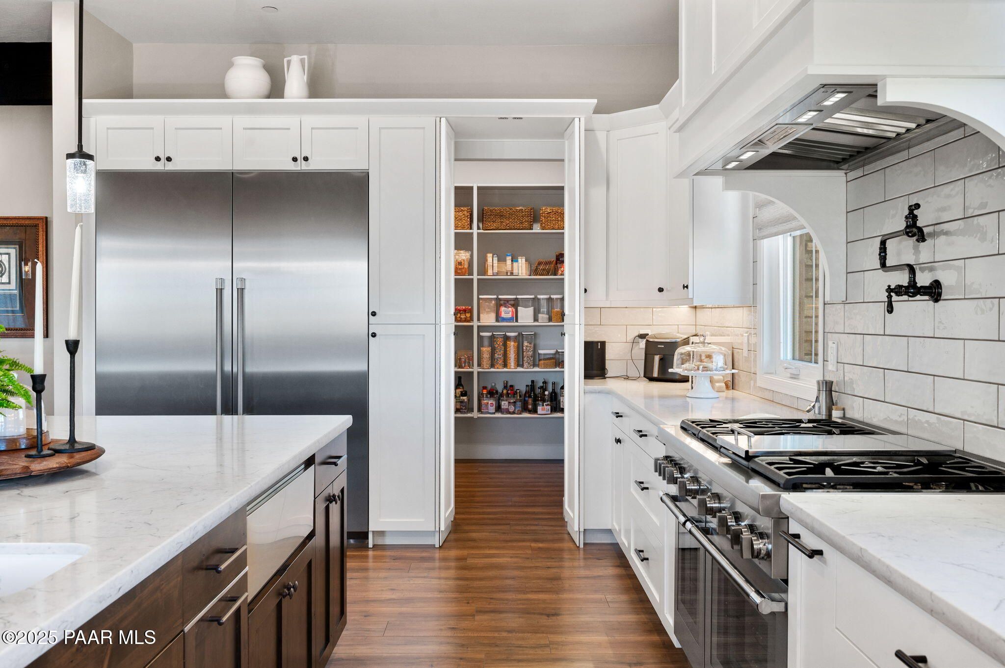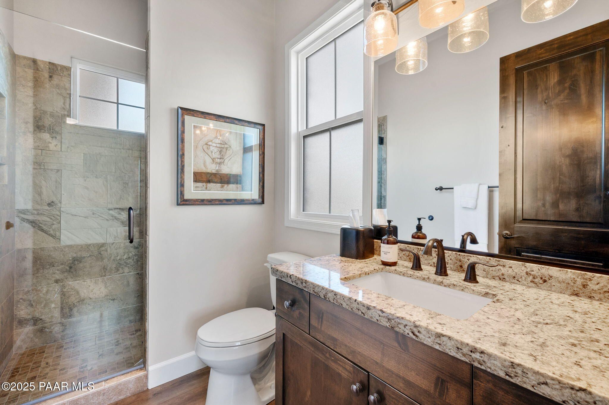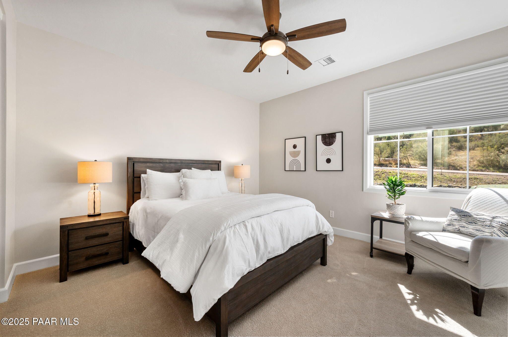 An extraordinary opportunity awaits to own one of the most captivating custom homes in the prestigious gated enclave of The Estates at Prescott Lakes - where luxury living meets the heart of one of Prescott's most vibrant communities. Set on 1.5 acres along the golf course, this 4455 SQFT estate blends timeless sophistication with modern comfort, offering not just a home, but a lifestyle defined by beauty, connection, and relaxation.Step inside and experience a home designed for both grand entertaining and quiet moments. With five spacious bedrooms, including two private ensuites, there's room for guests, family or multigenerational living. The chef's kitchen is the centerpiece, showcasing professional-grade Thermador appliances, a statement island with warming drawer, and a sleek bar/serving area with refrigerator drawers and wine cooler perfect for gatherings that stretch into golden Arizona evenings.A versatile recreation room opens to a deck with unbelievable panoramic views and offers endless possibilities - perfect for a billiards table, casual lounge, or home gym.Outside, the resort inspired backyard brings outdoor living to life. Enjoy a true Arizona retreat - listen to your favorite music, watch the big game, or gather around the firepit with friends and family. Fire up the built-in BBQ and dine al fresco in multiple seating areas overlooking lush golf course scenery - crafted for the ultimate blend of comfort, entertainment, and relaxation.The oversized three car garage provides ample space for vehicles and exceptional storage, plus dedicated golf cart and RV hookups.Homes like this are rare - discover a home that captures the essence of luxury, privacy, and comfort in the Estates at Prescott Lakes, where thoughtful design and refined living come together beautifully. As part of the exclusive Prescott Lakes Community, residents enjoy resort-style amenities including championship golf, fine dining, fitness, tennis, pickelball, and a vibrant social scene (membership is required) - all within minutes of historic downtown Prescott. This home is a true gem - Schedule your private showing today and make it yours before it's gone!