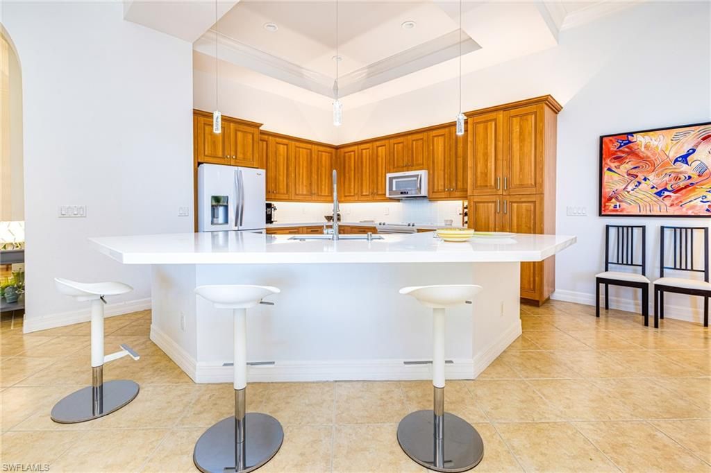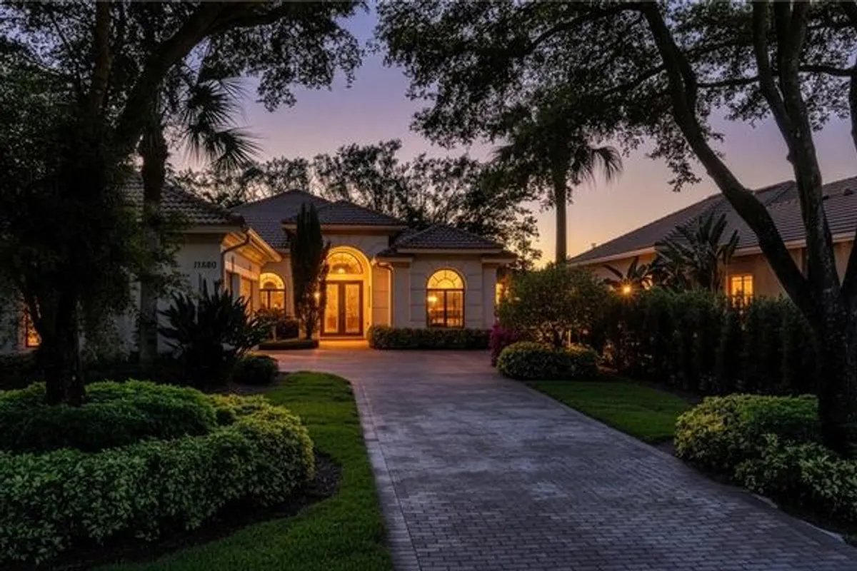 Tucked away on a quiet, low-traffic street, this former Florida Bay model home offers a rare opportunity to own a residence that blends architectural presence, extensive upgrades, and an exceptional natural setting. Nestled into the preserve with no neighboring residence to the south, the home enjoys remarkable privacy and tranquil lake views framed by breathtaking southwestern sunsets. A long driveway and wide footprint enhance the sense of arrival, while soaring ceilings, expansive rooms, and an open-concept design make the home ideal for both everyday living and entertaining. The interior features three spacious bedrooms plus a den and three full baths, with a well-appointed kitchen showcasing thick quartz countertops, 42-inch shaker-style cabinetry, an under-mount sink, Whirlpool Gold Series appliances, and abundant storage, all flowing seamlessly into the main living areas. Ten-foot sliders, including pocketing sliders in the family room, fill the home with natural light and open to the outdoor living space, while the primary suite offers a true retreat with wide-plank hand-scraped wood flooring, custom closets, and elegant French doors. Outdoor living is highlighted by a pool and spa with a custom rock waterfall, a high-efficiency AquaCal pool heater and pump, and an AquaLink control system, creating the perfect backdrop for sunset gatherings or quiet evenings overlooking the lake and preserve. Notable upgrades include impact windows on the front of the home, a newer roof, a dual-zone Carrier Greenspeed air-conditioning system with multiple thermostats, a hybrid water heater that also cools the garage, whole-house LED lighting, a Halo5 whole-home water purification system, and an oversized three-car garage with hurricane-rated doors, all located on a small street and located on the same power grid as Germain Arena and Hertz Arena, offering an added layer of power reliability during storms. For those seeking a vibrant and enriching lifestyle, optional memberships expand the experience far beyond the home. Grandezza takes resort-style living to the next level with its championship 18-hole golf course, six Har-Tru tennis courts, fitness center, resort-style pool with cabana bar and grill, and multiple dining venues ranging from casual to fine dining—all within a beautifully maintained gated community. Golf memberships are available but not required. Ideally located near Miromar Outlets, Hertz Arena, Gulf Coast Town Center, RSW Airport, and just a short drive to the beaches of Bonita Springs and Naples, this home truly puts you in the heart of it all. Schedule your private tour today and discover why life at Grandezza is the perfect balance of sophistication, convenience, and fun in the sun.