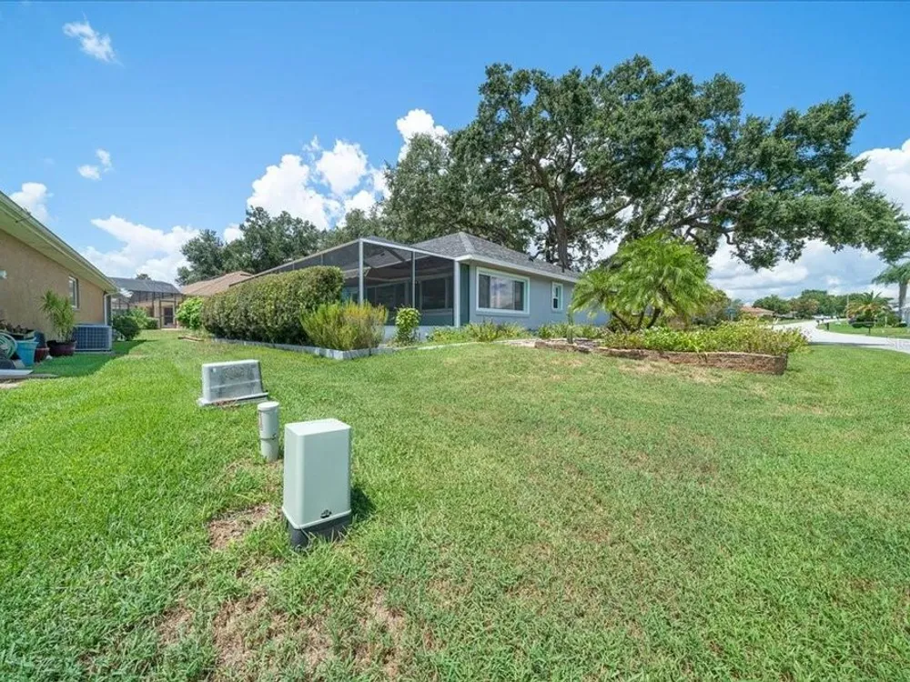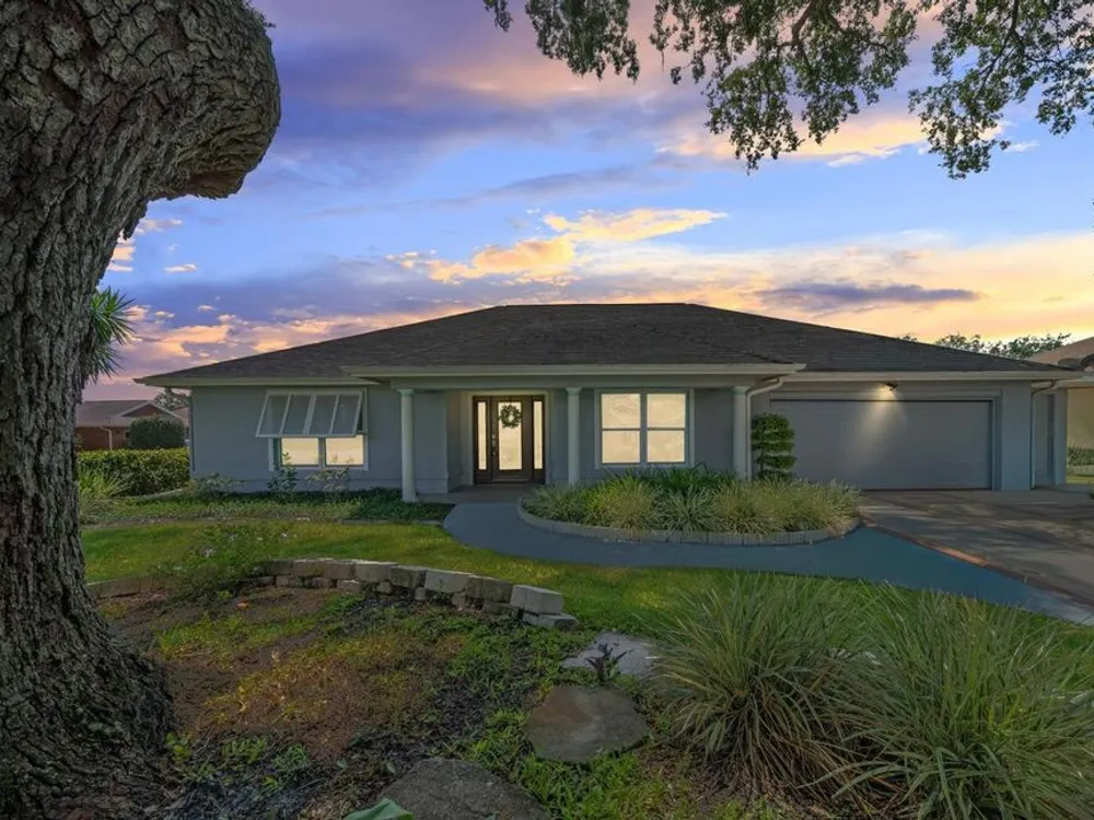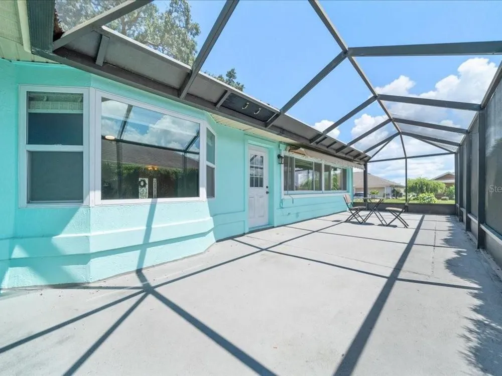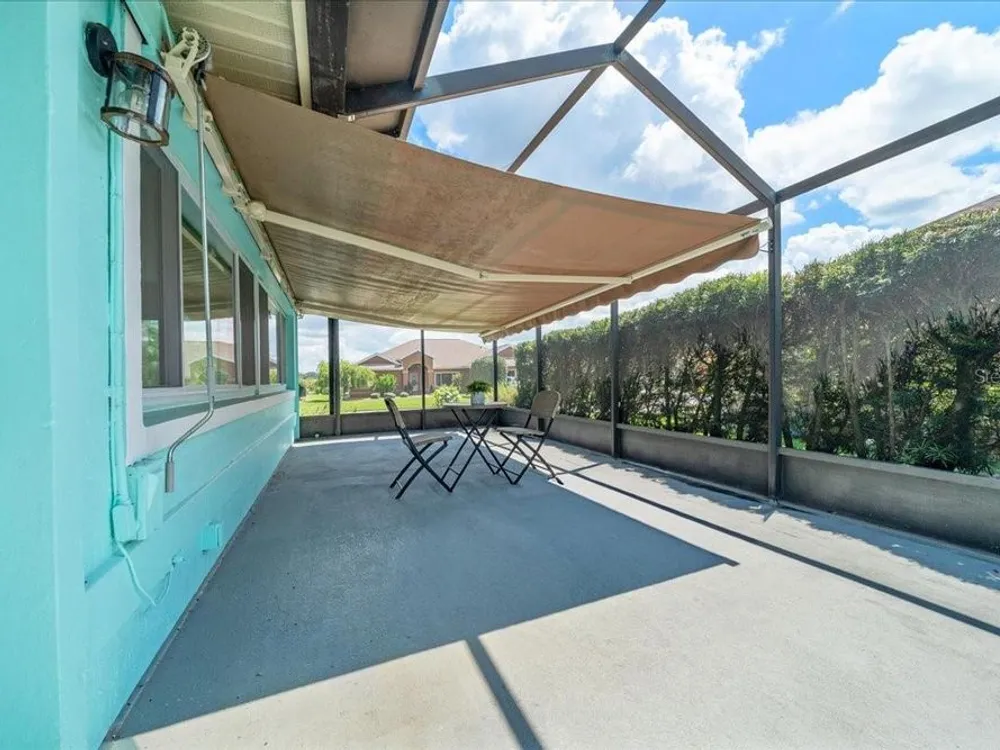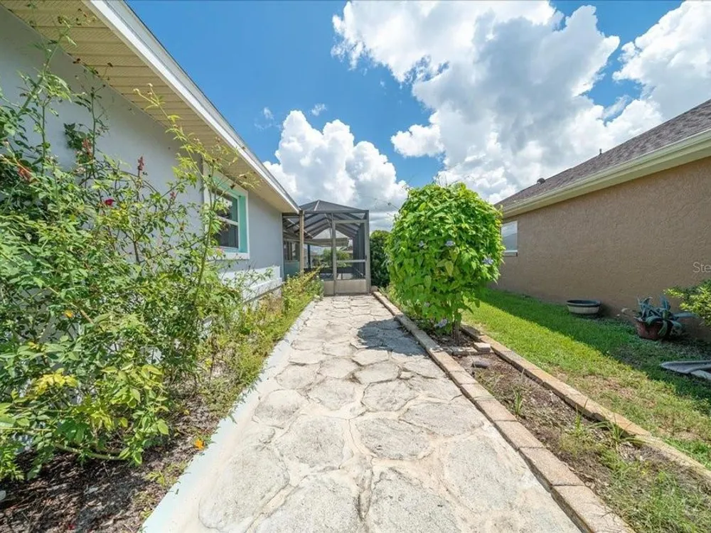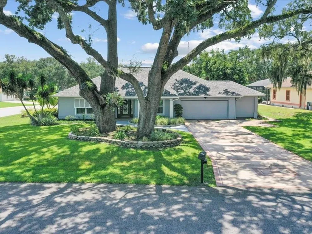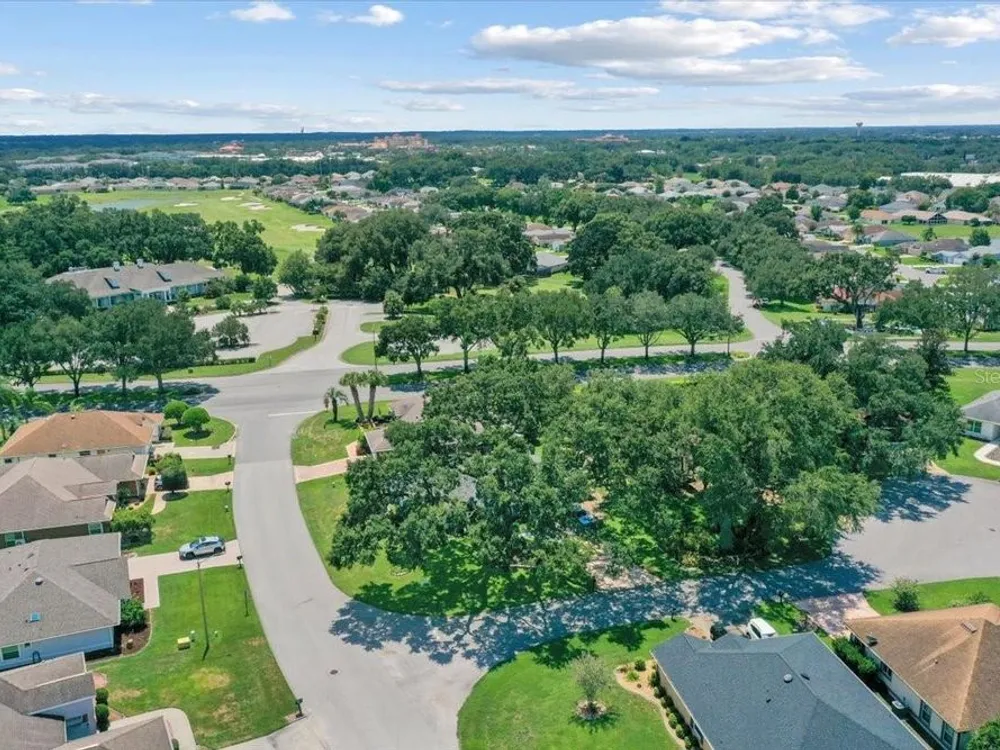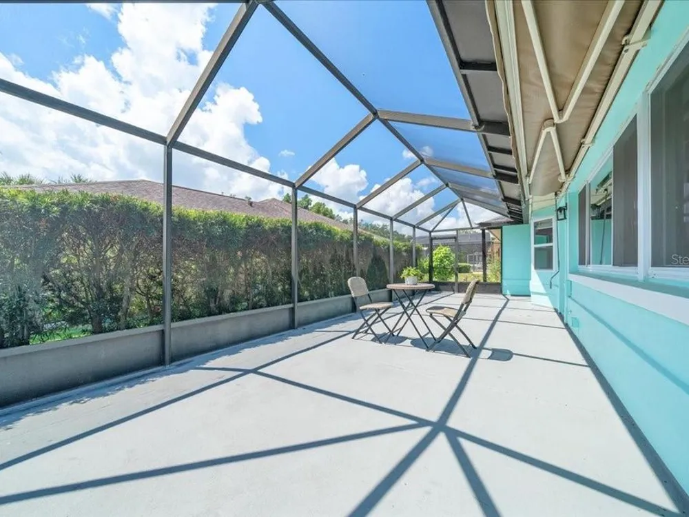 One or more photo(s) has been virtually staged. Beautifully maintained block and stucco home with 1,700 sq ft in the 55+ gated community of Stonecrest, convenient golf cart ride to The Villages, shopping, and medical. Recently PAINTED (2025) inside and out, this well cared for home sits on a shaded CORNER LOT lot with a majestic oak trees, complete with beautiful flowers and garden beds to enjoy. HIGH CEILINGS, openness throughout, and tile and WATER PROOF LUXURY VINYL PLANK flooring will greet you as you enter the home. Updates include a newer roof, upgraded windows, garage door (2019), and appliances (2020). The kitchen features updated cabinets, a tasteful backsplash, a HURRICAN-RATED SKYLIGHT that fills the space with light, and overlooks a serene garden retreat. The versatile OFFICE/CRAFT ROOM offers abundant cabinetry plus 2 closets. The dining room is complete with a BAY WINDOW, and there are 5 UPGRADED FANS/ LIGHTS throughout the home. Both bedrooms have en-suite baths; the primary includes a walk-in and linen closet. Enjoy the enclosed SUN ROOM with heating/cooling, a screened patio with a large ELECTRIC AWNING (2020), and a separate cooled golf cart garage/workshop with storage and the ATTIC offers a fan and additional storage. Wired for a generator and complete with a WATER FILTRATION SYSTEM—this home blends comfort, upgrades, and peace of mind. ROOF December, 2023, HW 2023, HVAC 2007. Start enjoying the pools, dances, clubs, pickleball, and amenities this neighborhood has to offer! Schedule your tour today!