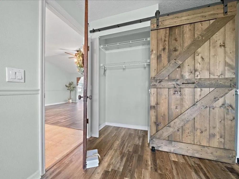 - Built-in Features, Ceiling Fan(s), Living/Dining Room, Open Floorplan, Main Level Primary, Solid-Wood Cabinets, Split Bedrooms, Thermostat, Vaulted Ceiling(s), Walk-In Closet(s)