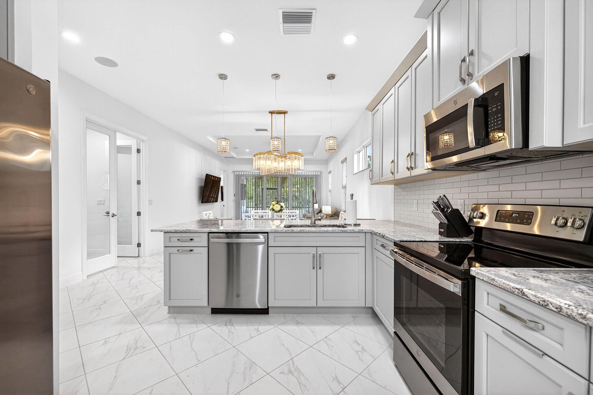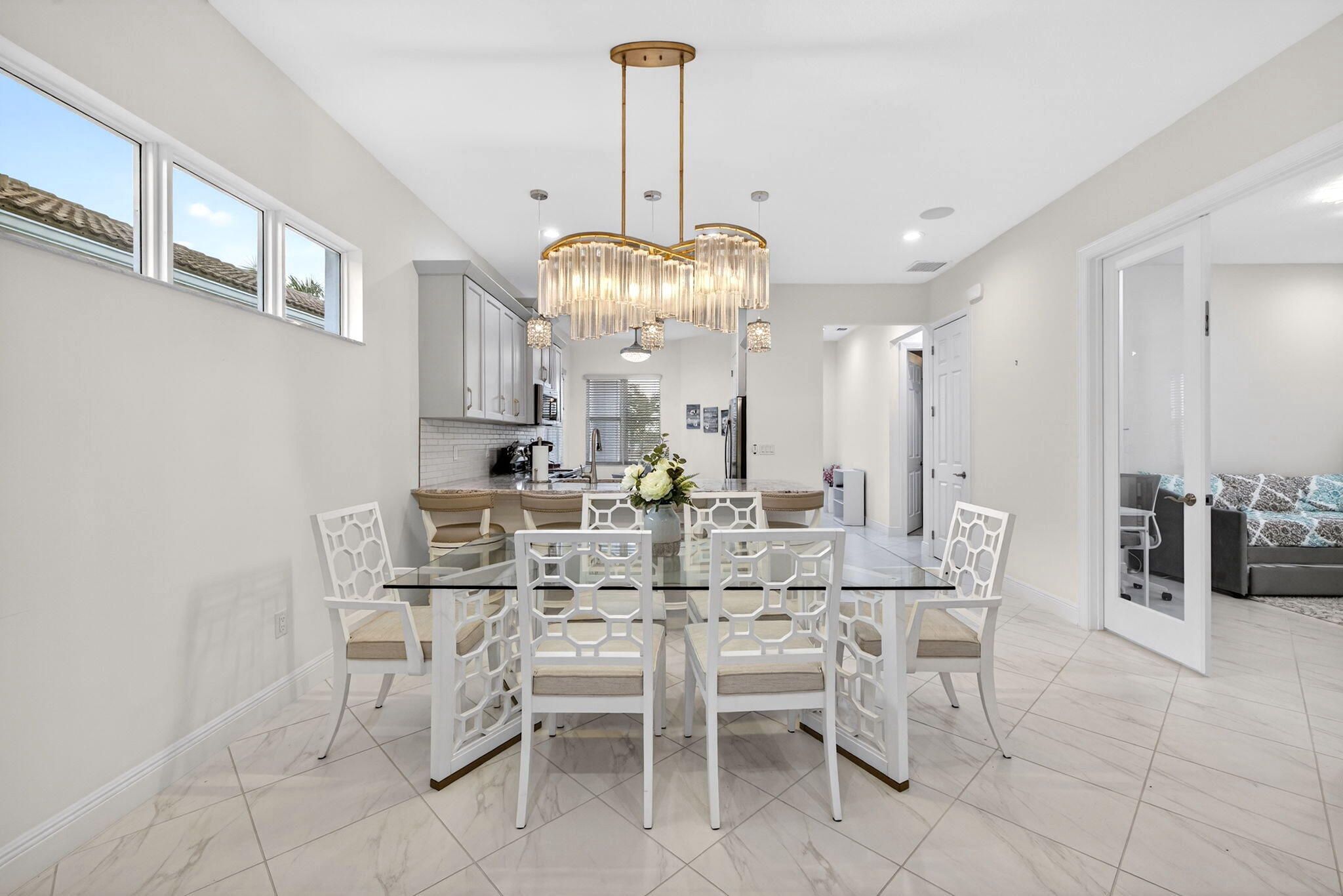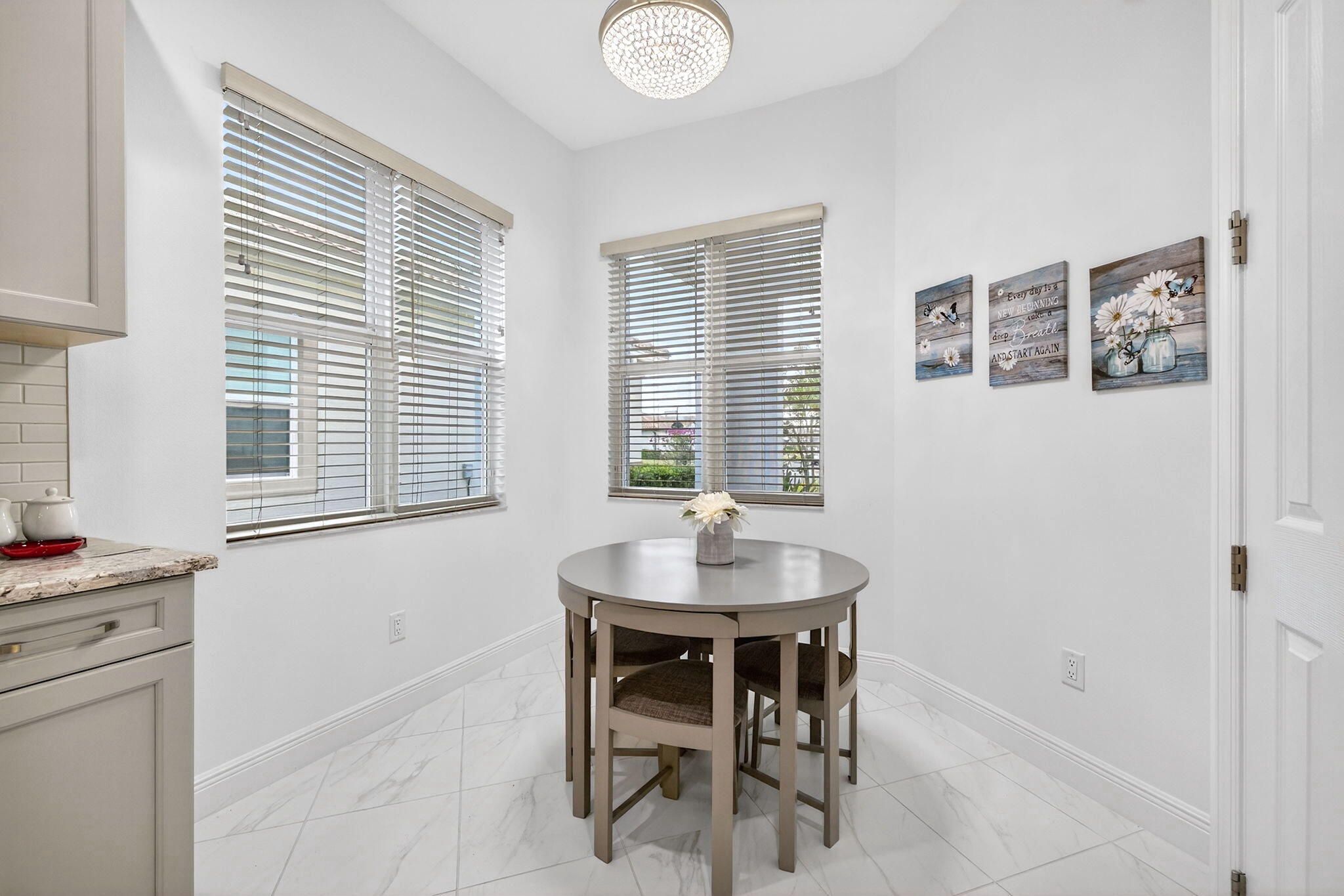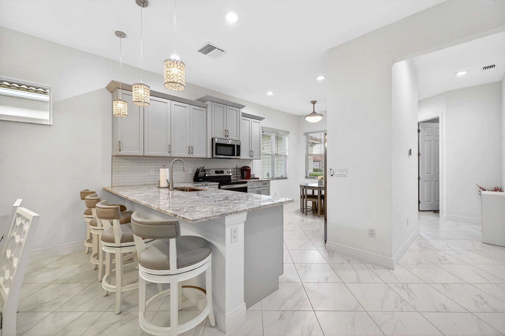 - Entrance Foyer, Pantry, Walk-In Closet(s), Impact Glass, Breakfast Area, Living/Dining Room, Eat-in Kitchen, Snack Bar, Dual Sinks, Main Level Primary, Separate Shower