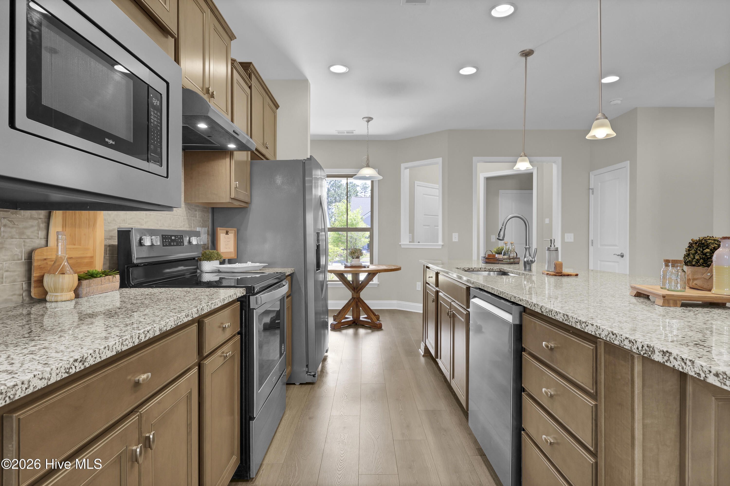 Looking for a home with access to resort-style amenities? You've just found it!! This beautifully renovated 2 bed, 2 bath home in the sought after 55+ community of Del Webb in Riverlights offers many desirable features including a welcoming foyer with recessed lighting, an open and spacious living/dining area as well as an airy sunroom, a split bedroom plan and much more! Upon entering, you will appreciate the modern open floor plan with 9 ft. ceilings and beautiful new laminate floors! Enjoy dining in the open dining area, in the breakfast nook or at the massive kitchen island! The kitchen features stainless appliances and stylish cabinetry with granite counter tops! Also, there's plush new carpet, fresh paint and much more throughout! The primary suite includes a walk-in closet and a roomy primary bath with a dual sink vanity and granite top and an attractive custom tiled walk-in shower with glass door! The laundry room includes a washer and dryer that will remain. Plus, there's a rear patio, an irrigation system and a two car garage! This one is move-in ready and priced to sell! Set up your own private showing today!