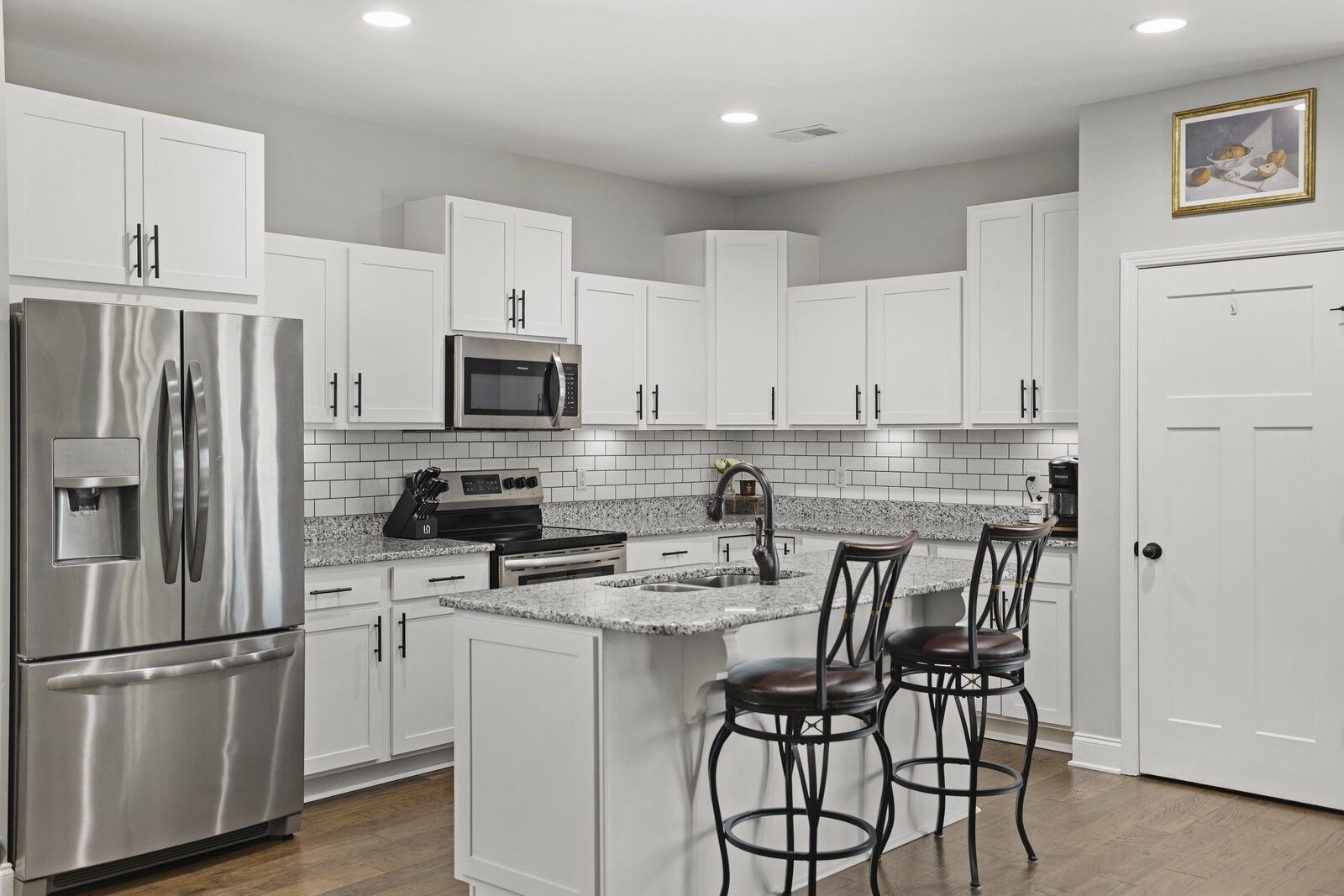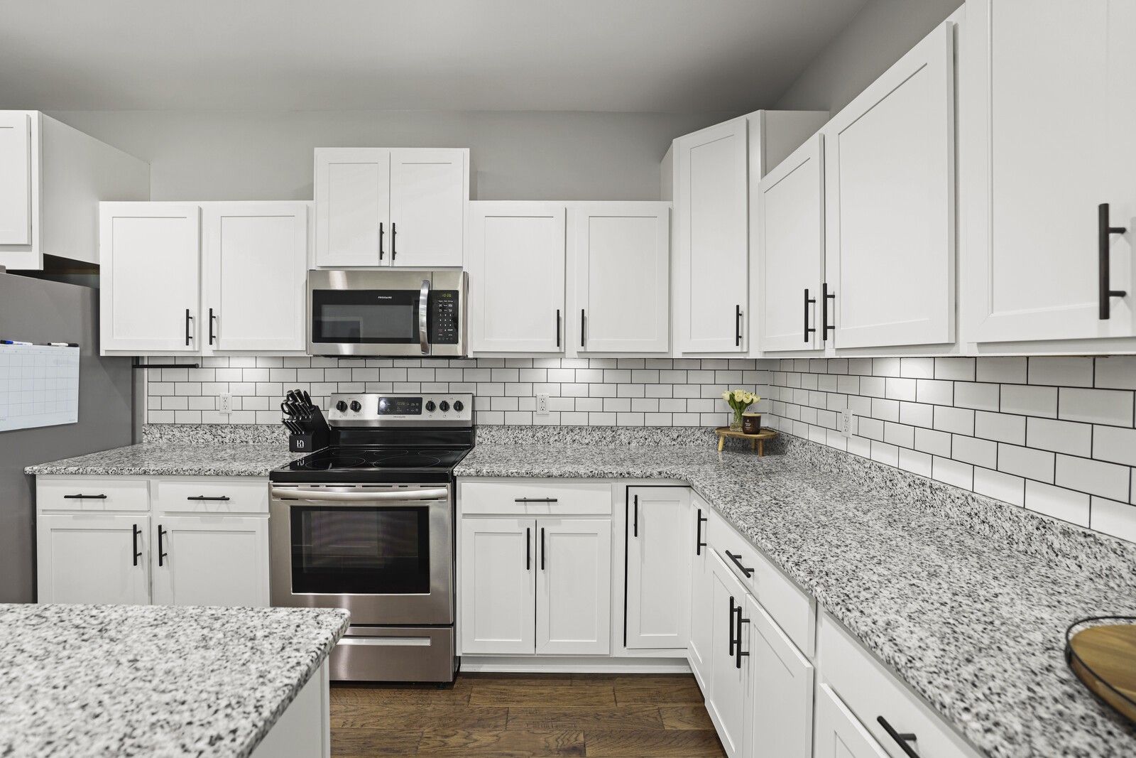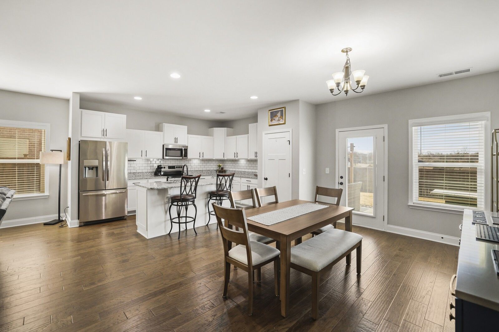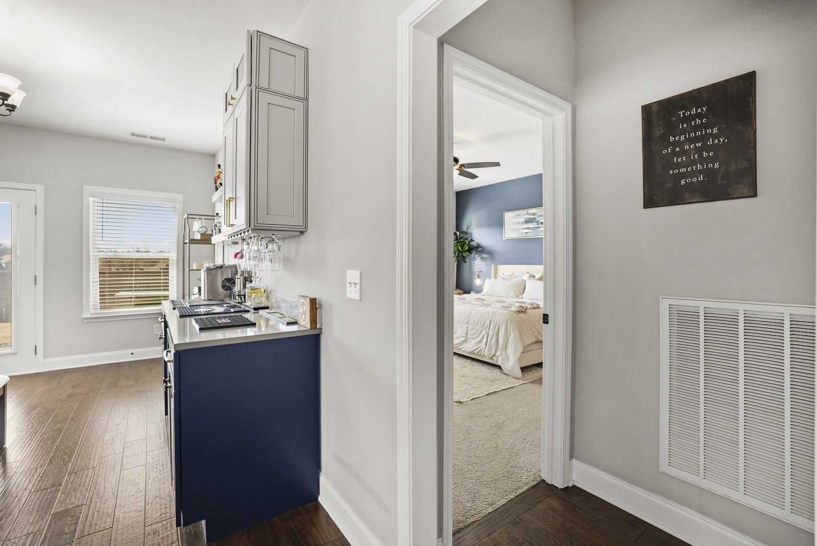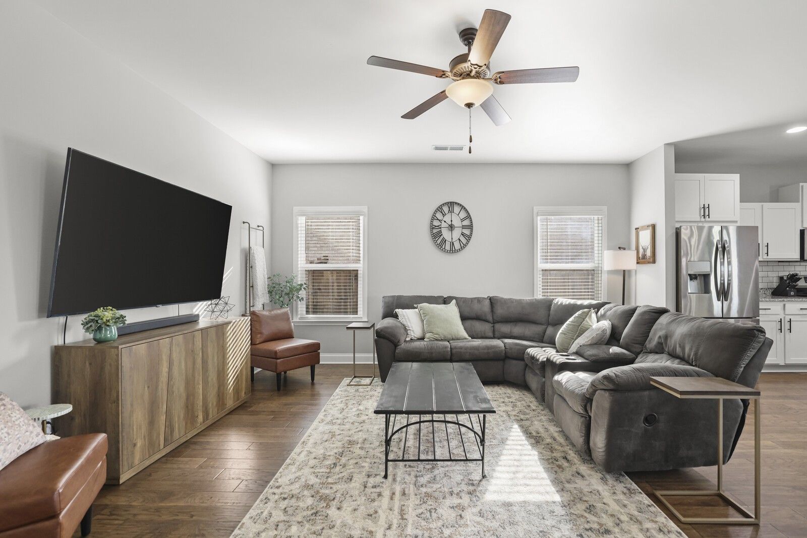This charming 3-bedroom, 2.5-bath brick home in Gallatin offers 1,785 square feet of well-designed living space with a layout that blends comfort, style, and functionality. From the entry, two guest bedrooms are positioned at the front of the home and share a full hallway bathroom, creating a convenient and private arrangement for family or guests. The heart of the home features an open-concept living area that flows seamlessly into the kitchen and dining spaces. The modern kitchen showcases white cabinetry, granite countertops, stainless steel appliances, and an island with seating, while the attached dining area includes a built-in bar, perfect for entertaining. The spacious primary suite offers a navy accent wall and a private en-suite bathroom complete with a dual vanity, soaking tub, and separate shower. Step outside to enjoy a fully fenced backyard with a patio designed for gatherings, featuring an outdoor kitchen area ideal for grilling and hosting. An attached two-car garage adds everyday convenience, while the classic brick exterior provides timeless curb appeal. A wonderful opportunity to enjoy modern living with great outdoor space in a desirable Gallatin location.