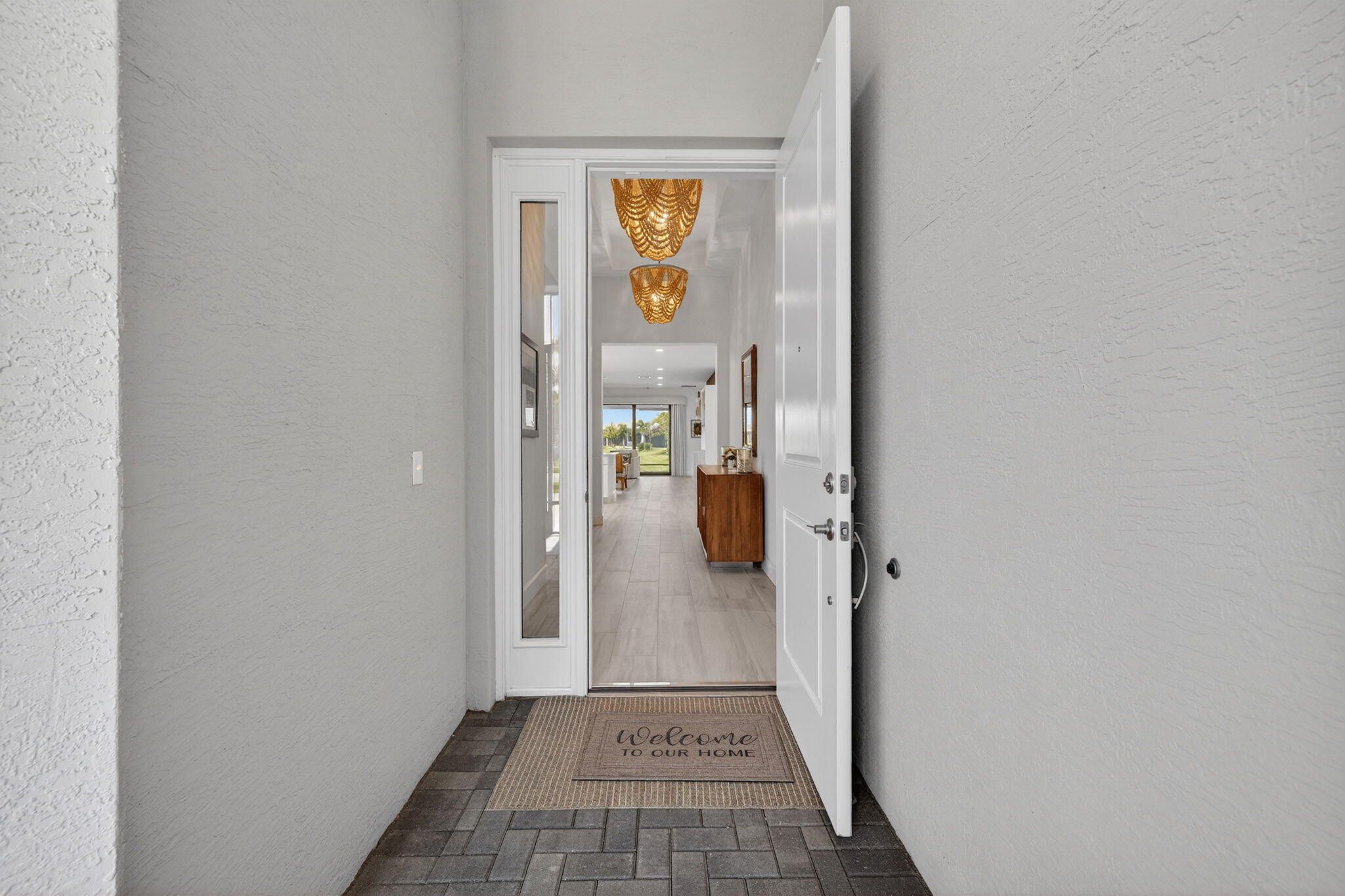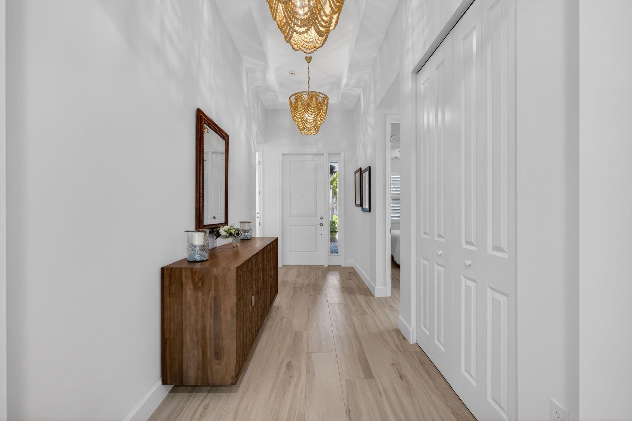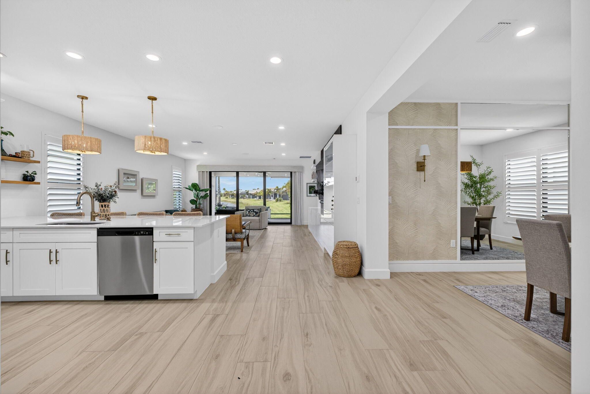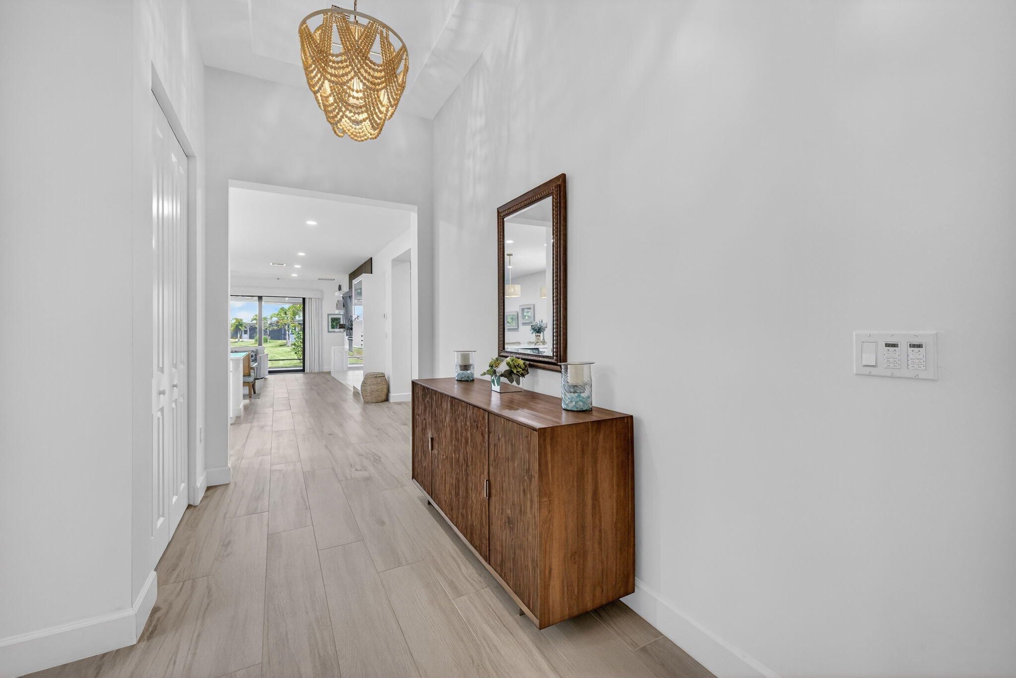 TRIBECA MODEL IN VALENCIA WALK WITH 4TH BEDROOM 3RD BATH OPTION UPGRADE Beautifully designer upgraded Tribeca model in Valencia Walk with stunning lakefront views. This 4BR/3BA home features porcelain plank flooring in the main living areas, an upgraded kitchen, custom lighting with chandeliers and wall sconces, updated baths, and custom closets. Enjoy Florida living on the screened in patio with a custom summer kitchen. This is a rare opportunity to own one of the most magnificently upgraded Tribeca models in any Valencia community, offering style, comfort, and exceptional indoor outdoor living. Discover elevated lakefront living in this beautifully appointed Tribeca model located in the sought after community of Valencia Walk. Just UNDER 3 years new, this 4 bedroom, 3 bath home showcases a thoughtful blend of designer upgrades and modern comfort, creating a warm and sophisticated living experience. Step inside to an open, light filled layout enhanced by designer lighting, custom finishes, and a seamless flow ideal for both everyday living and entertaining. The upgraded kitchen features enhanced cabinetry, a cabinet pantry with pull outs, and a clean, contemporary aesthetic that anchors the heart of the home. The great room is elevated with custom built ins, adding both style and functionality, while Bedroom 3 also features a beautifully crafted built in, perfect for guests or a flexible workspace. Retreat outdoors to your private lakefront oasis, where a screened in patio and custom summer kitchen set the stage for effortless Florida living. Whether hosting gatherings or enjoying quiet evenings by the water, this space captures the essence of the Riverland lifestyle. With its modern upgrades, thoughtful design, and prime location, this Tribeca model offers a rare opportunity to enjoy a move in ready home in one of Port St. Lucie's most desirable 55+ communities.