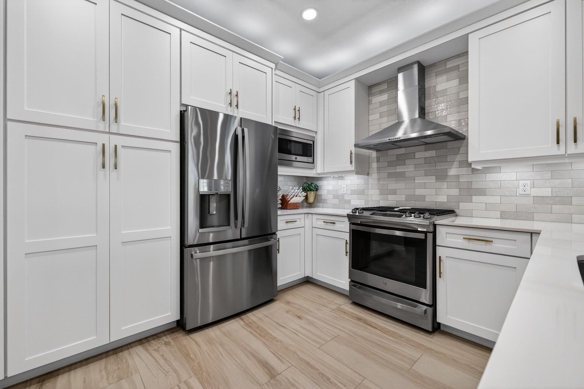 - Gas Water Heater, Dryer, Disposal, Dishwasher, Gas Range, Microwave, Refrigerator, Water Heater, Washer, Range