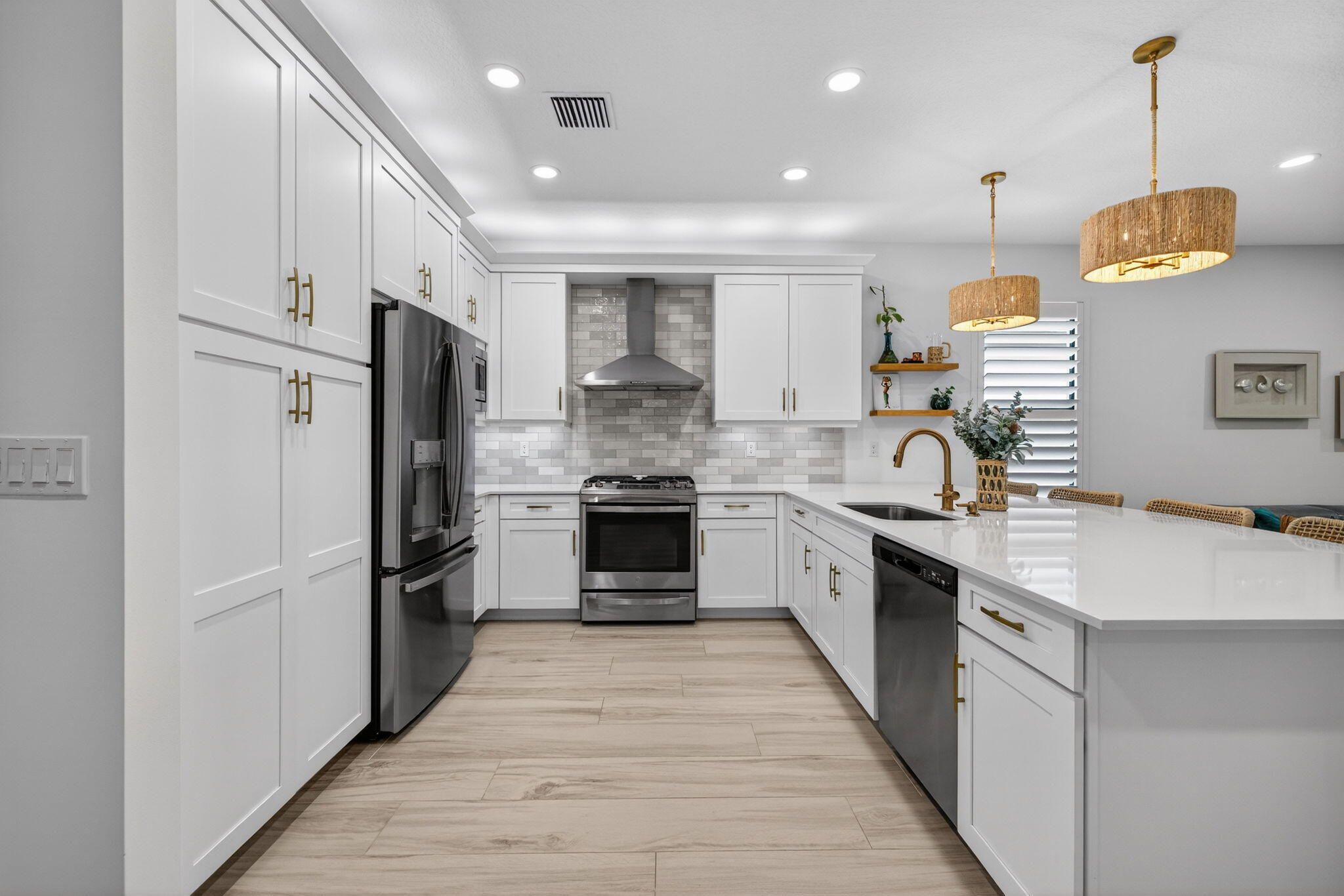 - Built-in Features, High Ceilings, Pantry, Walk-In Closet(s), Split Bedrooms, Closet Cabinetry, Pull Down Attic Stairs, Impact Glass, Eat-in Kitchen, Separate/Formal Dining Room, Entry Level Living Area, Dual Sinks, Main Level Primary, Separate Shower
