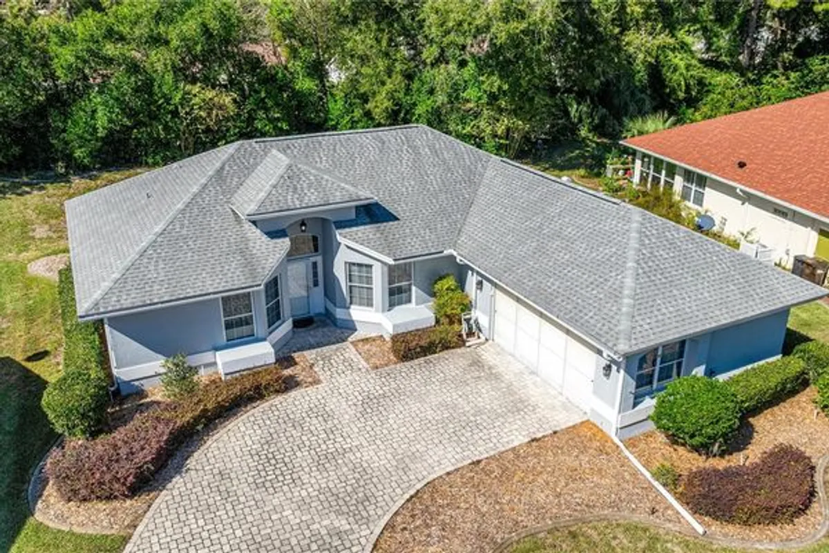 One or more photo(s) has been virtually staged. Welcome to The Preserve at Oak Run, where resort style living meets modern elegance and everyday comfort. This beautifully updated CAPRI model is perfectly positioned with no rear neighbors, offering privacy, charm, and a wide brick paver driveway leading to a side load 2 car garage that enhances its curb appeal. Step inside and experience a bright, open layout filled with natural light. Featuring cathedral ceilings, tile flooring throughout, fresh paint, and new blinds, the home feels crisp, inviting, and move in ready. The chef inspired kitchen showcases granite countertops, tile backsplash, upgraded cabinetry, recessed lighting, and a cozy breakfast nook ideal for your morning coffee. Every detail has been thoughtfully updated, blending comfort with modern design. Enjoy brand new stainless-steel appliances (2024), a whole-home water filtration system (2024), new washer and dryer, stylish lighting throughout, and a fully remodeled guest bath. The primary suite is your private retreat, featuring a walk in closet, soaking tub, separate shower, and a decorative glass block window that adds timeless charm. Relax and entertain in the fully enclosed lanai or on the oversized 28’x20’ screened patio, perfect for gatherings or a future spa or pool addition. Additional highlights include a home wide speaker system, garage screen doors, concrete curbing, ample attic storage, and a beautifully redone, low maintenance yard. With a roof and HVAC replaced in 2018, this home offers both style and peace of mind. Enjoy low maintenance living in Oak Run’s premier 55+ gated community, featuring six pools, five spas, an 18 hole golf course, clubhouse, restaurant, pickleball, tennis, dog park, and 24/7 Envera security. A perfect blend of luxury, comfort, and resort style amenities your Florida dream home awaits!