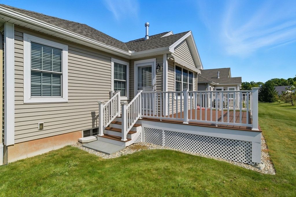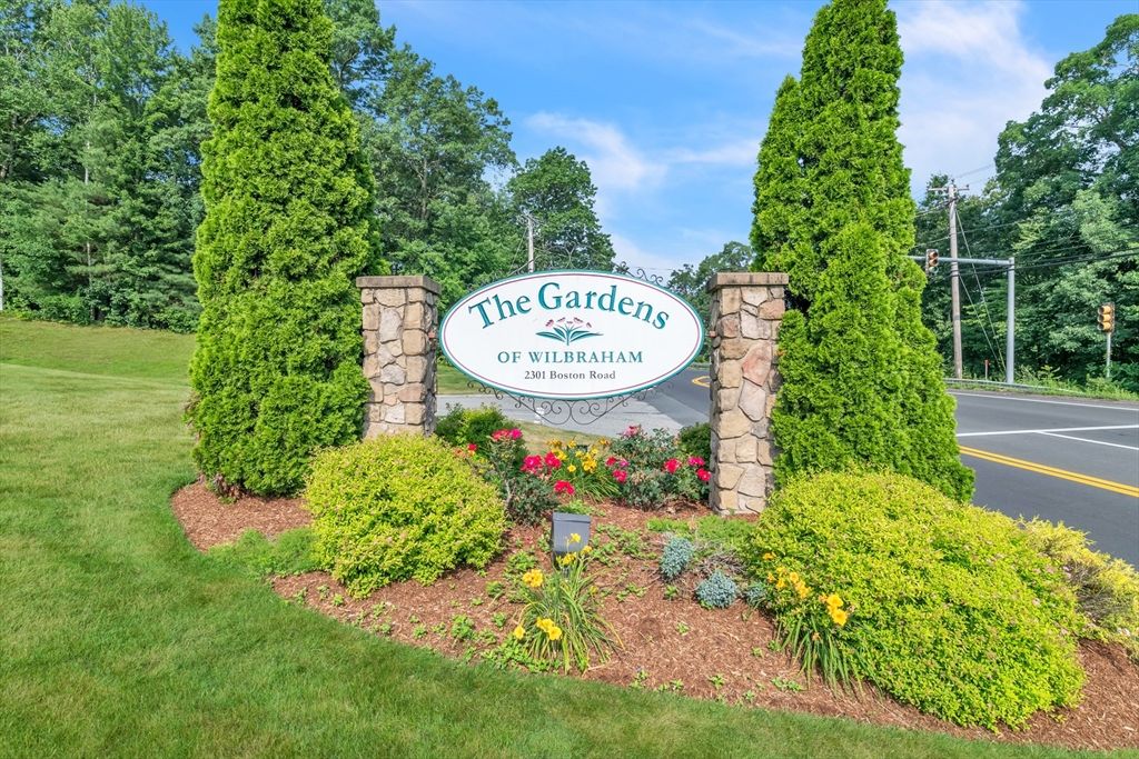 MAINTENANCE FREE LIFESTYLE AWAITS! Step into this beautiful FREE STANDING single floor living condo in The Gardens of Wilbraham, the area’s premier 55+ community. The sun filled living room offers vaulted ceilings, recessed lighting & a gas fireplace. The modern kitchen includes granite countertops, stainless steel appliances and a breakfast bar. The adjoining dining area is ideal for gatherings.The main bedroom features a tray ceiling, a full bath w/ double vanity, a stand-up shower, & a walk-in closet. The spacious second bedroom has a large closet and wall to wall carpet, adjacent is the linen closet & a second full bathroom. All season sunroom surrounded by windows extends your living space, & the large deck with Trex flooring & awning provides a perfect spot to enjoy the outdoors.The front porch & two-car garage add to the home’s appeal, w/ first floor laundry & GENERAC generator. Enjoy the resort style CLUBHOUSE w/ a fitness center, library, great room and an outdoor pool.