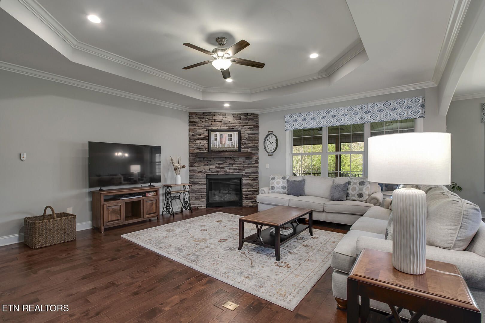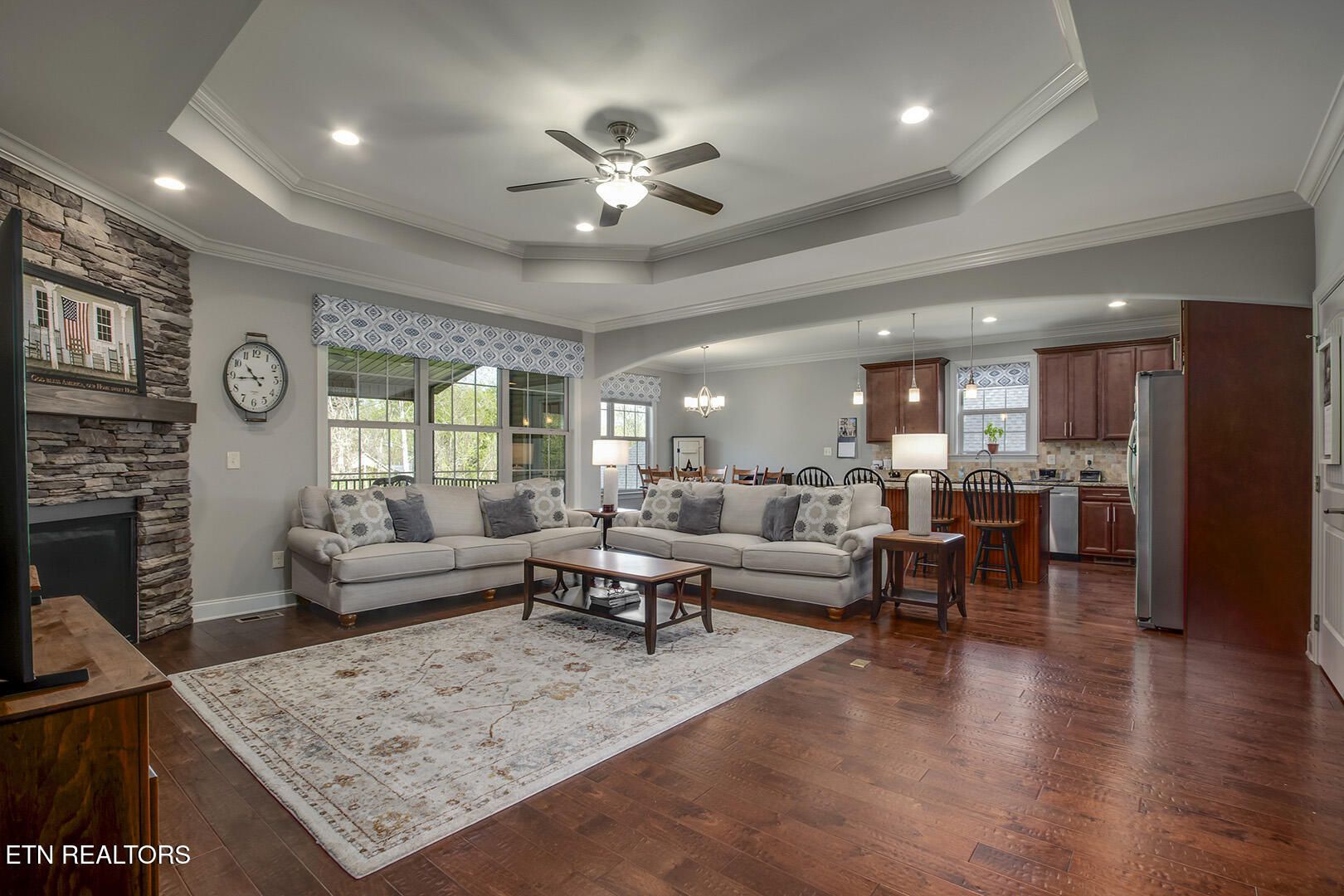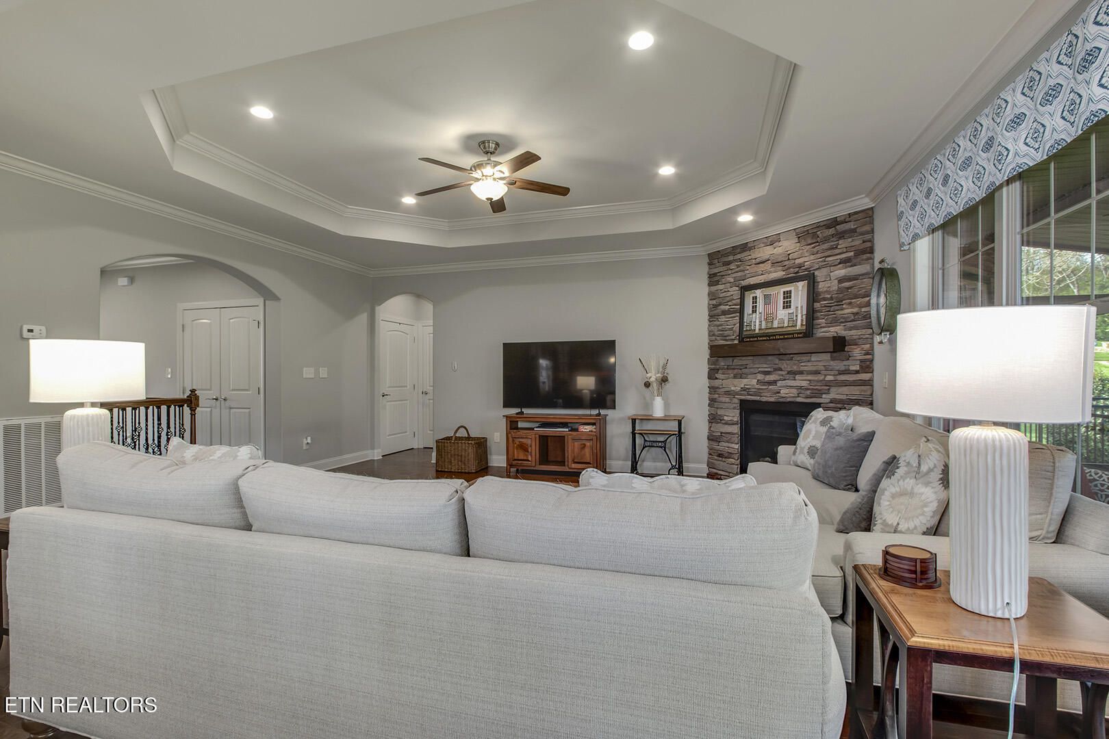 We are pleased to share the details of this elegant basement rancher, built in 2016 and meticulously maintained. Offering over 2,800 square feet of living space, the home features an open floor plan with four bedrooms and three full baths. The main level includes a primary suite with trayed ceilings, a tiled shower, a jet tub, and direct access to a screened deck. A front bedroom with French doors offers versatility as a home office. The living area is highlighted by engineered flooring, arched door openings, and a floor-to-ceiling stone fireplace. The kitchen is well-appointed with granite countertops, stainless steel appliances, and a pantry. The finished lower level serves as an ideal second living area or guest suite, featuring a large bedroom, full bath, wet bar, and space for a game room. Additionally, a semi-finished area provides ample space for storage, a craft room, or an exercise room, complete with built-in shelving and a work table. Recent upgrades include: - New stove/range (2023) - New garage door openers (2023) - New HVAC unit/cooling coils (2025) - New carpeting (2025) Exterior highlights include a professionally maintained yard, a slate tile front porch, and a maintenance-free screened deck with composite boards and aluminum railing overlooking a private backyard. The home also features three HVAC zones, custom closet shelving throughout, an EV charger in the garage, and an installed radon mitigation system. Please let me know if you would like to schedule a viewing or require further information.