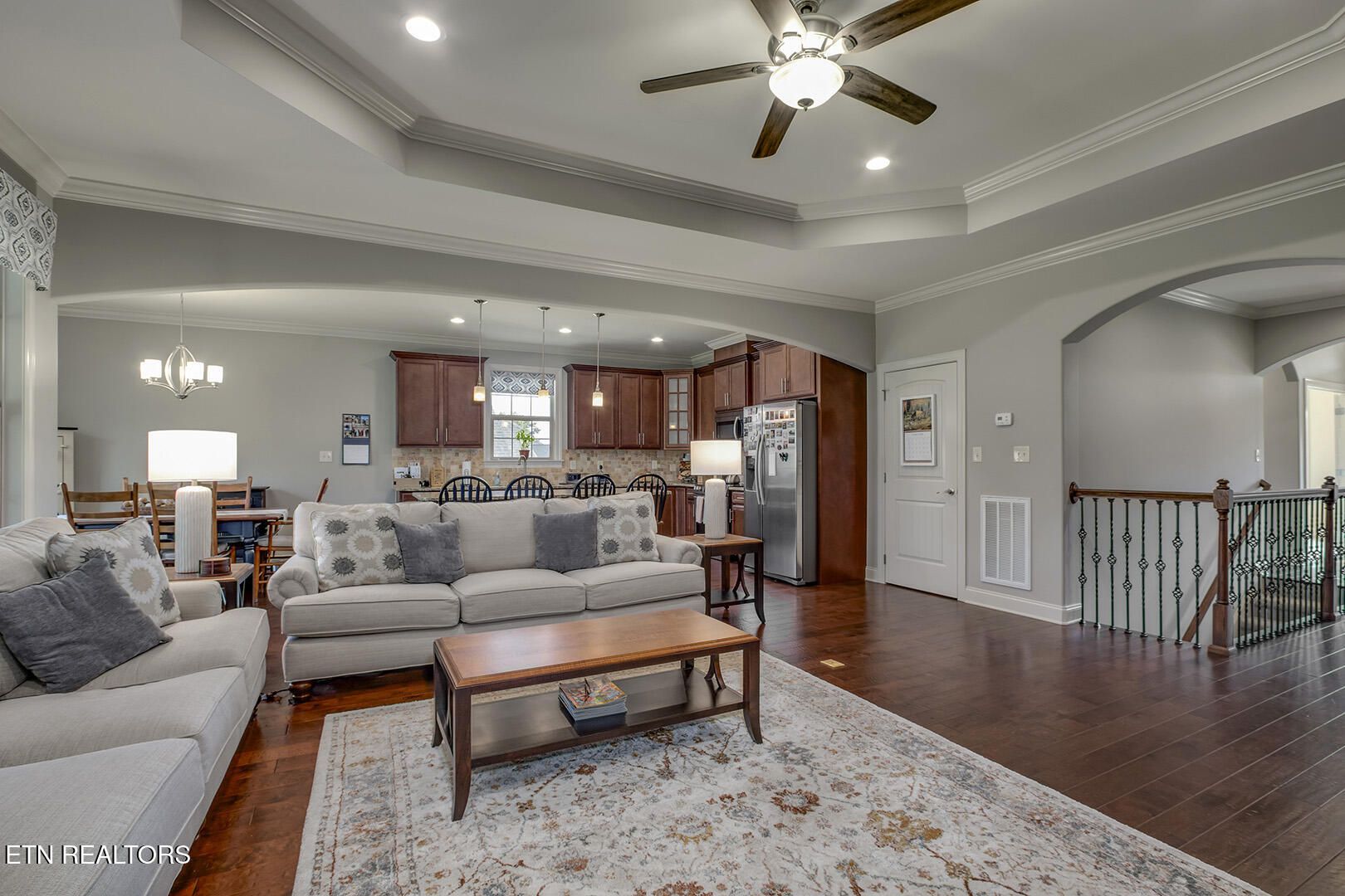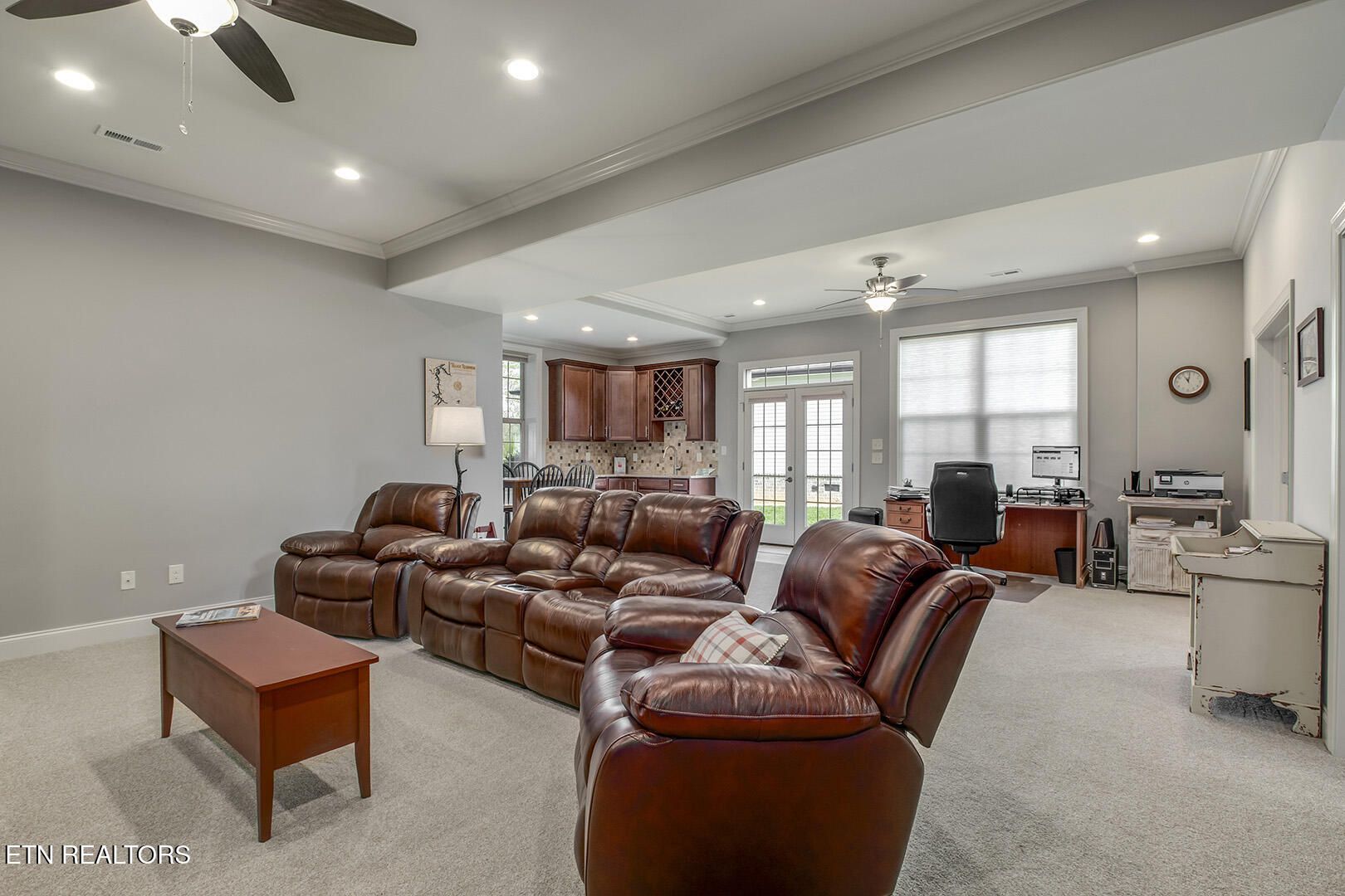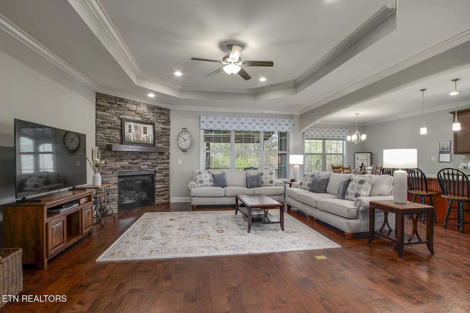We are pleased to share the details of this elegant basement rancher, built in 2016 and meticulously maintained. Offering over 2,800 square feet of living space, the home features an open floor plan with four bedrooms and three full baths. The main level includes a primary suite with trayed ceilings, a tiled shower, a jet tub, and direct access to a screened deck. A front bedroom with French doors offers versatility as a home office. The living area is highlighted by engineered flooring, arched door openings, and a floor-to-ceiling stone fireplace. The kitchen is well-appointed with granite countertops, stainless steel appliances, and a pantry. The finished lower level serves as an ideal second living area or guest suite, featuring a large bedroom, full bath, wet bar, and space for a game room. Additionally, a semi-finished area provides ample space for storage, a craft room, or an exercise room, complete with built-in shelving and a work table. Recent upgrades include: - New stove/range (2023) - New garage door openers (2023) - New HVAC unit/cooling coils (2025) - New carpeting (2025) Exterior highlights include a professionally maintained yard, a slate tile front porch, and a maintenance-free screened deck with composite boards and aluminum railing overlooking a private backyard. The home also features three HVAC zones, custom closet shelving throughout, an EV charger in the garage, and an installed radon mitigation system. Please let me know if you would like to schedule a viewing or require further information.