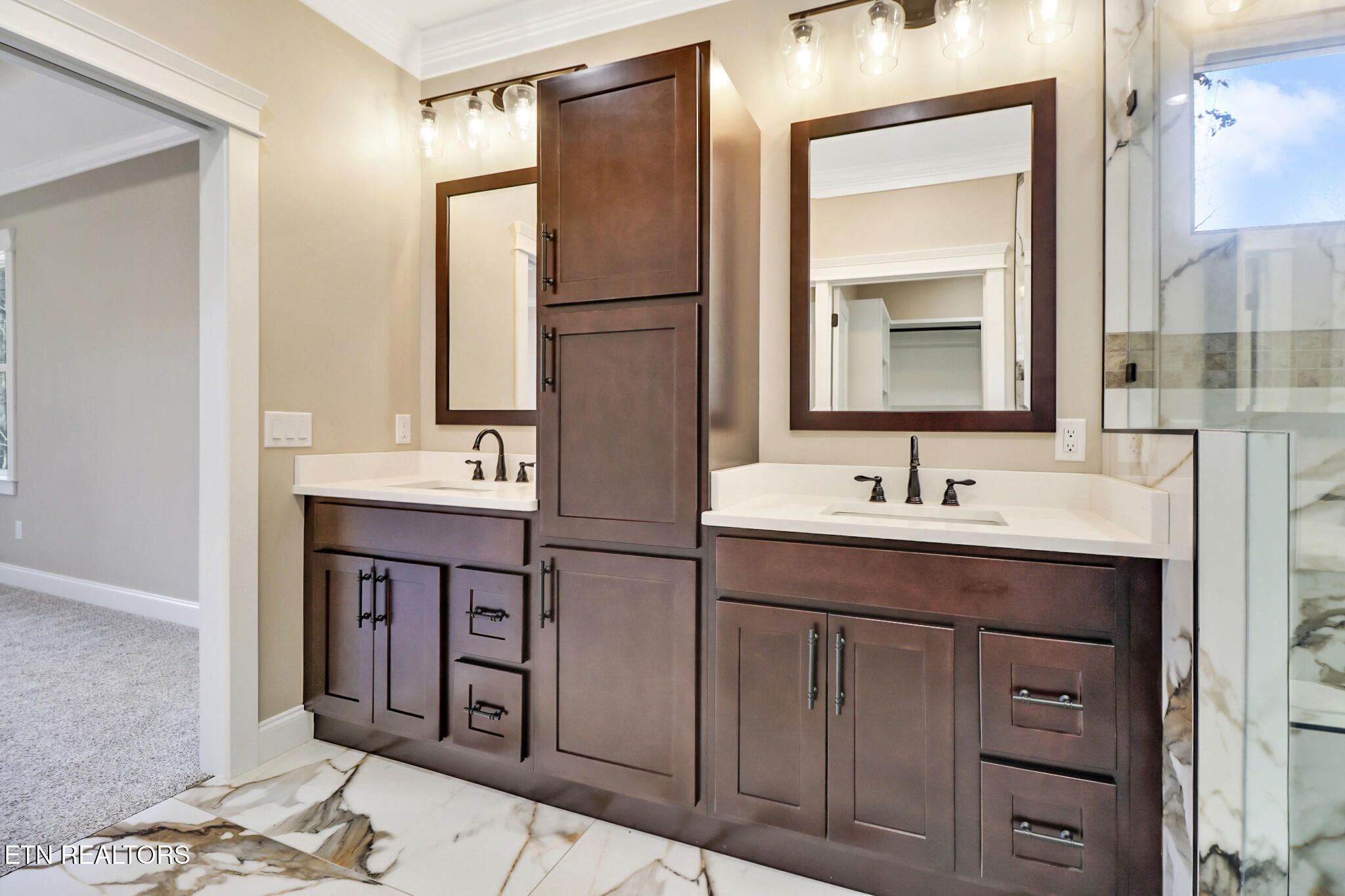 Thoughtful design and eye catching craftsmanship in every detail! Warm, neutral tones and an open floorplan welcome you into this custom brick home that is anything but cookie cutter. From the ledgestone gas fireplace to the endless custom built-ins and expansive windows, this new home has it all! Generously sized bedrooms with ample closets and a private office perfect for working from home or to use as a crafting space. Plenty of room to entertain friends when you're not enjoying the world-class amenities available in Fairfield Glade. With a professionally landscaped yard, large deck off your sitting room and an empty lot next door it makes your outdoor space for grilling or watching the wildlife that much more enjoyable. Low maintence living without substituting beauty; waterproof laminate, granite countertops throughout, Whirlpool appliance package, Trex decking, encapsulated crawl and tankless hot water heater to name but a few. With 1 year Builders Warranty what more could you ask for! Come see what resort style living is all about in Fairfield Glade!