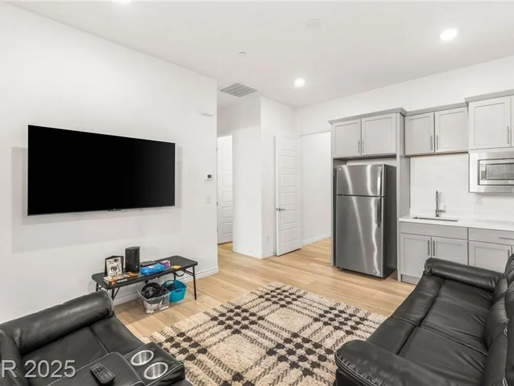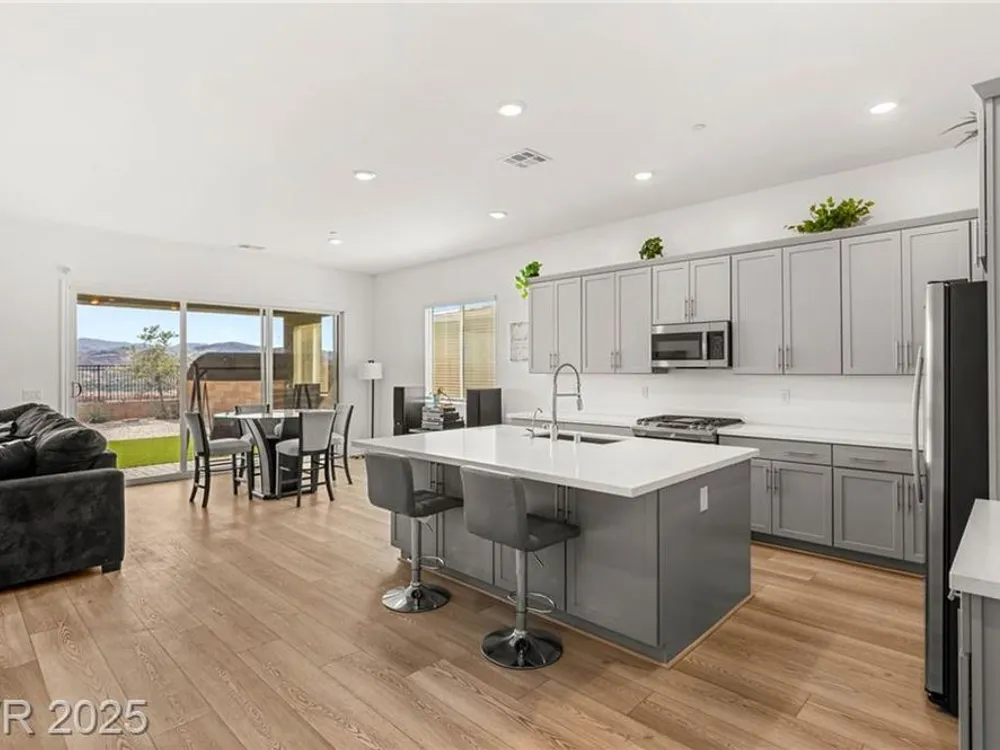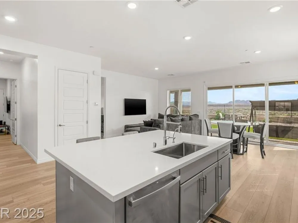 Highly upgraded, move-in ready modern single-story home in the gated Reverie at Lake Las Vegas! This home features 4 bedrooms and 3 baths, including a private Next Gen suite with its own entrance, garage, kitchenette, washer/dryer, and living space, perfect for guests, multi-generational living, or rental use. The open floor plan showcases luxury hardwood flooring throughout, and the backyard is ideal for relaxation or entertaining, with a fully paved patio, covered seating area, and scenic views with no rear neighbors. Located in the award-winning, 320-acre, golf-cart-friendly master-planned community of Lake Las Vegas, residents enjoy water sports, dining, shopping, and entertainment. Don’t miss this opportunity to experience the elevated lifestyle that Lake Las Vegas has to offer. Schedule your private tour today!