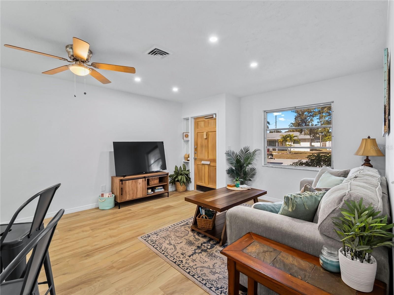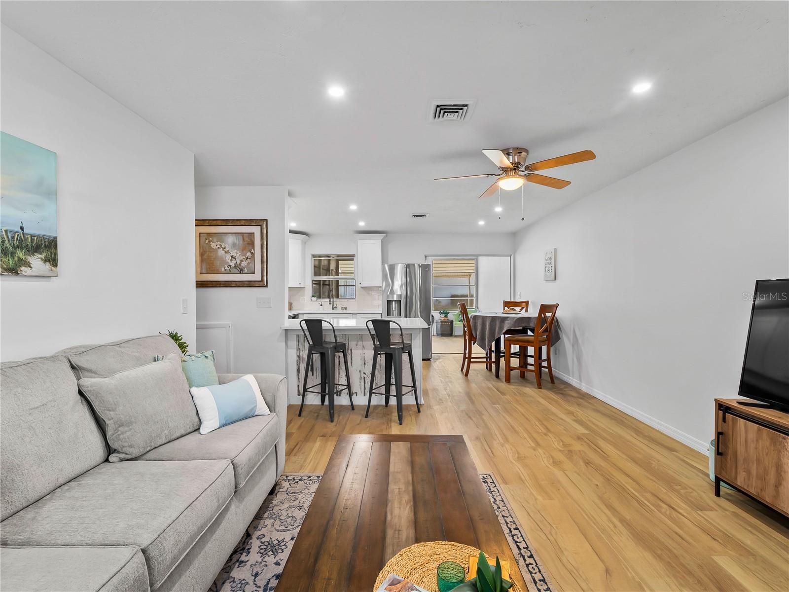Beautiful, Completely remolded as of January 23rd and new to the market in its current condition. Corner villa unit on the Island of Venice. All Luxury vinyl floors throughout, nice open plan with large kitchen that features all new wood cabinets with soft close draws and doors. Stainless steel appliances. Breakfast bar and Quartz countertops. New Plumbing fixtures and sink. All cooper has been replaced. New Tile shower. This unit has plenty of storage with large walk in closet plus a large walk in hall closet. Freshly painted interior. Easy to see. Small friendly complex featuring a community pool in walking distance along with a clubhouse and shuffleboard.