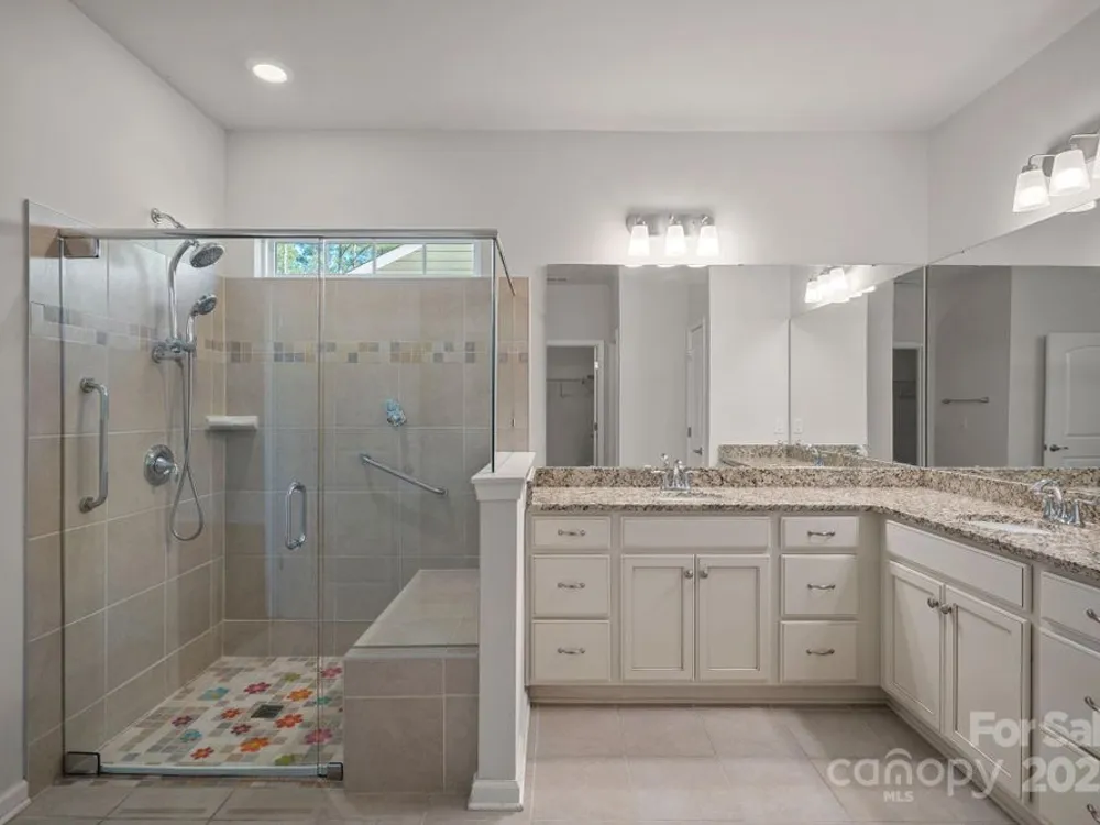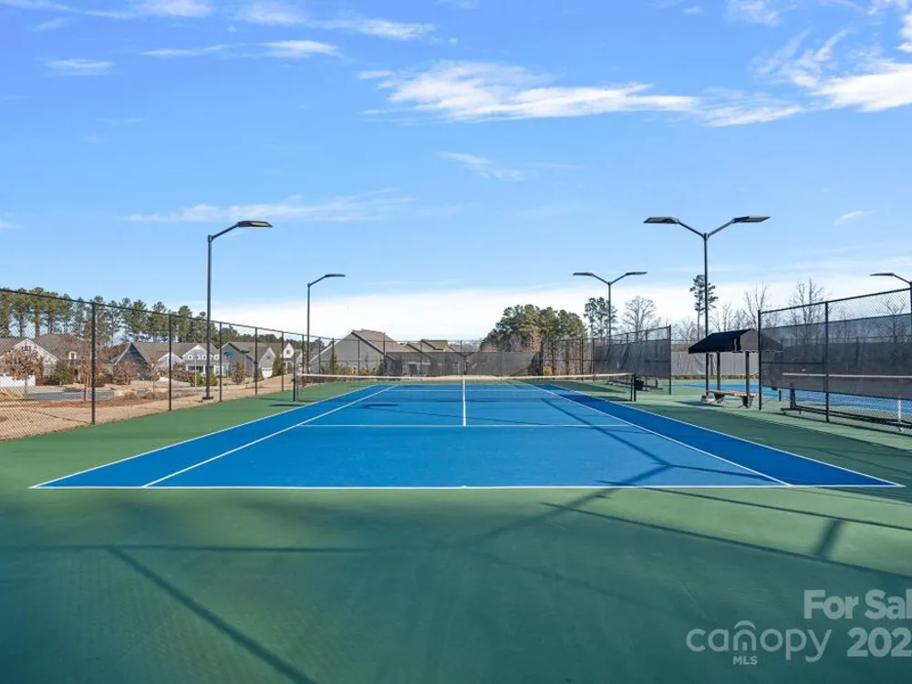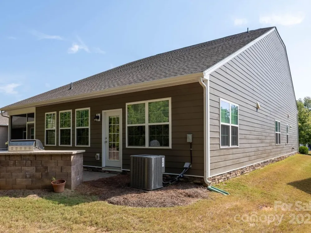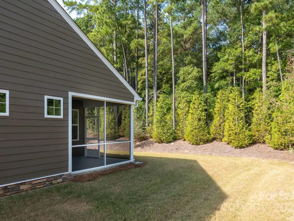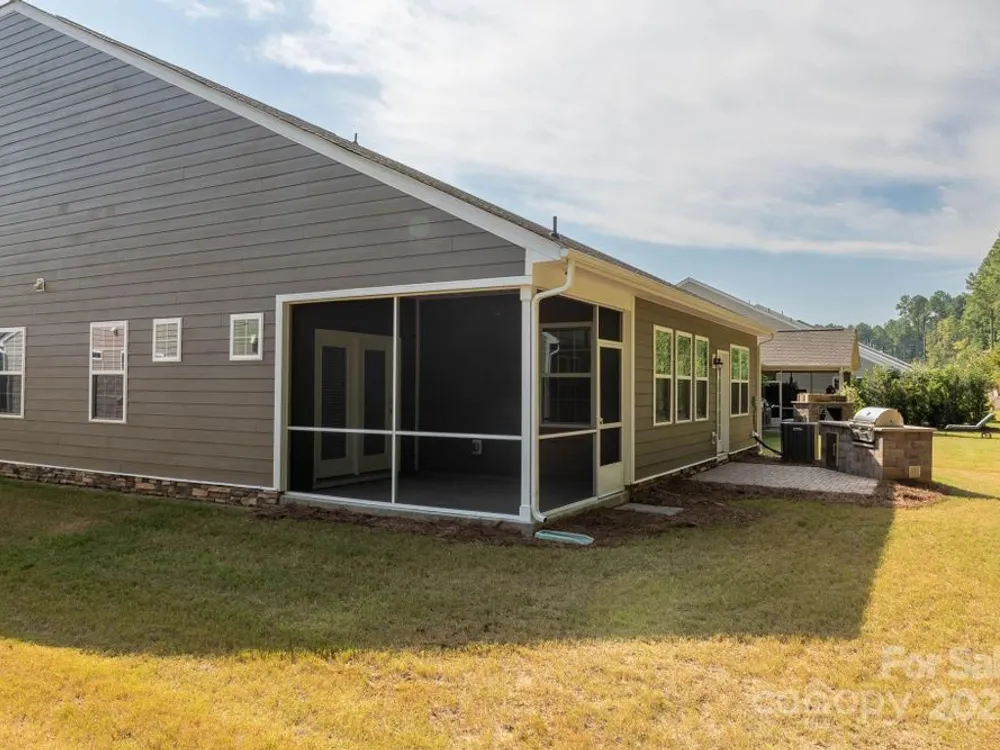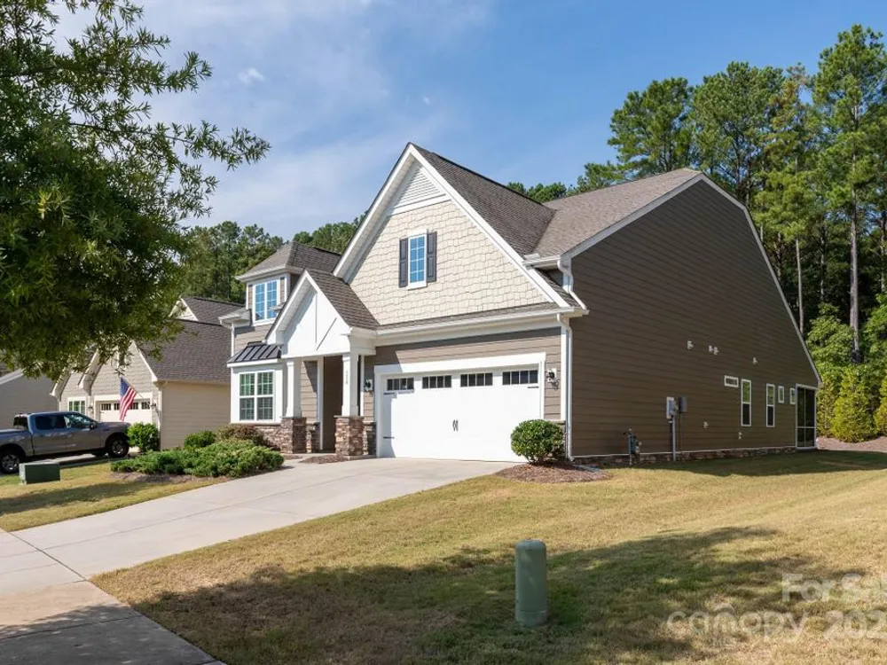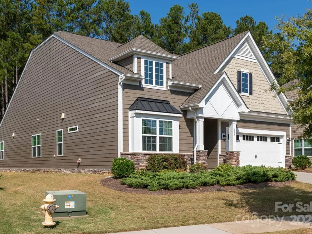 Welcome Home! The perfect plan in a fabulous 55 and over lakeside community! Open plan, split bedroom set up. No carpet in this home, LVP throughout and tile bathrooms. Formal dining room with wainscoting or easily use as a flex space or office. Wonderful kitchen with white cabinets, stainless appliances, gas stove, huge island and a breakfast area. Welcoming living space with wall of windows overlooking private rear yard! Primary bedroom features a sitting area and private screened porch. Expansive "L" shaped dual sink vanity and zero entry shower with glass surround. Oversized walk in closet. The perfect size laundry room with direct access to the 2 car garage. Lovely paver patio with built in grill surrounded by nature. Imagery has amenities GALORE! Walking trails, huge pool and multiple clubhouse centers, sport courts, fitness center and so many activities to stay as active as you desire! Lawn maintenance included. Close proximity to shopping, restaurants and I-485. Don't miss out!