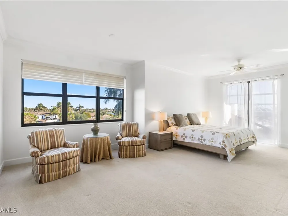 FREE Golf Cart Included! | Palmas Del Sol in Gulf Harbour Unobstructed River Views | Sports Membership Fee Temporarily Reduced by $32,000 Step into elegance at Palmas Del Sol, one of Gulf Harbour Yacht & Country Club’s most coveted high-rise communities. This furnished 4th-floor residence offers 2 bedrooms + den/office, 2.5 baths, and over 2,550 sq. ft. of luxurious living space, along with a rare 2-car under-building enclosed garage. With no neighboring building, enjoy unmatched privacy and unobstructed views of the Caloosahatchee River, lake, and 3rd fairway from nearly every room. Highlights: Expansive Primary Suite – River, lake, and golf course views, sitting area, spa-inspired ensuite with dual vanities, walk-in shower, soaking tub, and walk-in closet. Chef’s Kitchen – Central island, stylish backsplash, breakfast nook with river views, plus dual pass-throughs to both lanai and living room for effortless entertaining. Living & Dining – Formal dining room, spacious living area, and lanai—all with breathtaking water and golf views. Guest Spaces – Nicely sized second bedroom with walk-in closet, plus a den/office with fairway and lake views. Peace of Mind – Hurricane protection, new roofs, fresh exterior paint, updated garage finishes, and new screens—all fully funded and covered by insurance. Resort-Style Amenities: Exclusive Palmas Del Sol pool, spa, BBQ area, and elegant community clubhouse with conference room, billiards, library, lounge, and catering kitchen—perfect for gatherings up to 100 guests. Gulf Harbour Lifestyle – World-class 186-slip marina (38’–100’ slips), private championship golf, and immediate membership availability (full golf or sport). Bonus: A golf cart is included with purchase, making it easy to enjoy all Gulf Harbour has to offer. This condo combines comfort, luxury, and one of the most spectacular views in Gulf Harbour. Don’t miss your chance to own this private oasis!