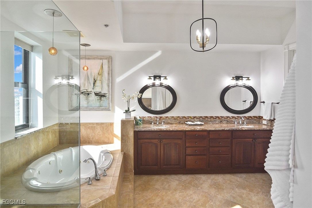 - Wet Bar, Breakfast Bar, Built-in Features, Breakfast Area, Bathtub, Tray Ceiling(s), Separate/Formal Dining Room, Dual Sinks, Entrance Foyer, Eat-in Kitchen, High Ceilings, Pantry, Separate Shower, Cable TV, Walk-In Closet(s), Window Treatments, Split Bedrooms
