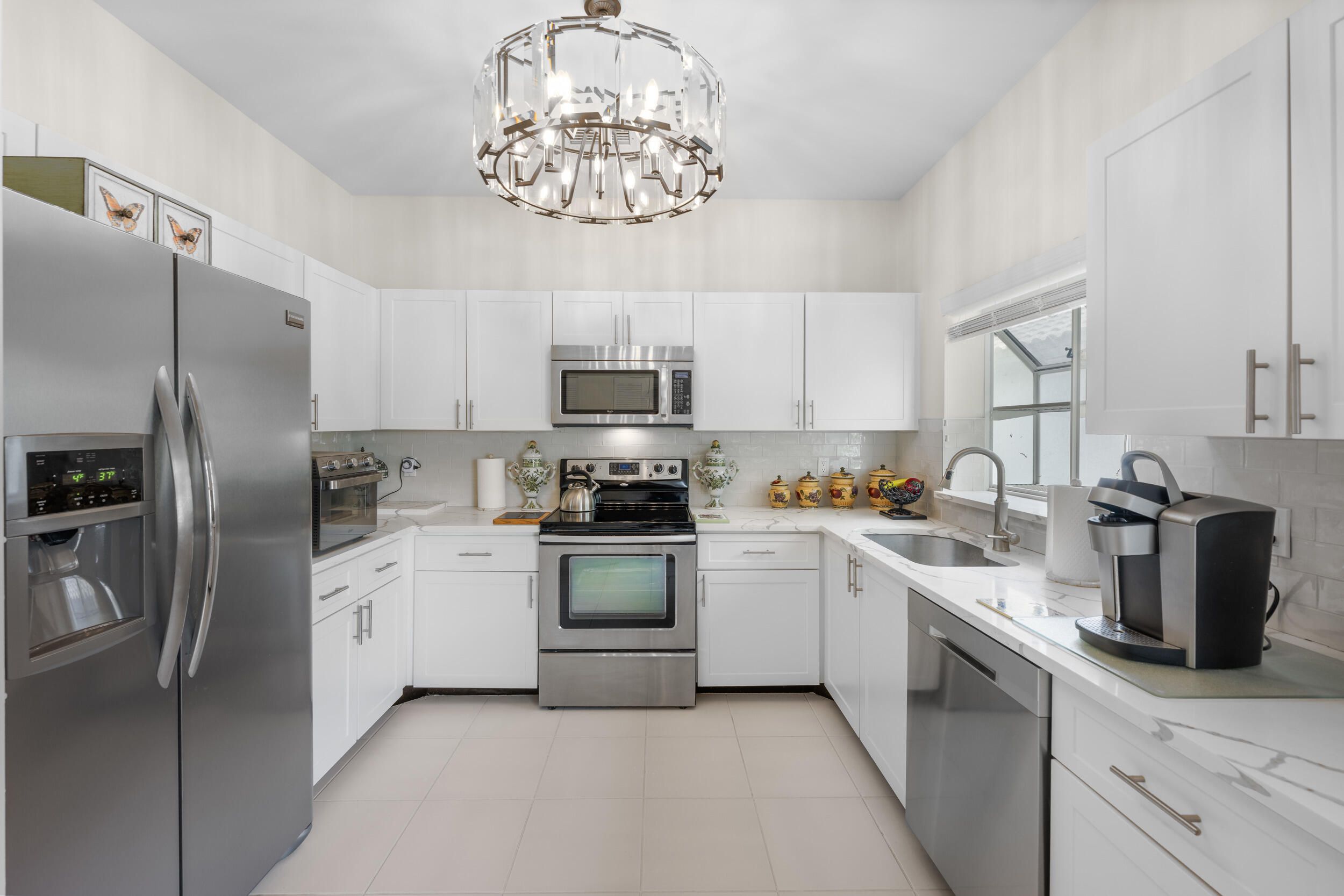MOTIVATED SELLER! Welcome to the vibrant 55+ community of Briarwood, nestled within the stunning non-equity membership Indian Spring Golf and Country Club. This immaculate 2-bedroom, 2-bathroom coach home offers a breathtaking view of the golf course from the enclosed screened-in patio. With an open, spacious layout and high ceilings, the home feels airy and inviting. The gorgeous, updated kitchen features white shaker cabinets with pull-out shelves, quartz countertops, stainless steel appliances, and a beautifully restored hardware chandelier. You'll also enjoy a large pantry and a charming greenhouse window. The guest bathroom has been updated with a walk-in shower, and the bedrooms showcase lovely wood floors AC 2020 - Water Heater 2019.