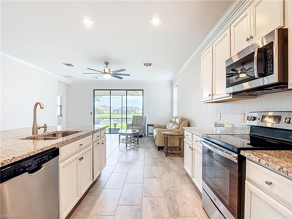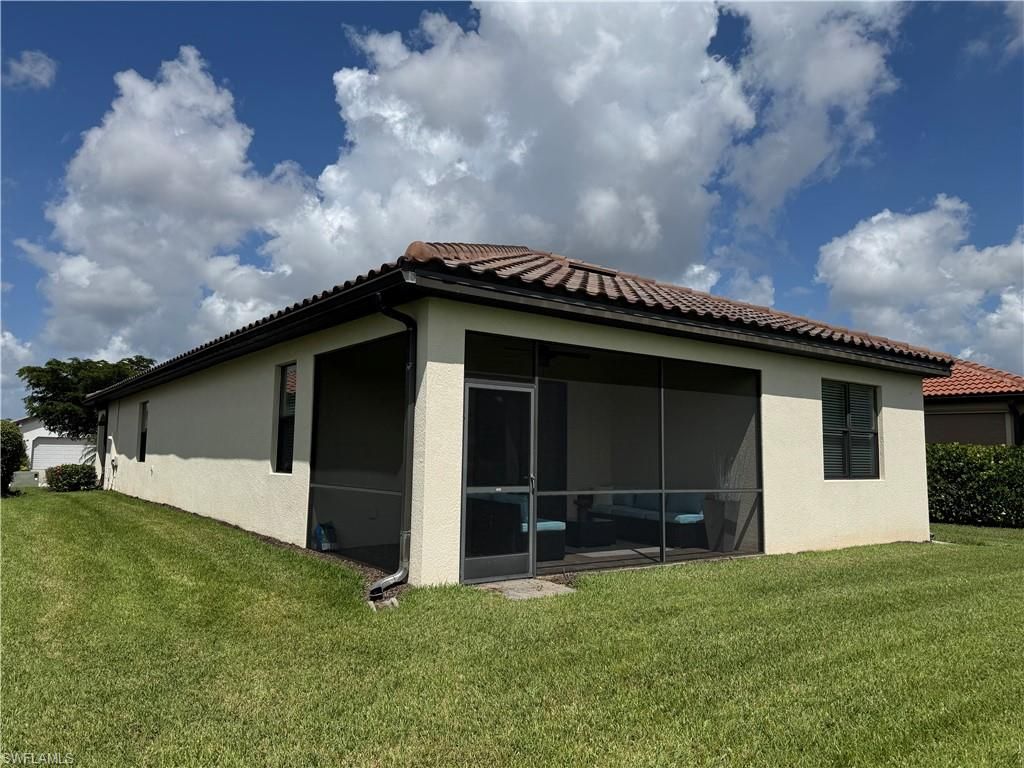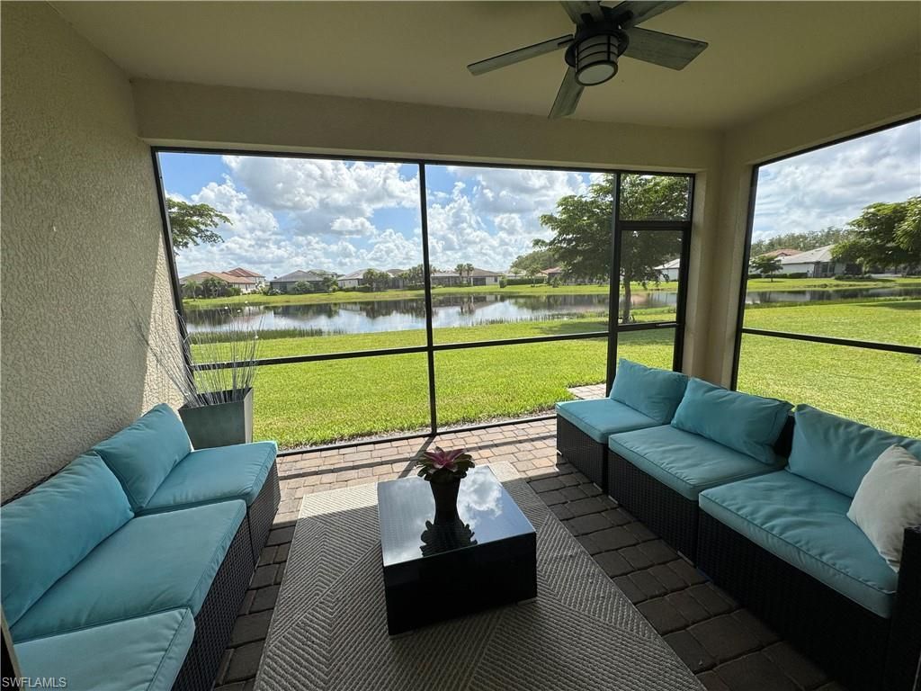 Welcome home to this 2BR/2BA move in ready house with a large 2-car garage and just over 1900 sq ft of interior living space. This house features an open floor plan with a flex room that could be your work from home office, separate game/playroom or a peaceful sitting room for relaxing and reading a good book. The kitchen has a large eat at island and lots of area for prepping your meals. It has a walk-in pantry, white cabinets, granite countertops and stainless-steel appliances. The kitchen is open to the family room for great entertaining. Then you have a formal dining room for your special occasions. The interior has been freshly painted, has tile throughout the main living area and Luxury Vinyl Plank in both bedrooms. The primary bedroom has (2) walk-in closets, ensuite bathroom with a large walk-in shower, granite countertop vanity with dual sinks and a private water closet. The guest bathroom has a tub/shower combo. Nice size laundry room which includes the washer & dryer and a utility sink. Brand new hot water heater. Relax on your screened-in lanai and enjoy your morning coffee and watch the sunrise over the tranquil lake! The large backyard has plenty of room for a pool. Arborwood Preserve Community Center has many amenities which include a large resort-style pool, restaurant, pickleball, bocce and tennis courts, complimentary coffee café, card rooms, hobby room, art studio, fitness center, exercise/yoga room and a theatre. This community is very close to RSW airport, spring training ball parks and Gulf Coast Town Center for lots of shopping and dining out. No flood insurance required in this community. Come see for yourself what makes this community such a nice place to live!