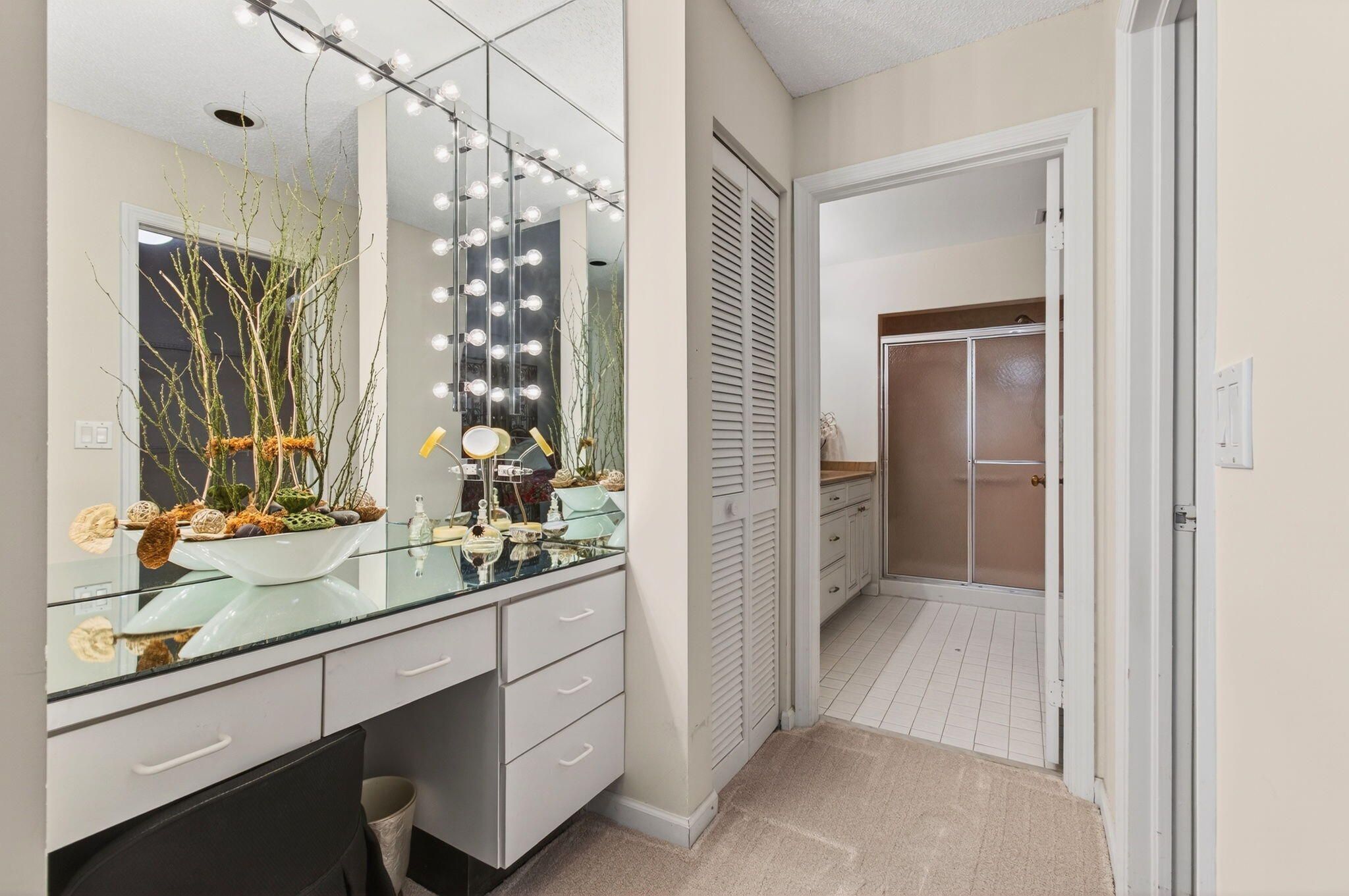- Pantry, Walk-In Closet(s), Split Bedrooms, Custom Mirrors, Breakfast Area, Living/Dining Room, Snack Bar, Separate Shower, Soaking Tub