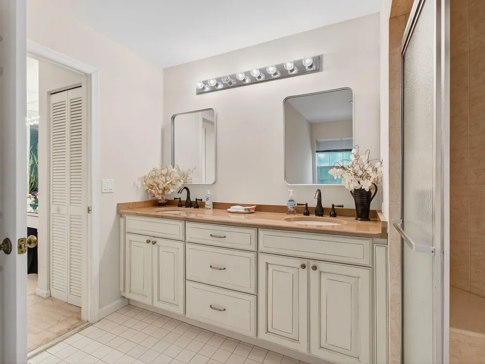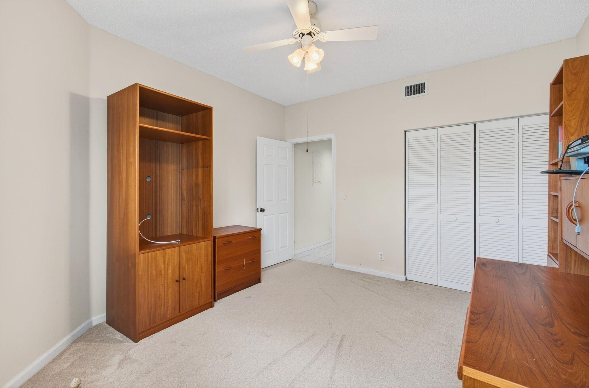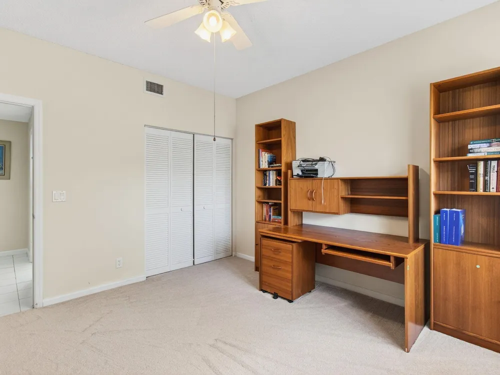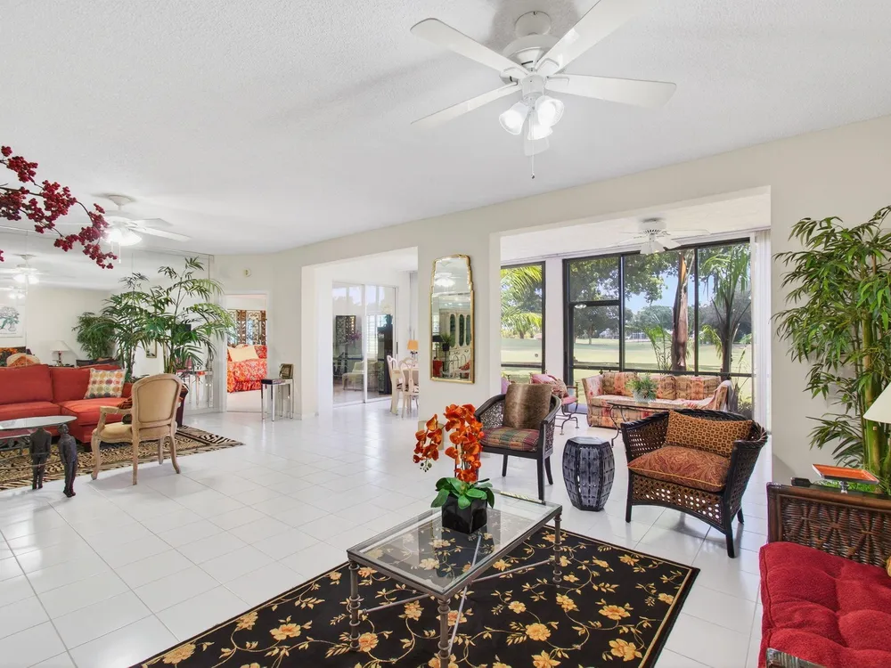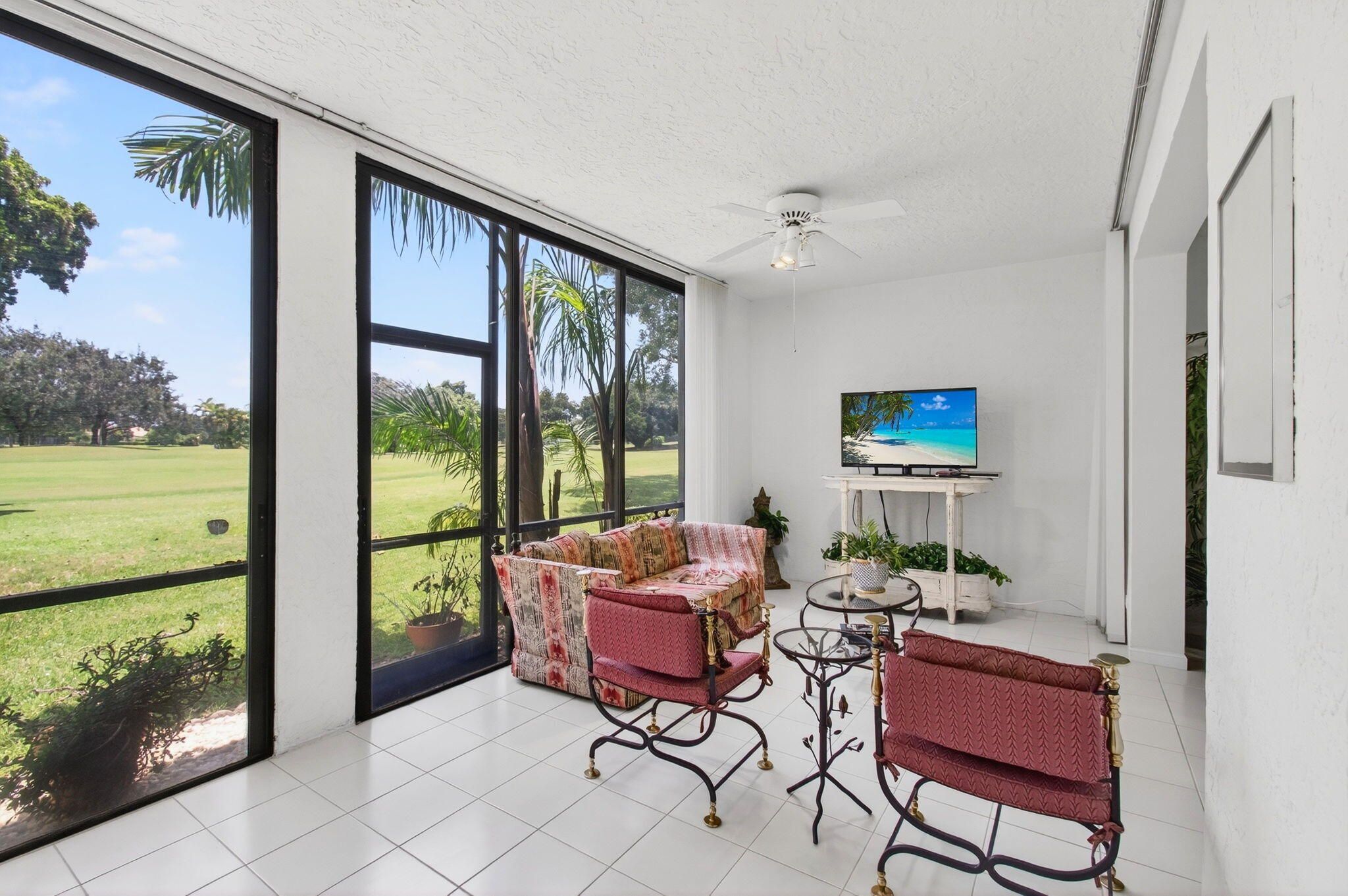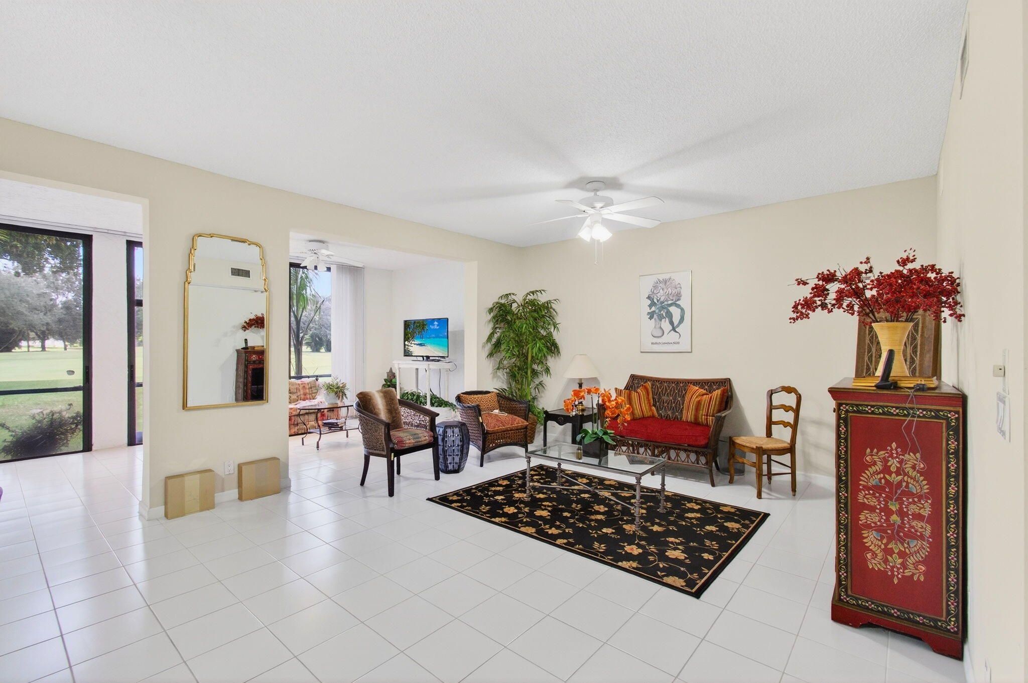 Beautiful 1st floor corner condo with a golf course view. Open and spacious. Very open Living room, dining area, den and Florida room Tiled living areas and brand new carpet in both bedrooms. Kitchen has beautiful cabinets and granite counter tops with a breakfast bar, eating area and sliders to a side patio. The Primary bedroom is spacious and has a large walk in closet. Master bath has a separate tub and shower. Briarwood is part of the Indian Spring country club community. Membership is optional
