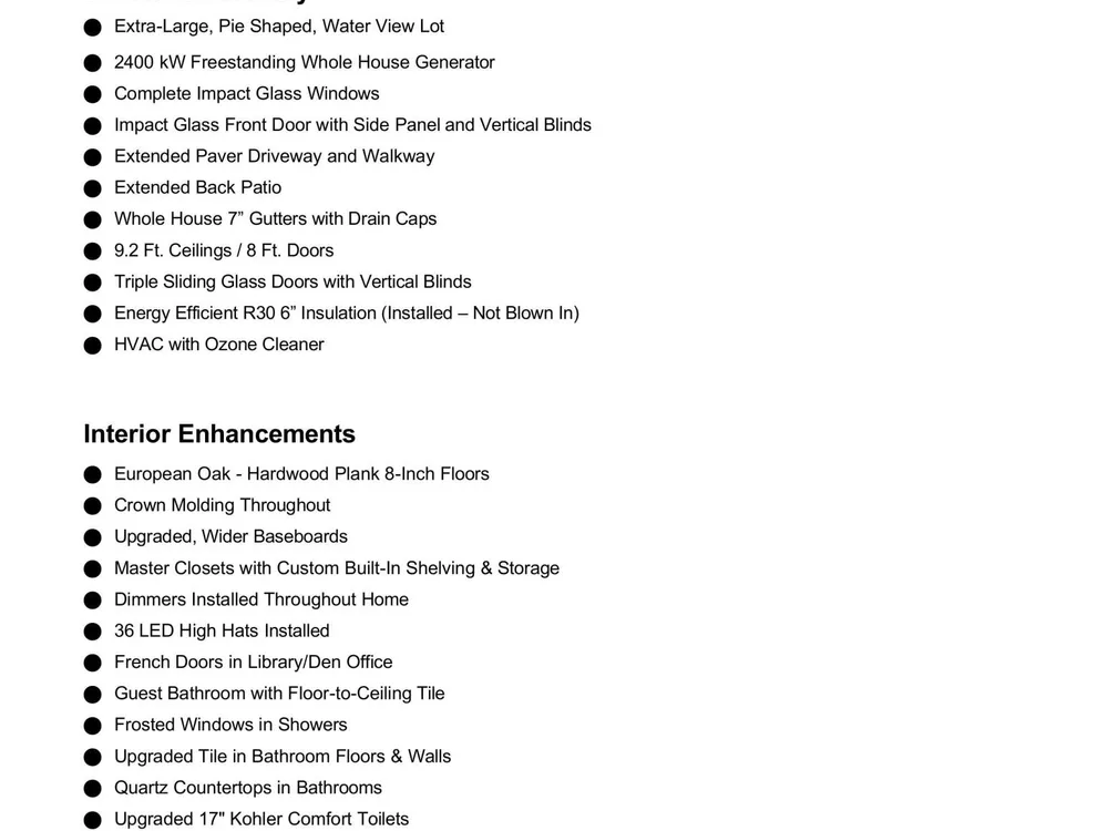 - Closet Cabinetry, Custom Mirrors, Entrance Foyer, Kitchen Island, Split Bedrooms, Walk-In Closet(s), Family Room, Kitchen/Dining Combo, Snack Bar, Blinds, Impact Glass, Window Vertical(s), Dual Sinks, Separate Shower