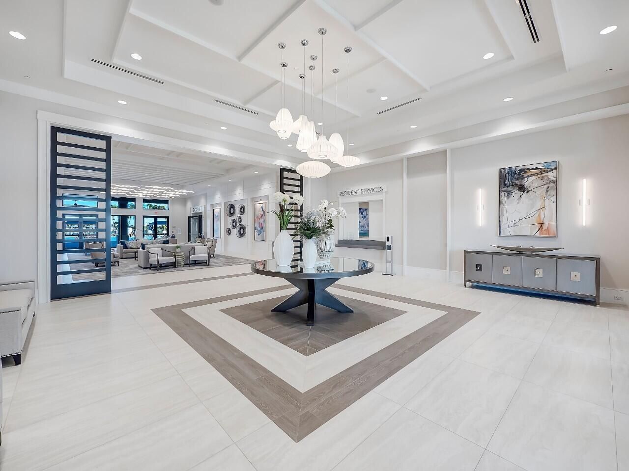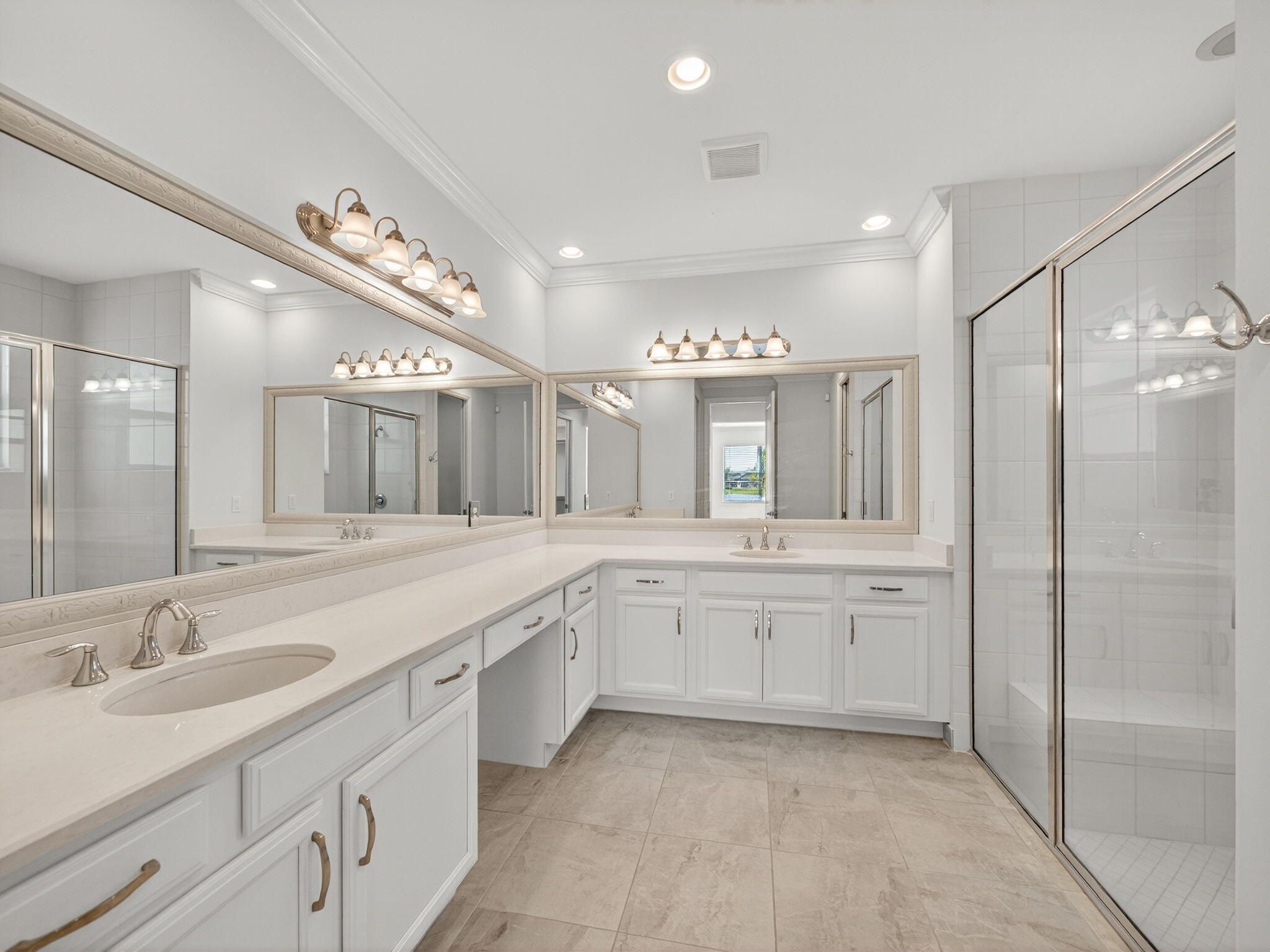 - Entrance Foyer, Walk-In Closet(s), Split Bedrooms, Closet Cabinetry, Custom Mirrors, Impact Glass, Kitchen/Dining Combo, Snack Bar, Dual Sinks, Separate Shower