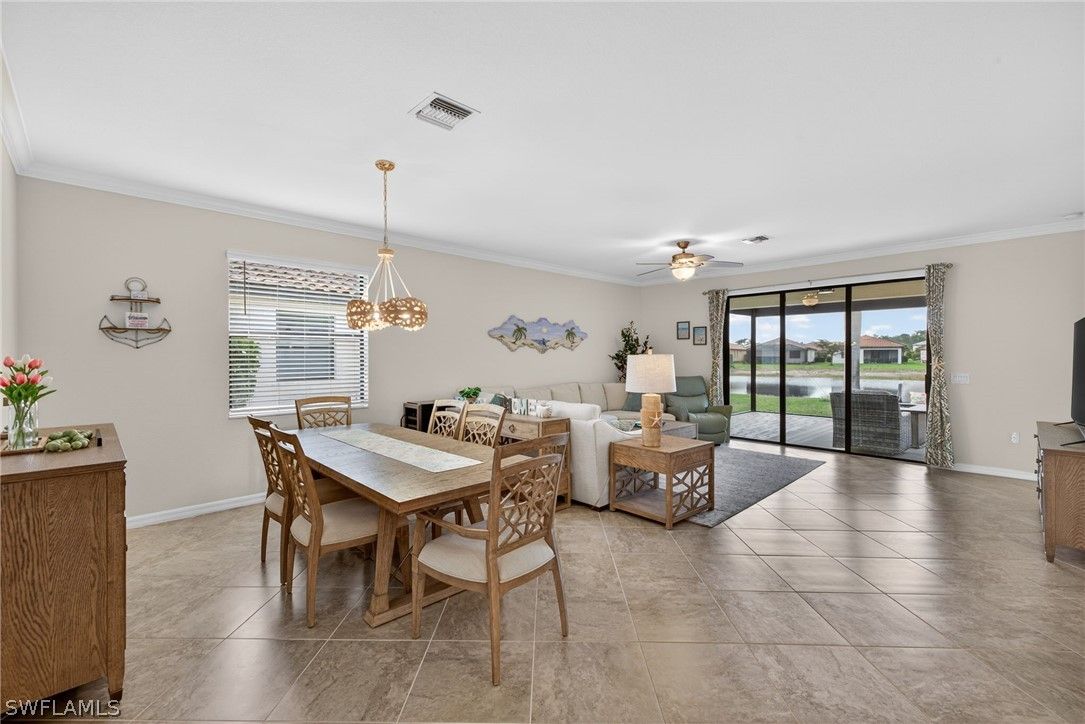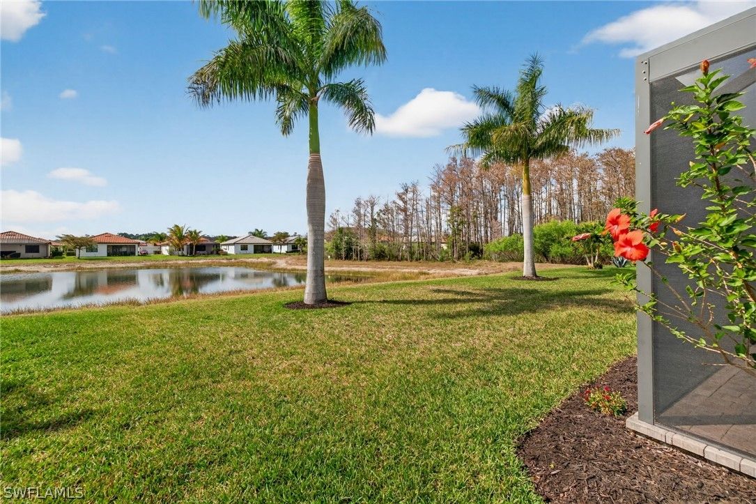 Discover resort-style living at its finest in this stunning one-story, turnkey home located in the highly sought after Arborwood Preserve community of Fort Myers, just off of the Tree Line Corridor. This specious three bedroom plus den Trevi model features an inviting extended lanai area, with a built in kitchen, overlooking a beautiful back yard space, with two majestic Royal Palms, on water. The second bedroom features an en-suite, perfect for guests or multi-generational living. The home has tile throughout the main living areas, with carpet in the bedrooms and den. Neutral color palette and ceiling fans in every room. Newer LG (2022) washer and dryer. Shows like new! Located in a vibrant and active gated community with resort-style amenities including a clubhouse, outdoor bar/restaurant, fitness center, movie theatre, tennis, bocce, and pickleball courts--this home offers the perfect blend of luxury, comfort, and Florida Lifestyle. Just bring your clothes, as this home is move-in ready!